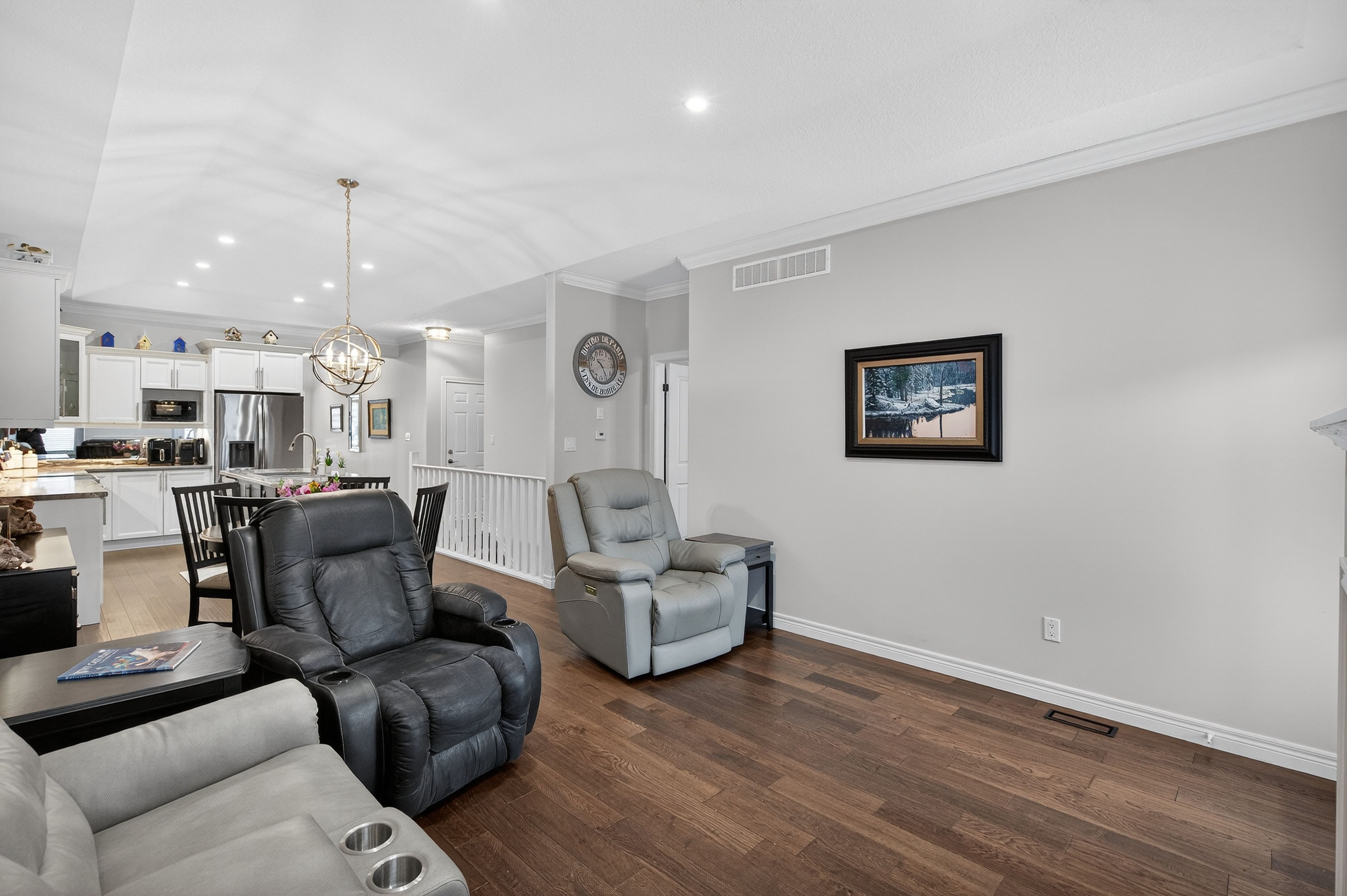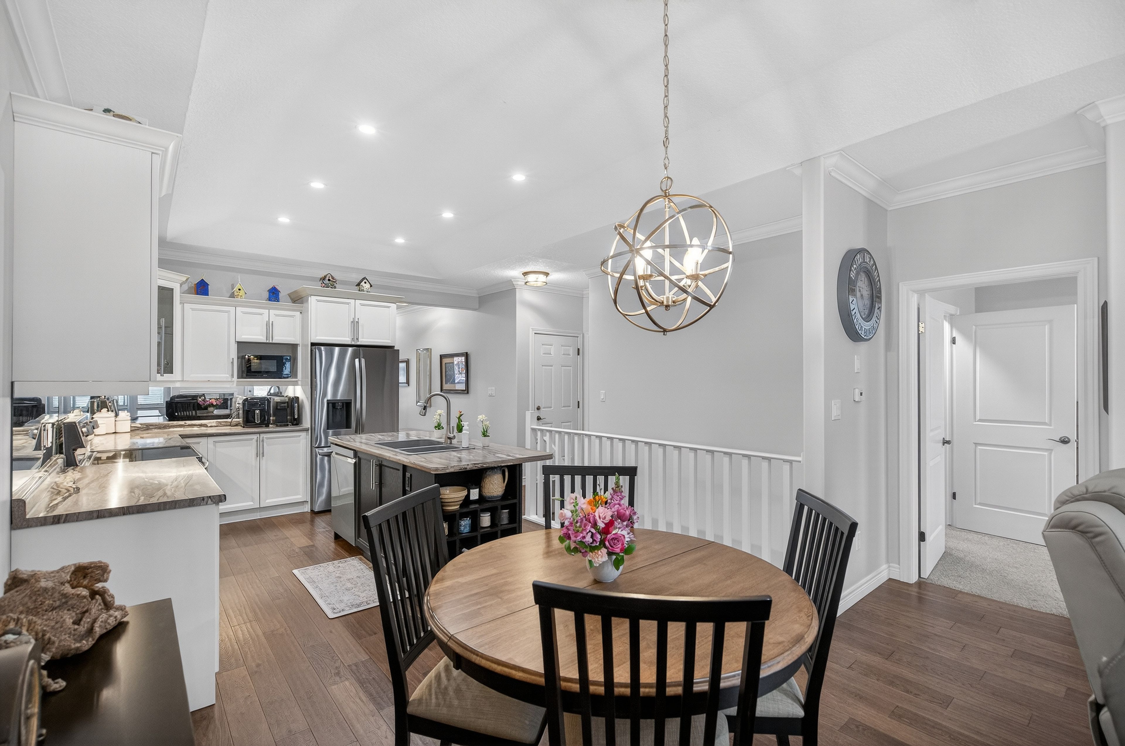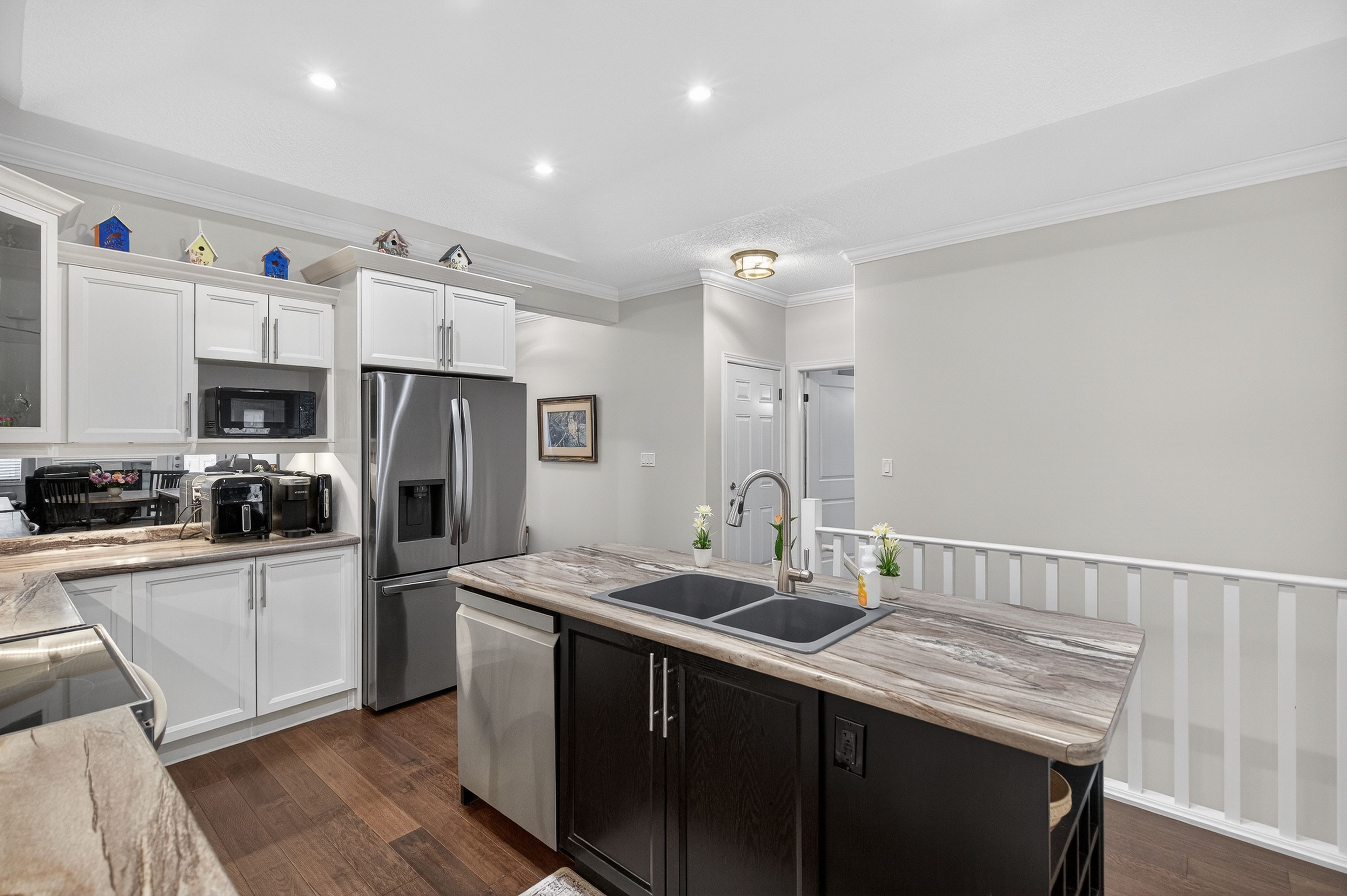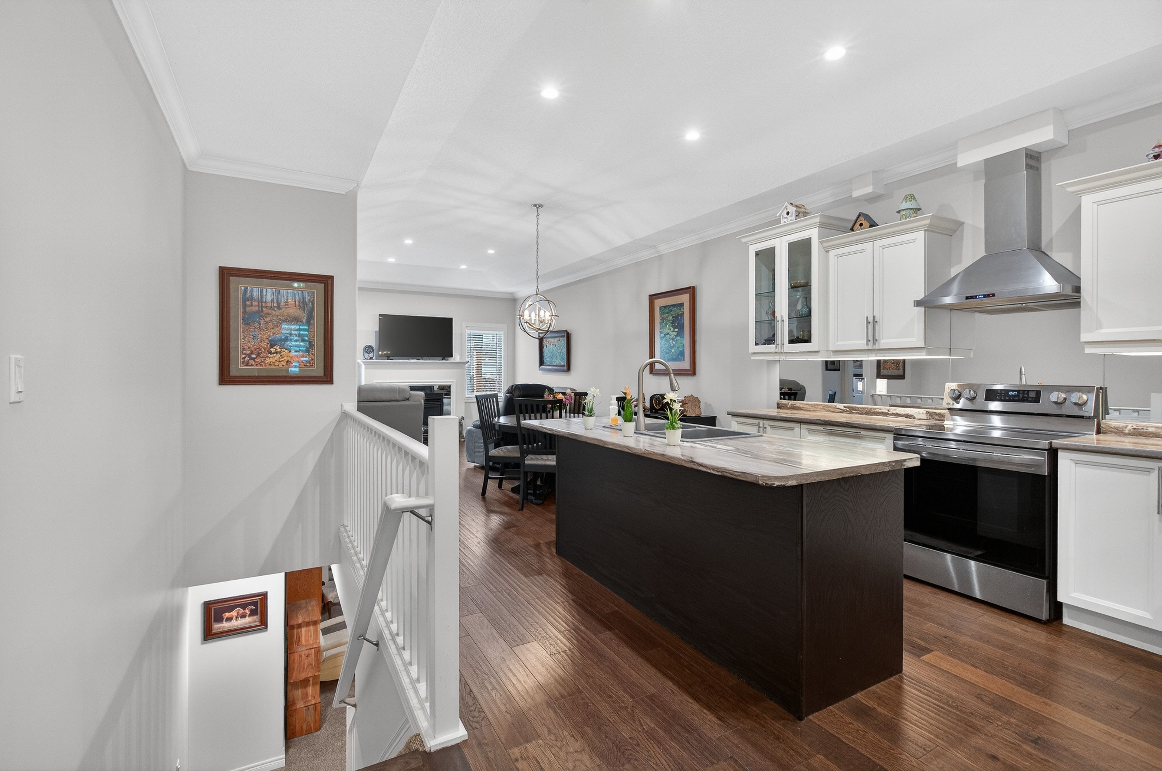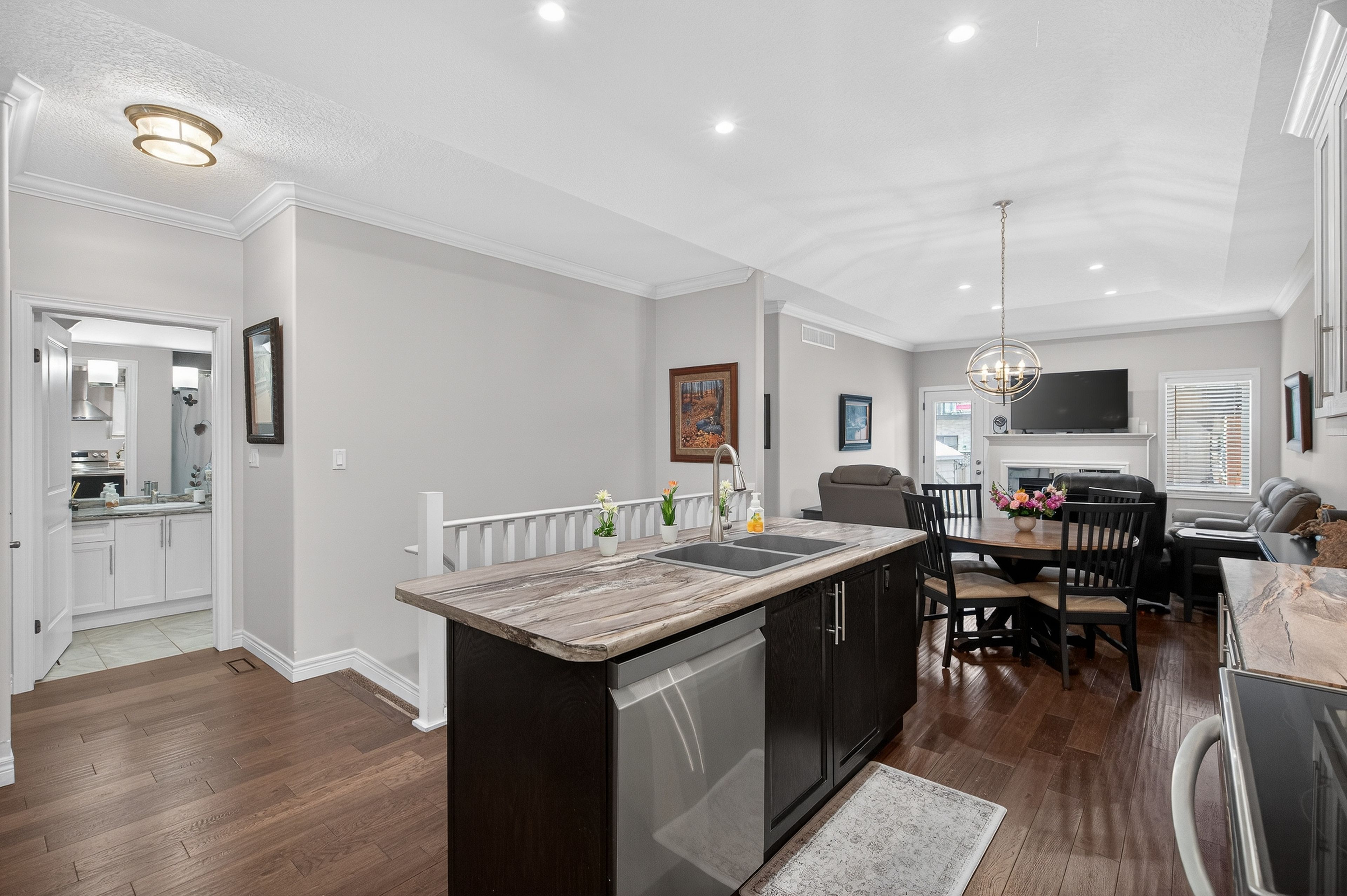 • Open-concept design with a spacious kitchen and stylish upgrades.