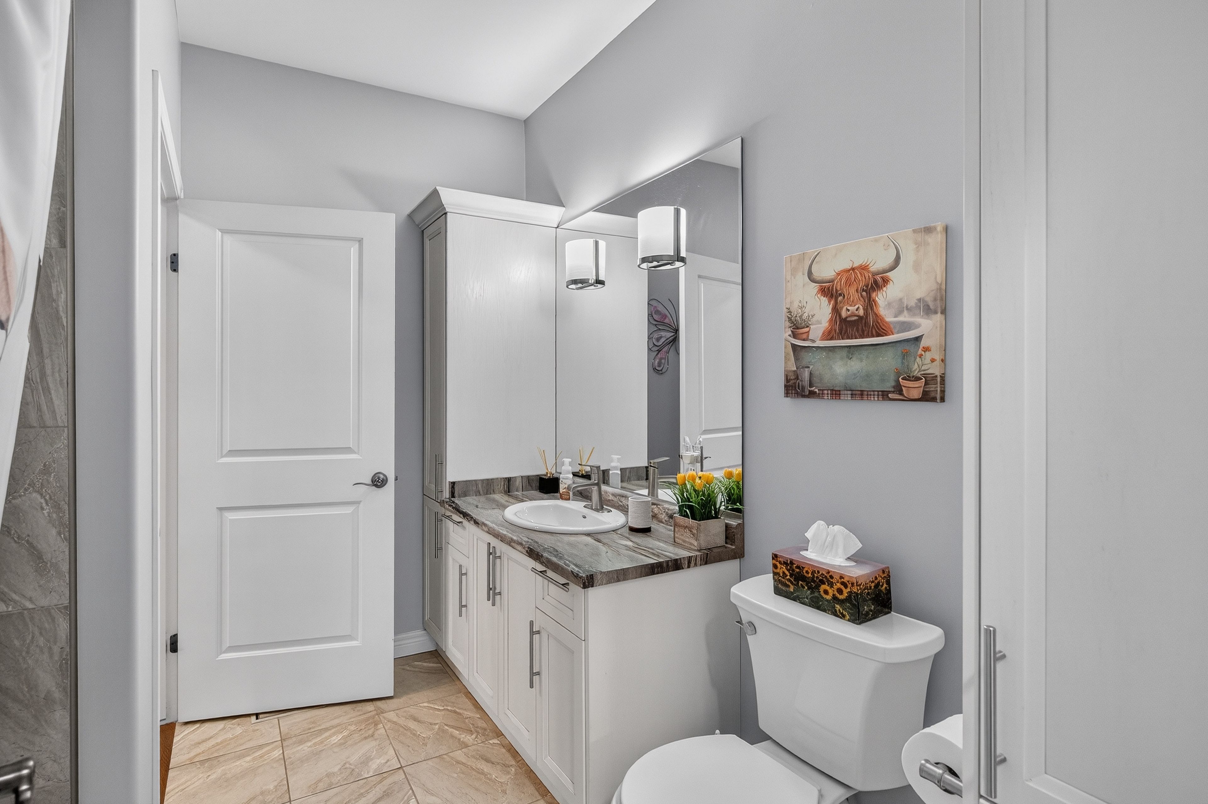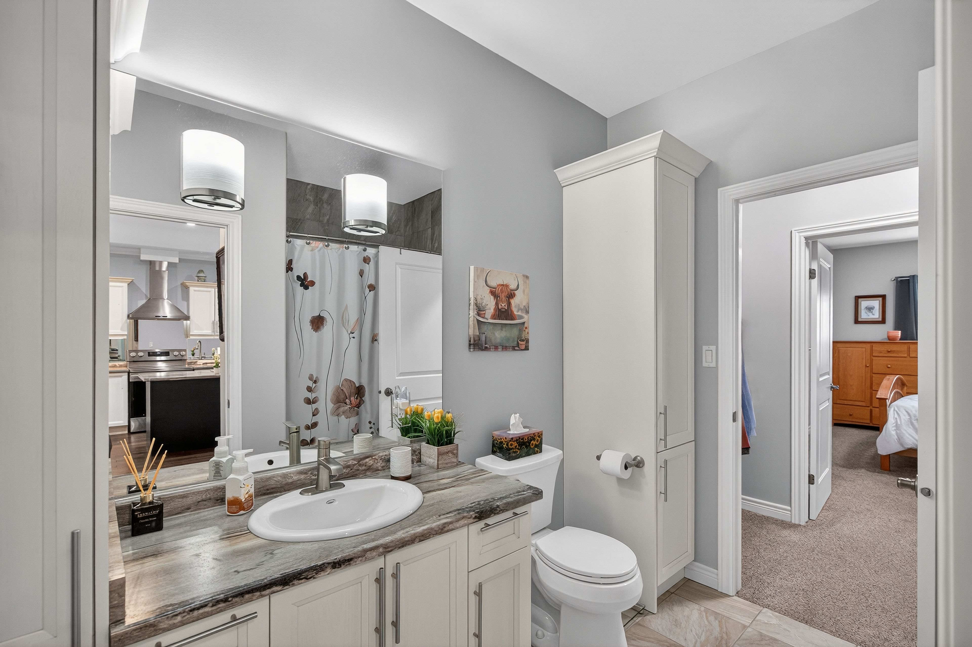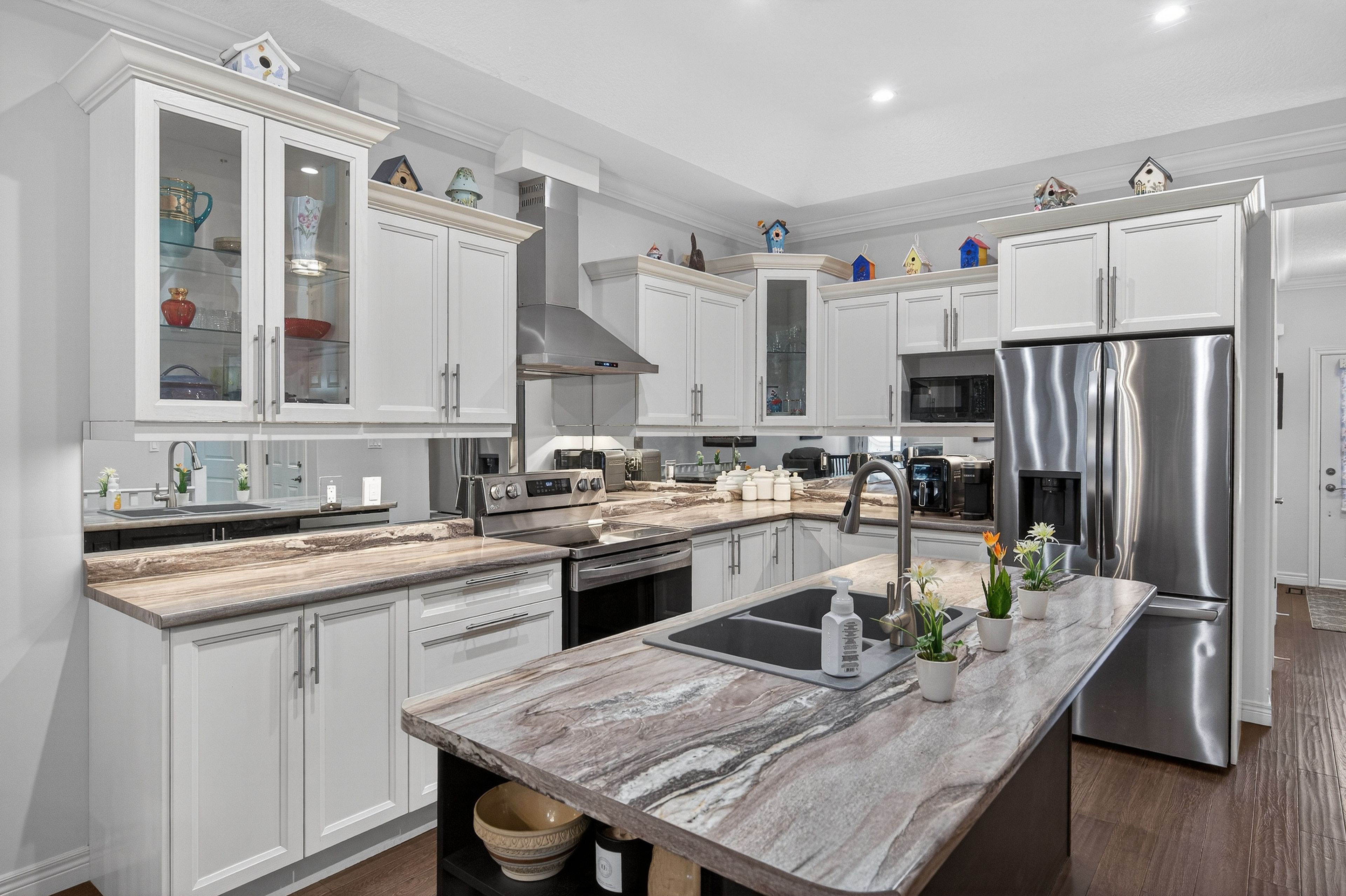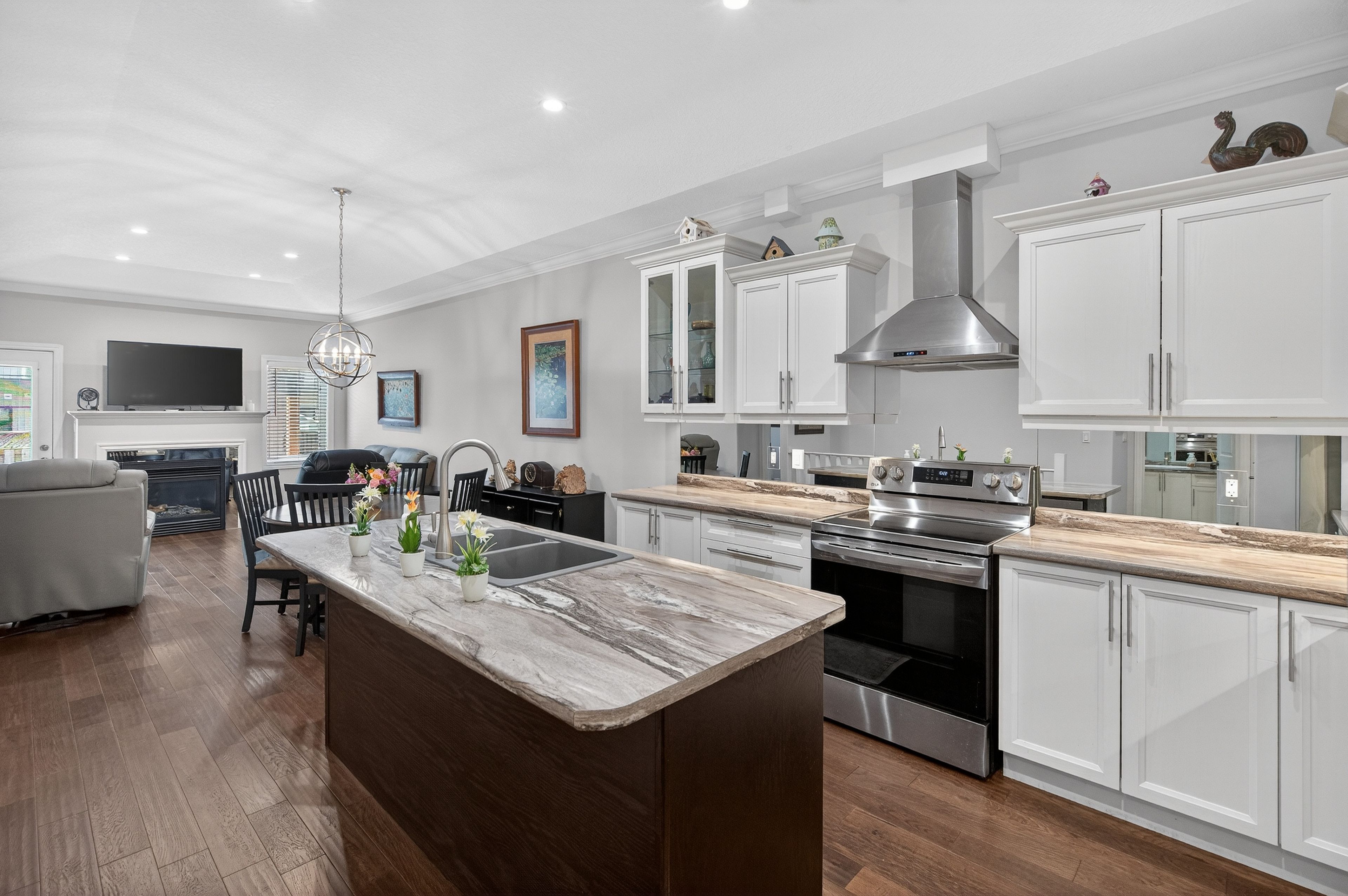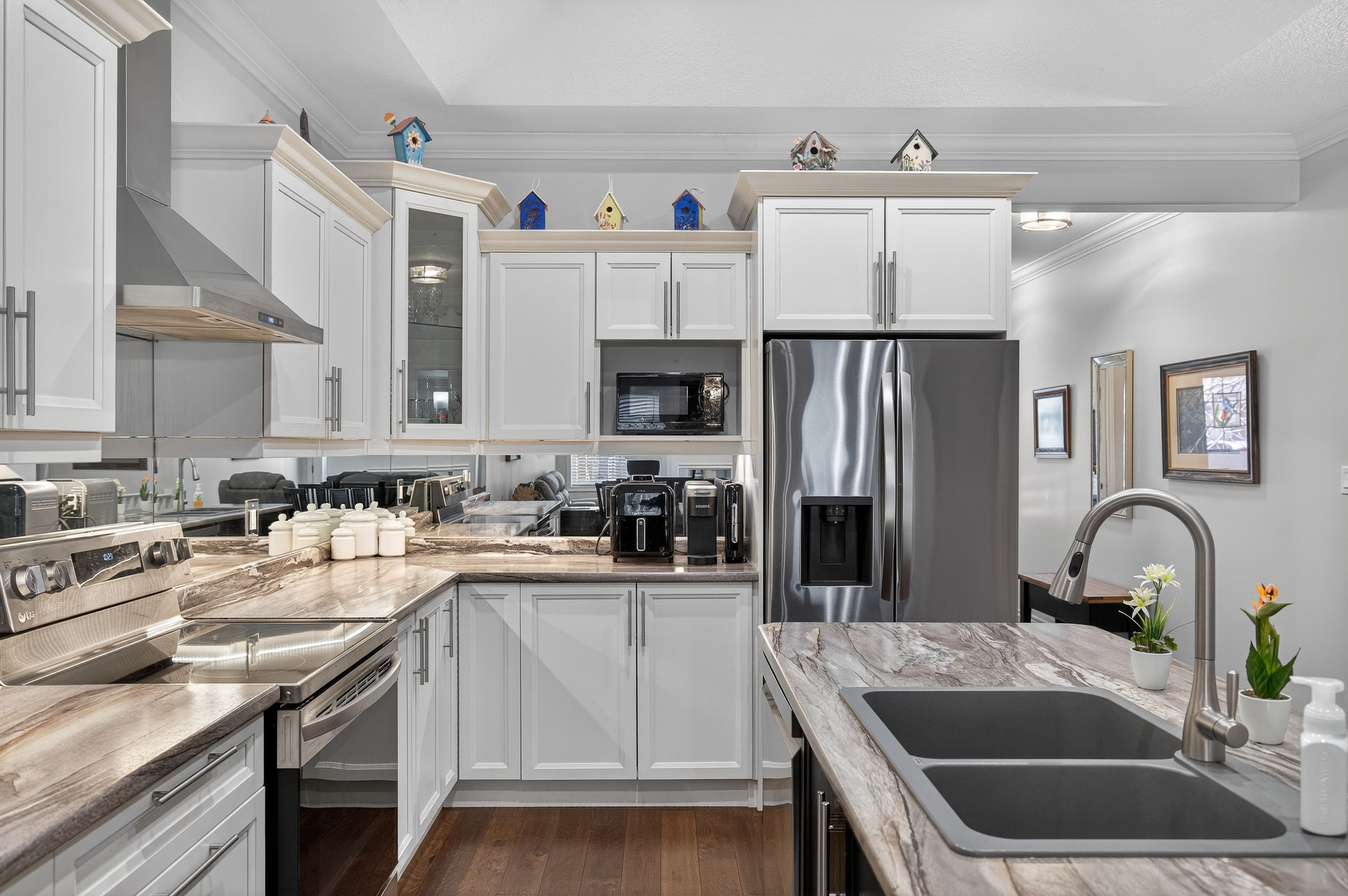 • Open-concept design with a spacious kitchen and stylish upgrades.