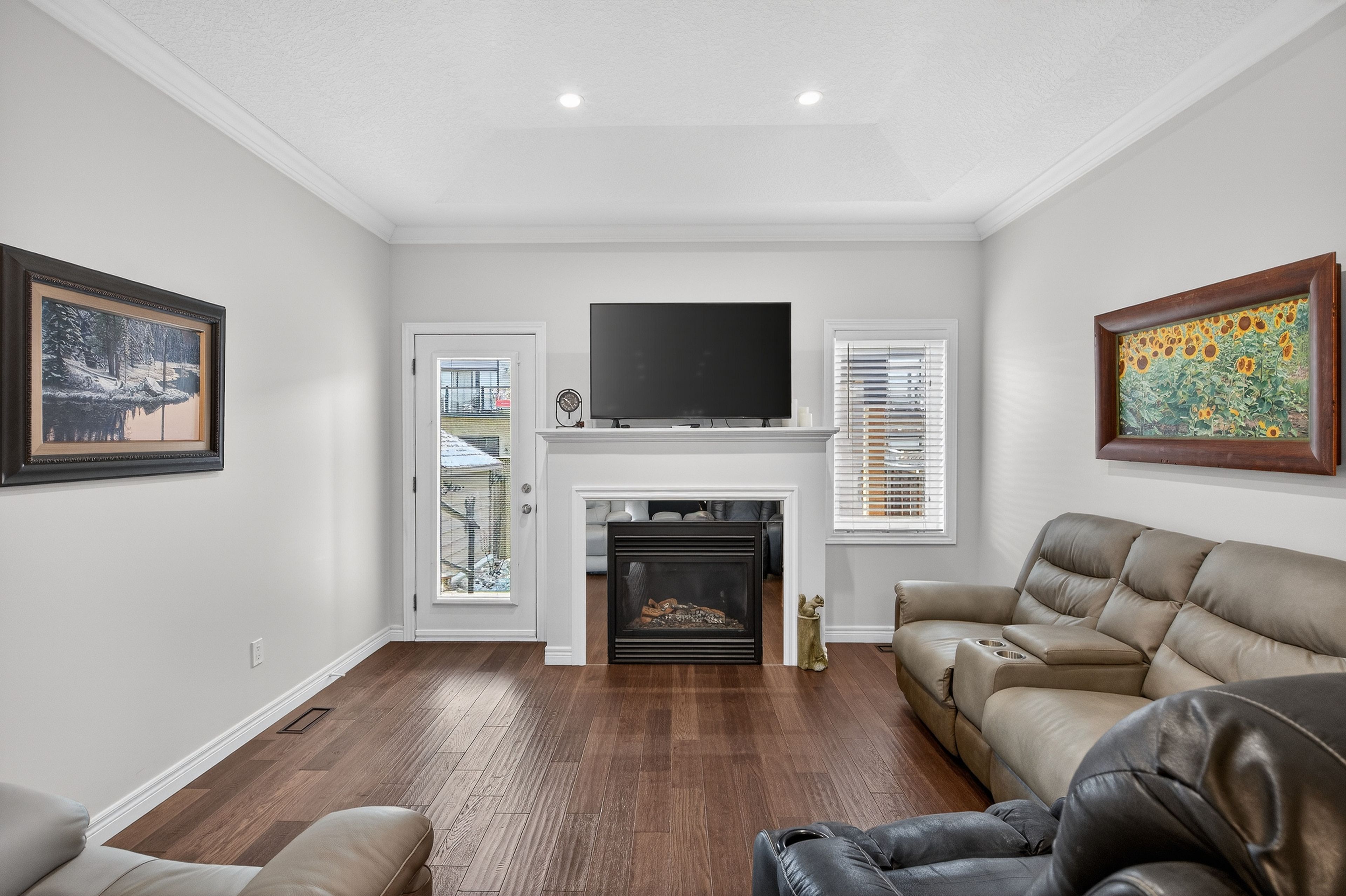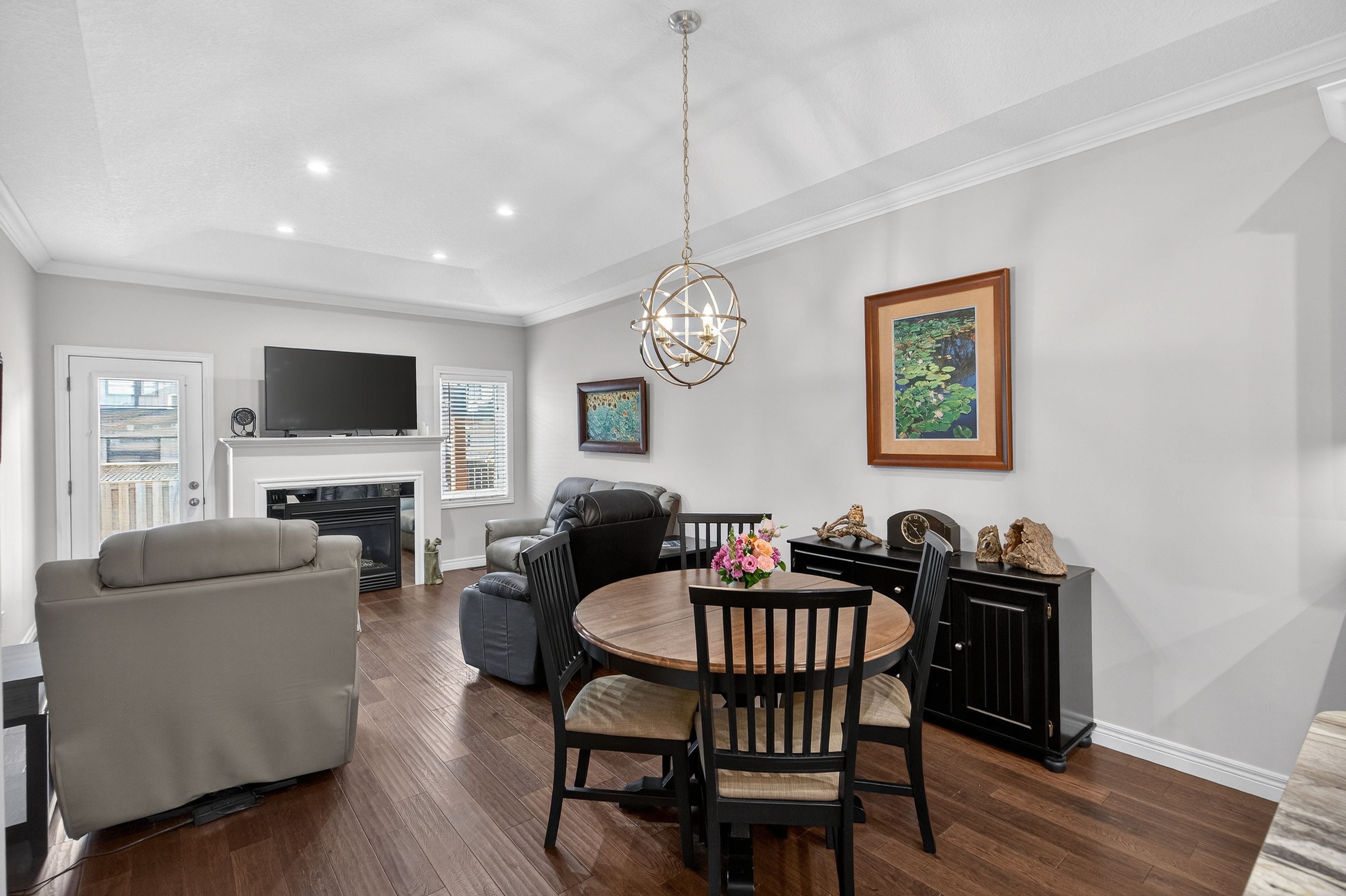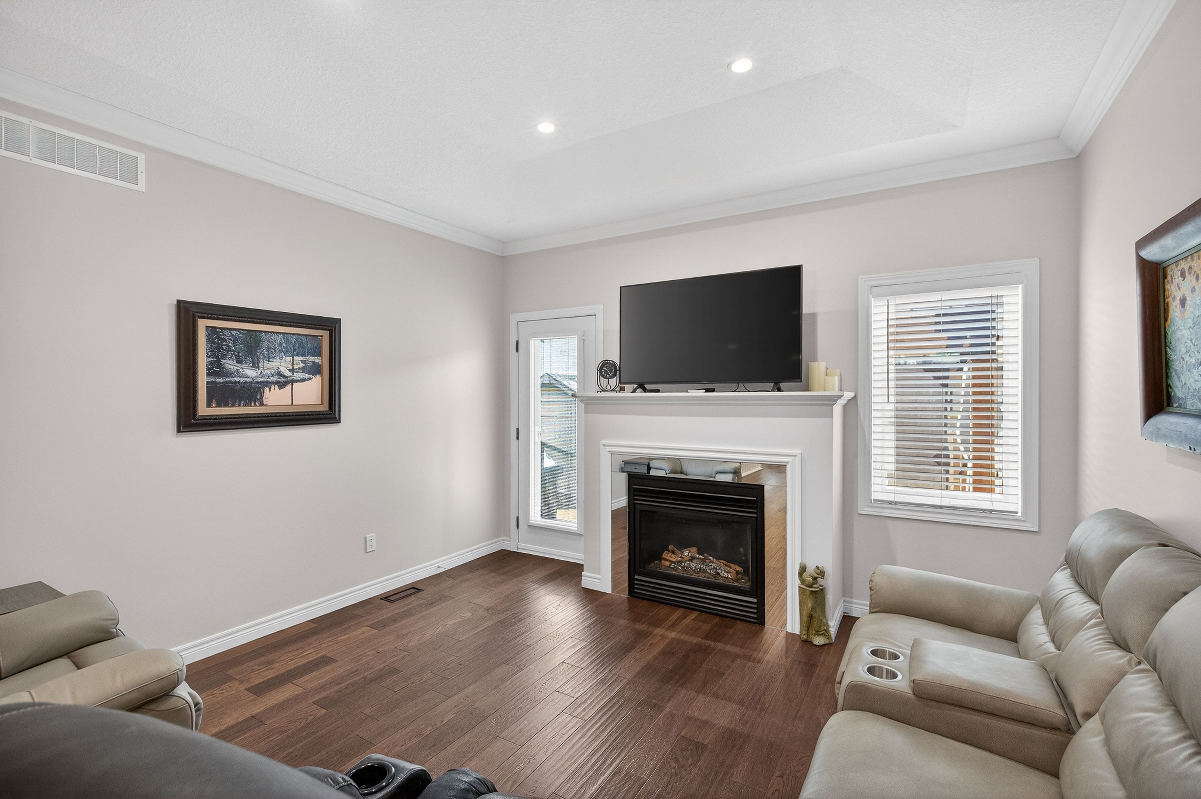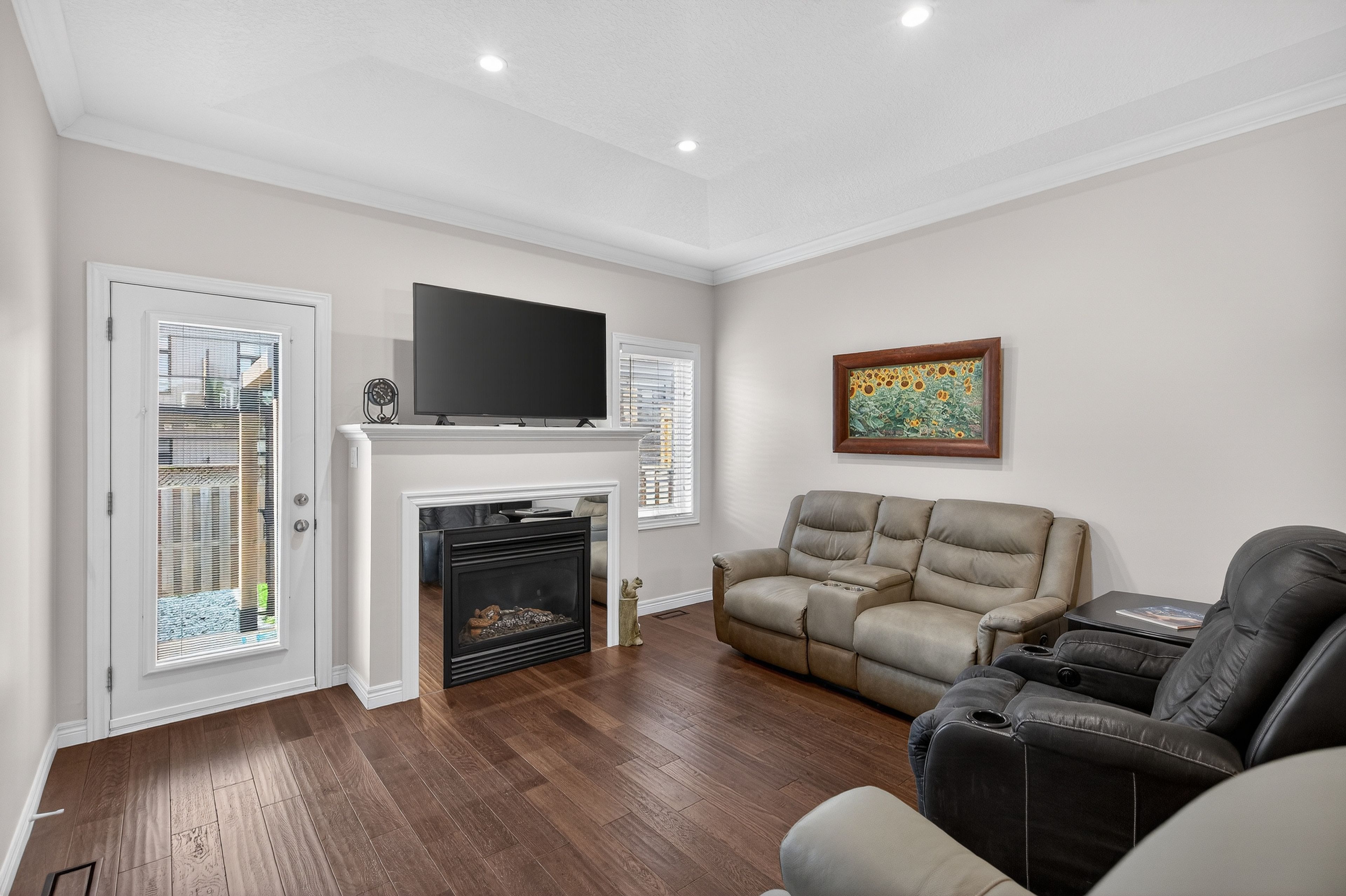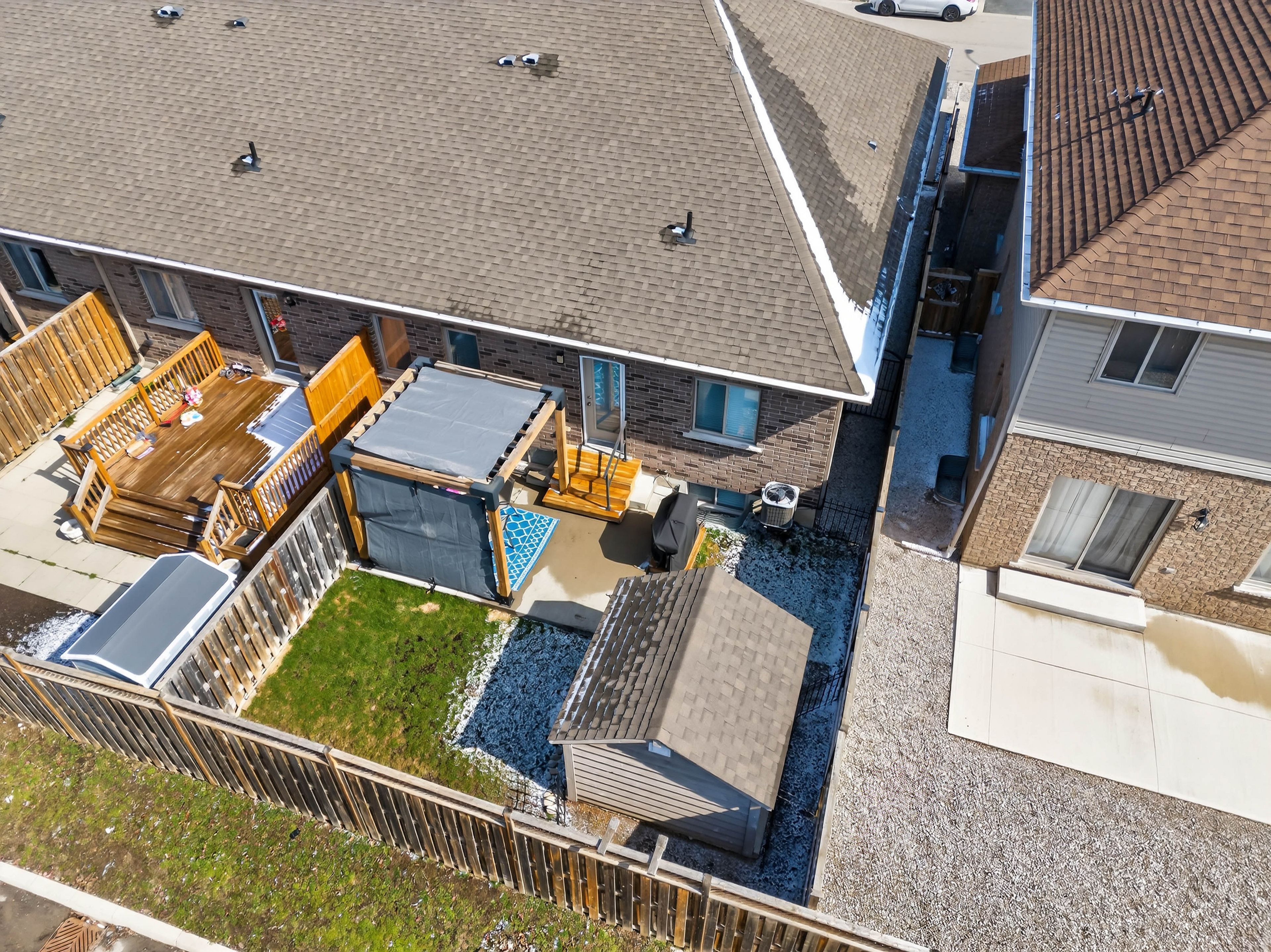 Premium end-unit freehold townhome in the vibrant city of brantford. Beautifully appointed and meticulously maintained, this 2+1 bdrm, 2 bath residence offers an exceptional blend of style, comfort, & convenience. From the moment you arrive, the home's striking facade featuring stone, stucco, and brick creates a lasting first impression, complemented by tasteful landscaping and a covered front porch. A spacious foyer welcomes you inside, complete with an oversized storage closet and a versatile front bdrm currently used as a home office. The heart of the home showcases an open-concept design, anchored by a spacious kitchen w/ upgraded white cabinetry, mirrored backsplash, s/s appliances including a new lg fridge & dishwasher ('24), undermount lighting, & a centre island w/ breakfast bar seating. A separate formal dining area flows seamlessly into the large liv rm, highlighted by a cozy gas fp & walkout to the private rear yard. The main lvl primary retreat offers ensuite privileges to a beautifully finished 4-pc bath, along w/ the convenience of main flr laundry. The f-fin lower lvl expands your living space w/ a generous rec rm feat an electric fp, a 3rd bdrm, & a 3-pc bath w/ an oversized glass walk-in shower. Step outside to enjoy a thoughtfully designed backyard complete with a pergola, privacy screens, sunshade, concrete patio, gas line for bbq, storage shed, and grassy area. Noteworthy upgrades include updated lighting fixtures, led pot lighting throughout the kitchen, dining, and living areas, garage door, laundry room cabinetry, and fresh paint on the main level. Crown moulding & hardwood flooring add a refined finish throughout. Located in a sought-after neighbourhood, this home offers easy access to parks, scenic trails, schools, shopping, and everyday amenities. Commuters will appreciate proximity to hwy 403, while families benefit from a welcoming community atmosphere and nearby recreational facilities. A perfect balance of lifestyle and location.