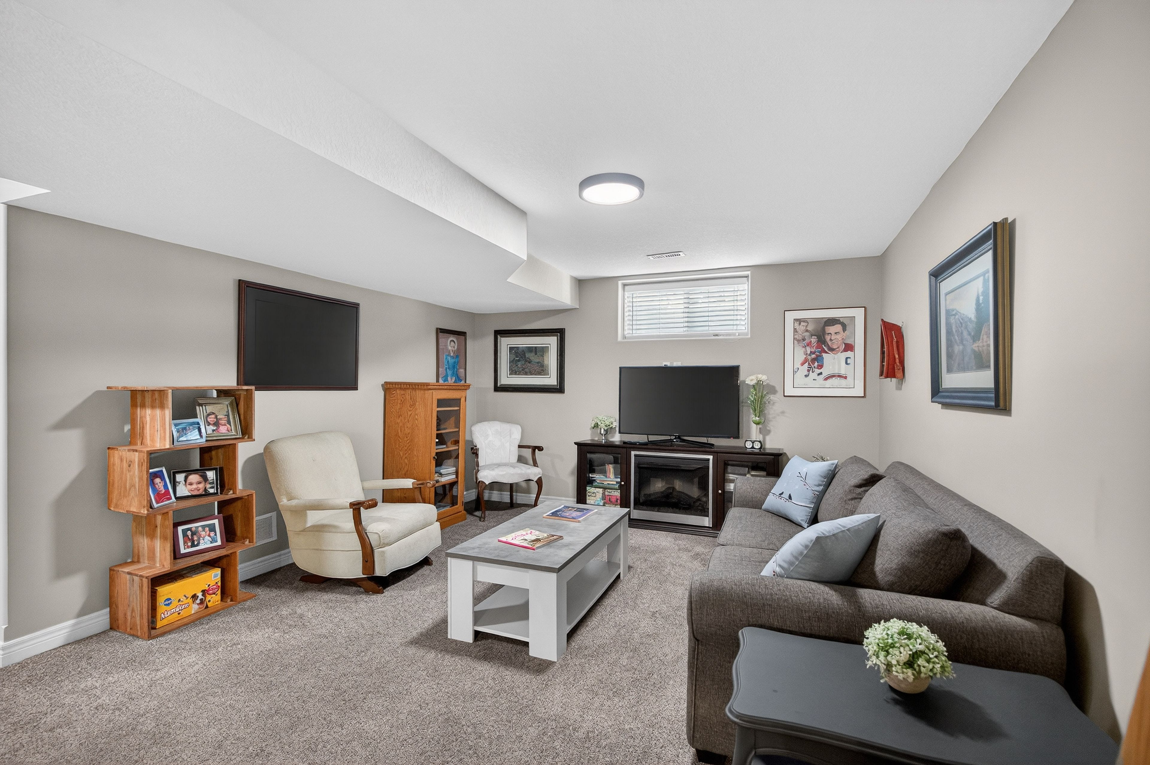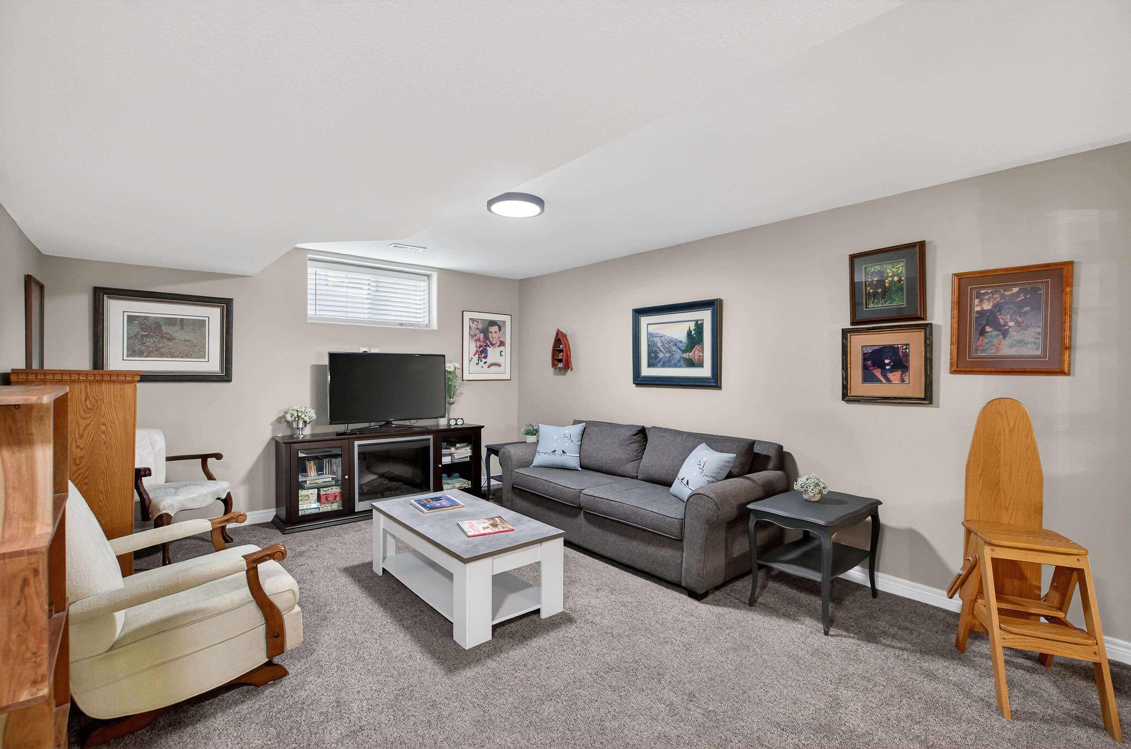 • Finished lower level with a rec room and additional bedroom.