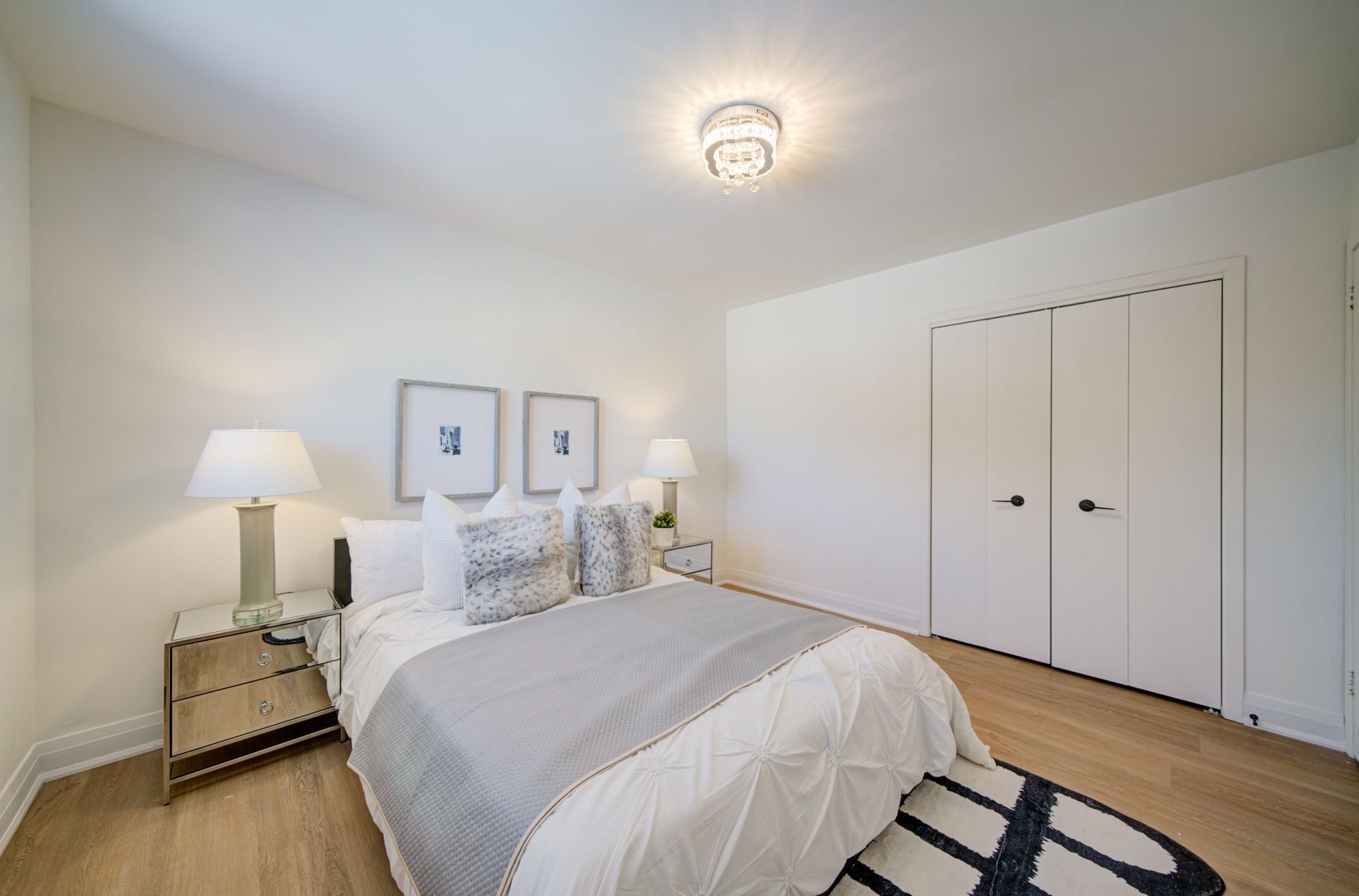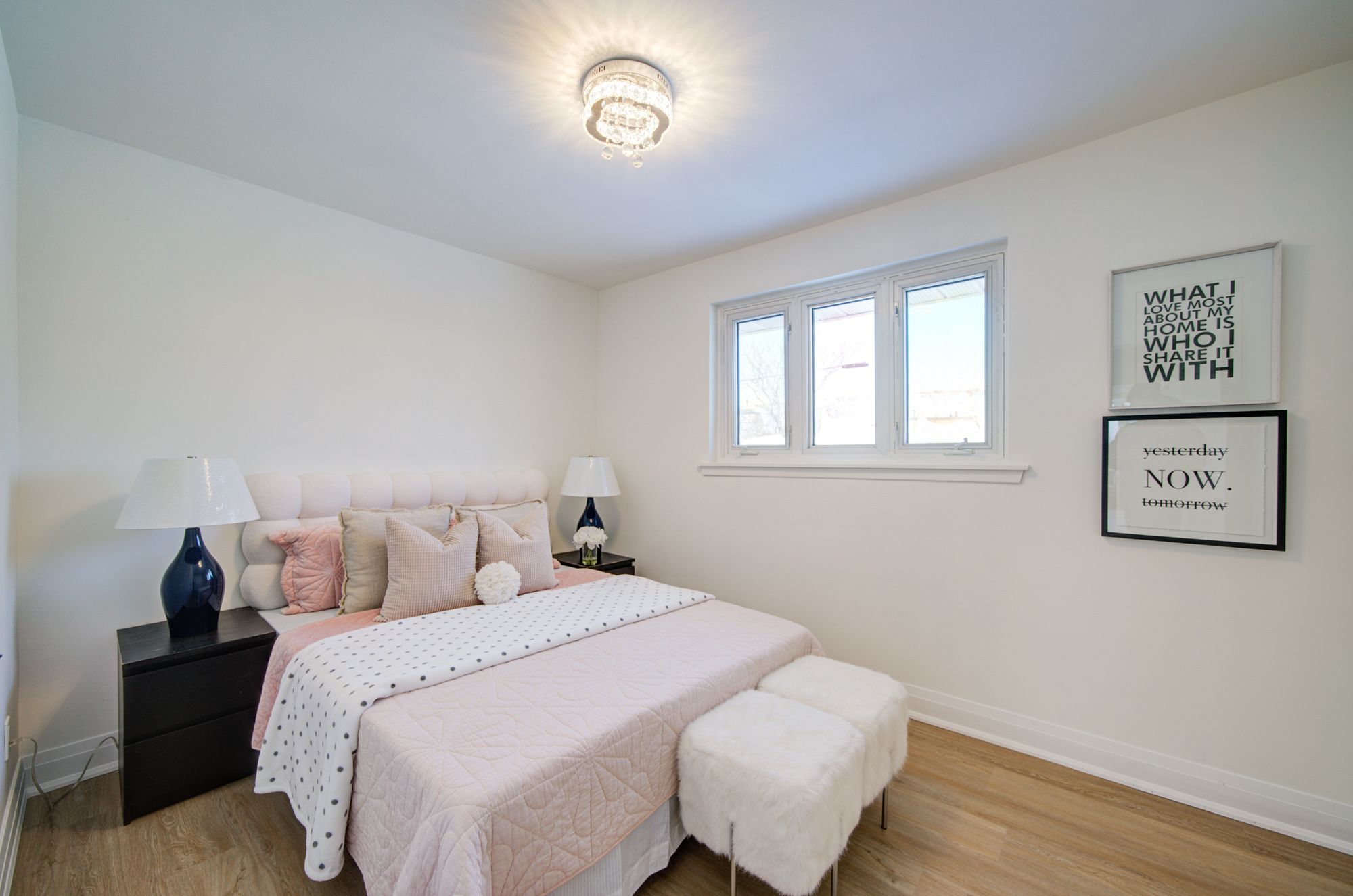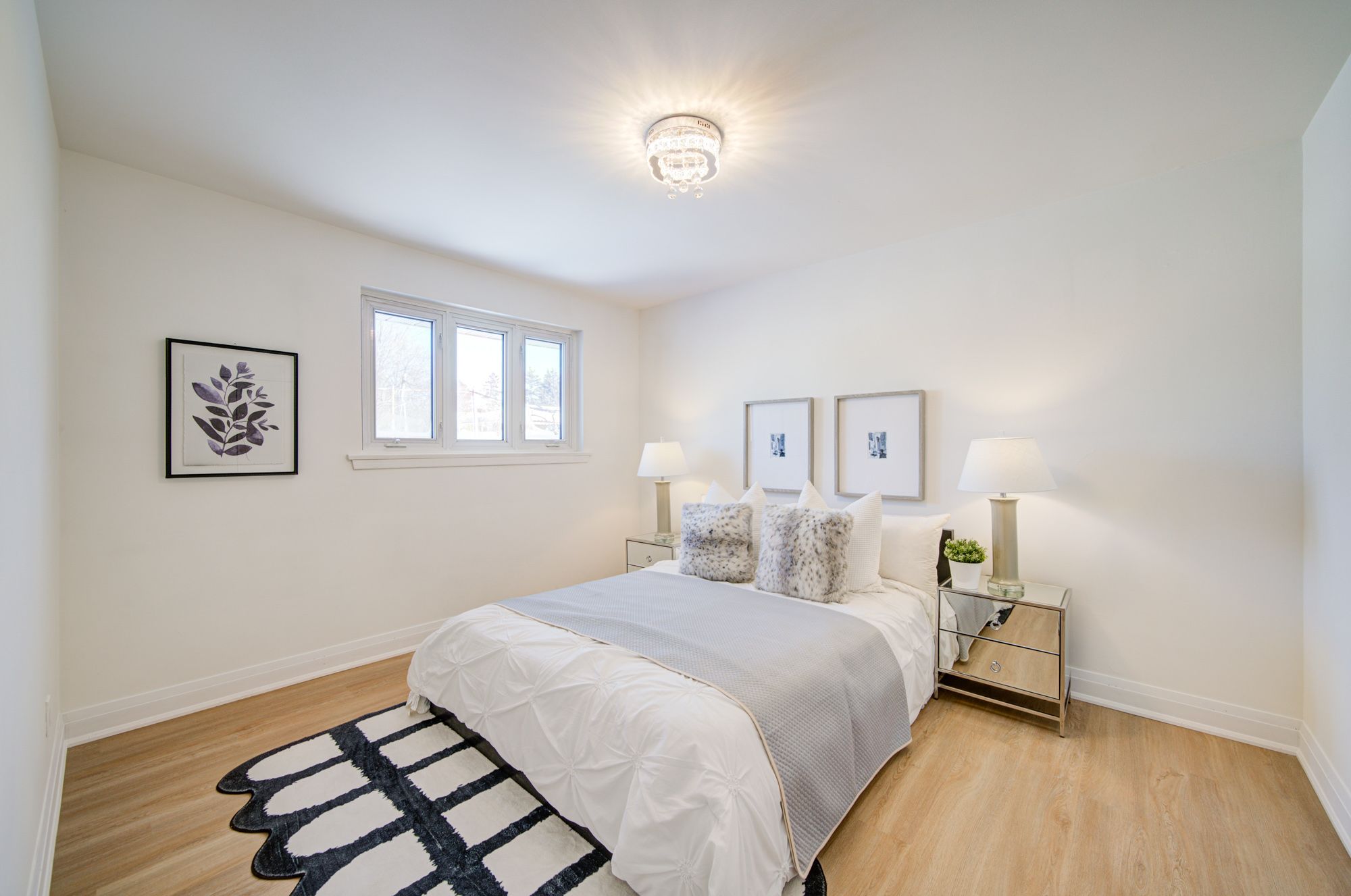 Beautifully renovated split-level bungalow on a premium lot. 36 birchard st, toronto. Welcome to this stunning, fully renovated single-detached home nestled on a quiet, mature street, backing onto a school and park for ultimate privacy and tranquility. Freshly painted throughout and completely move-in ready, this exceptional family home offers style, comfort, and versatility. Featuring bright above-grade windows, a built-in garage, mezzanine in garage, with a widened driveway, and a fully finished in-law basement suite, this home is thoughtfully designed for multi-generational living. Both the main floor and basement include modern 3-piece bathrooms for added convenience. Step outside to your private backyard retreat, complete with a kidney-shaped pool, newly built garden wall, and new paving stones along the backyard and side of the home. Mature landscaping and a symphony of seasonal blooms create a serene oasis in both the front and backyards. The spacious, updated kitchen boasts brand-new cabinetry, quartz countertops and backsplash, a large single-basin sink with a new faucet, stainless steel appliances, a range hood, and a bright breakfast nook overlooking the deck and pool - perfect for morning coffee or family gatherings. Upgraded bathrooms feature sleek walk-in showers with modern shower-tower systems. Additional highlights include: south- and north-facing exposures providing excellent natural light. Vinyl flooring throughout the main and basement levels. Upgraded lighting with pot lights. High-efficiency furnace situated on a premium lot in an ideal location, this home is just minutes from schools, hospitals, town centre, shopping malls, parks, grocery stores, public transit, bus stops, and convenient access to highway 401 (east and west). A rare opportunity to own a beautifully upgraded home in a highly desirable neighbourhood.