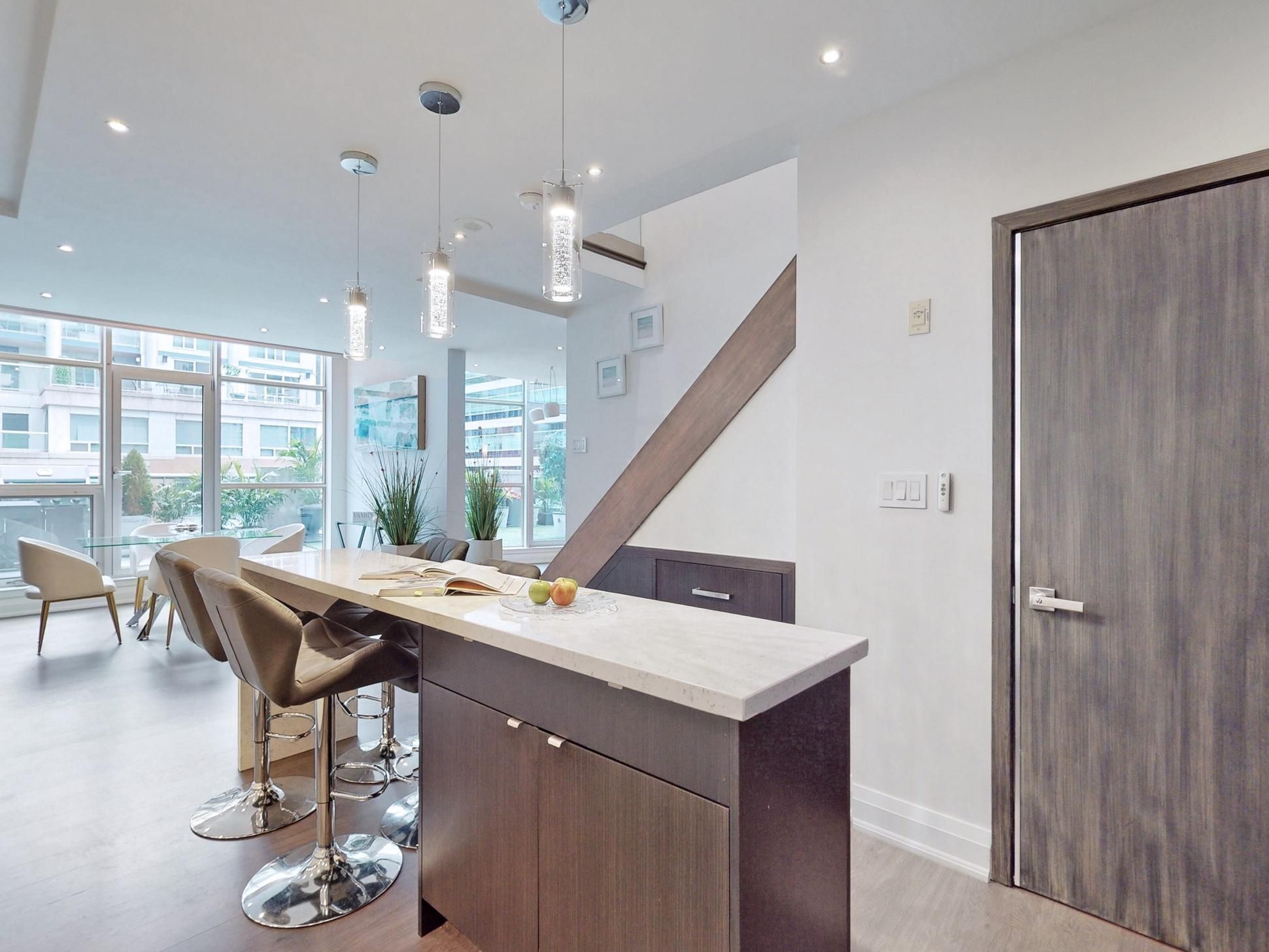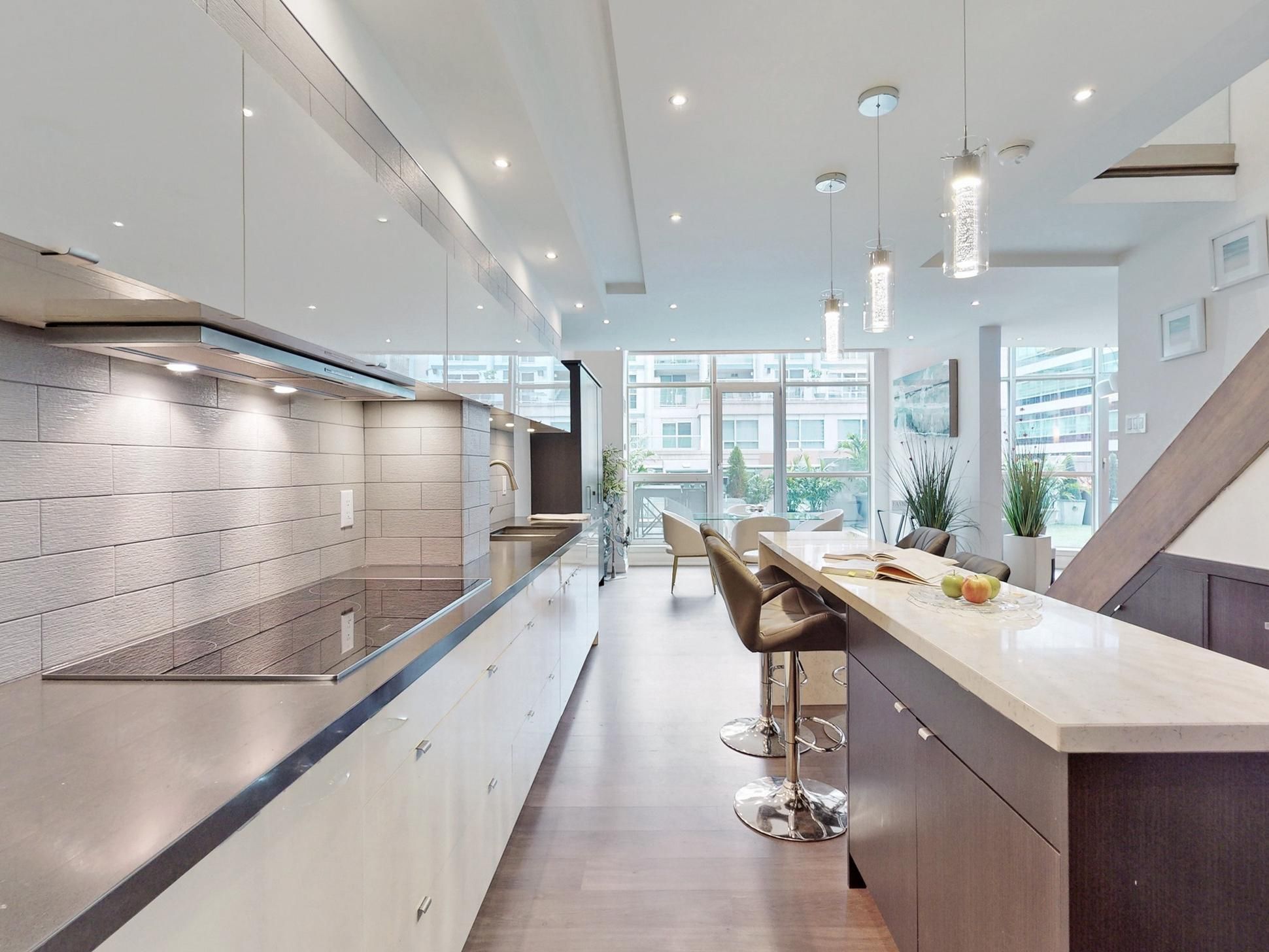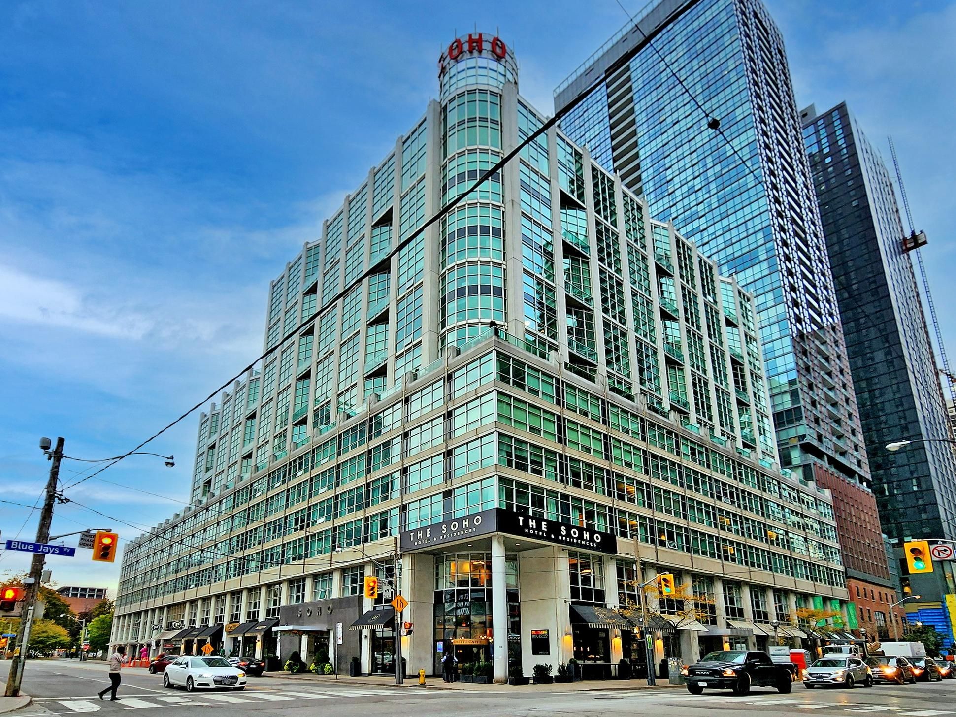 For sale: suite 711/712 36 blue jays way, toronto, on condo apartment | 3 bed | 4 bath | approx. 2,400+ sf interior + 1,000 sf terrace description: experience sophisticated urban living in one of the largest suites at the soho residences, located in toronto's vibrant entertainment district. This rare two-level corner suite offers over 2,400 sq. Ft. Of well-appointed living space, private wraparound terrace with sweeping views of the cn tower, rogers centre, and downtown skyline. Three bedrooms, each with its own ensuite expansive primary suite with walk-in closet and spa-inspired bath featuring a limestone soaking tub custom selba kitchen with premium appliances, integrated bar, and wine fridge floor-to-ceiling windows and double-height ceilings enhance natural light and city views ideal layout for entertaining and everyday comfort outdoor space: oversized wraparound terrace ideal for outdoor dining and relaxation building amenities: indoor pool and sauna fitness center business lounge and meeting rooms direct access to moretti café & restaurant location: centrally located steps from dining, shopping, entertainment, union station, and key attractions such as tiff lightbox and the rogers centre. A truly exceptional residence in a sought-after downtown setting.
