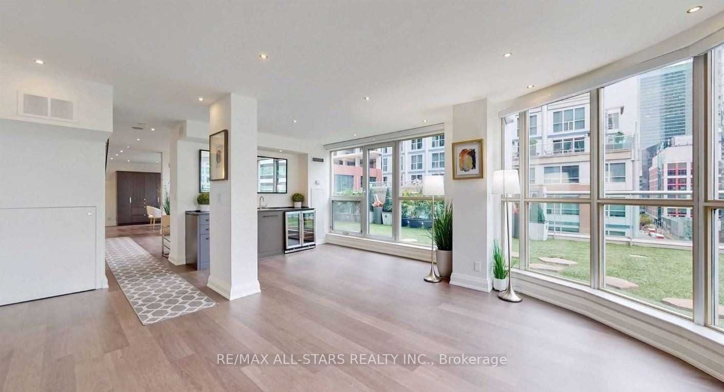 Prestigious living at the iconic soho residences and hotel in toronto's entertainment district. This exceptional two-level corner suite is one of the largest in the building, offering approx. 2,400-2,500 sq. Ft. Of total space including an expansive 1,000 sqft private wraparound terrace, the largest terrace in the building. Barbecues are permitted on the terrace. Bright open concept layout with floor to ceiling windows throughout. All 3 bedrooms feature large windows with abundant natural light dining room, family room and entertainment area with floor to ceiling windows. Selba designed kitchen with custom cabinetry, premium appliances, and an island with eat in breakfast area. Powder room conveniently located on the main level. All 3 bedrooms located on the second floor, each with access to 3 full bathrooms. Main bedroom retreat with walk in closet and spa style ensuite , vanico maronyx sink, and fossil wood accents. Two staircases, including a private staircase to the main bedroom. Building amenities include indoor pool & sauna, fitness centre, business lounge and on site moretti cafe & restaurant. Steps to king west, rogers centre, cn tower, ripley's aquarium, scotiabank arena, theatres, union station, ttc, top restaurants, shops and toronto's financial district