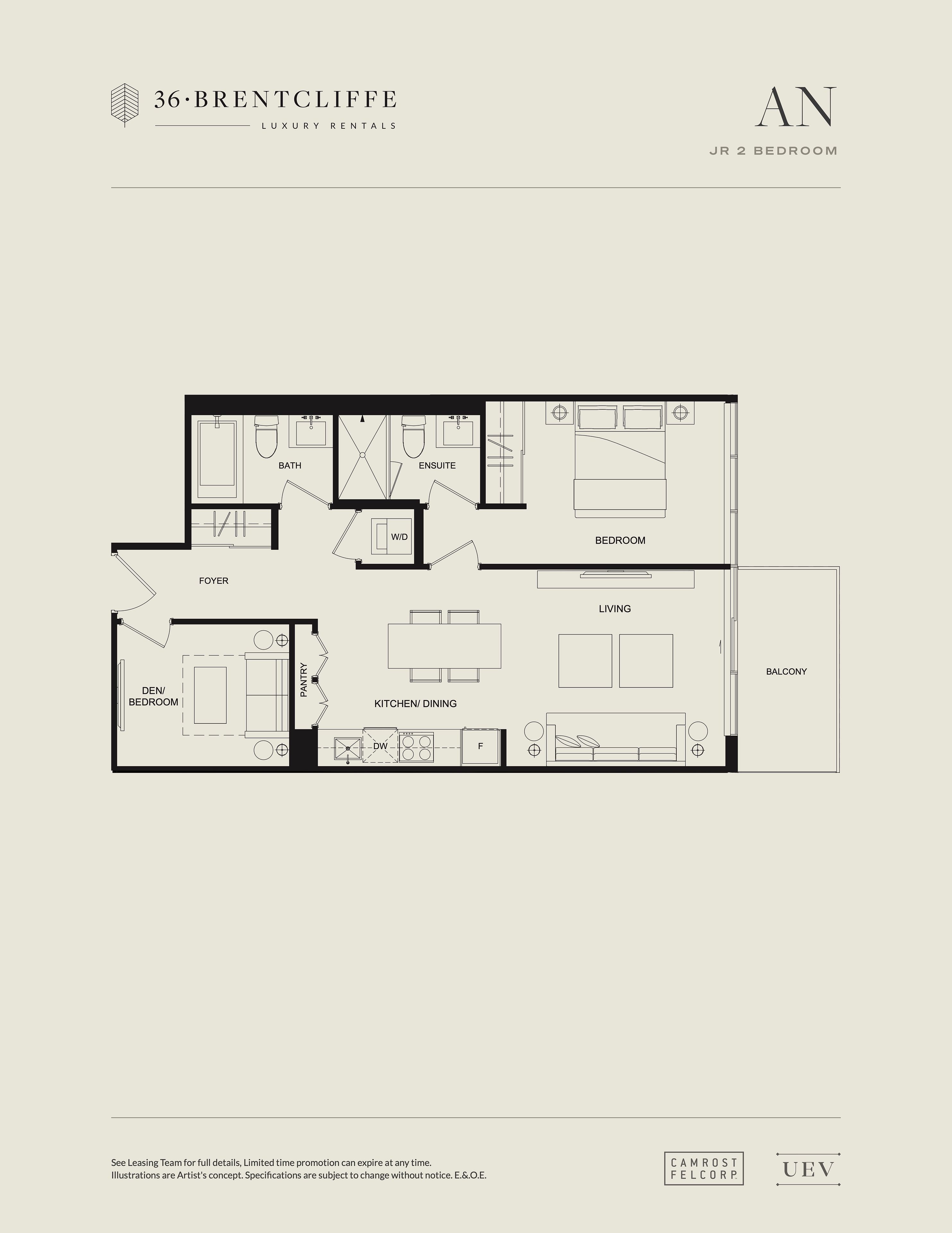 • Luxurious junior 2 bed, 2 bath with high-end finishes throughout.