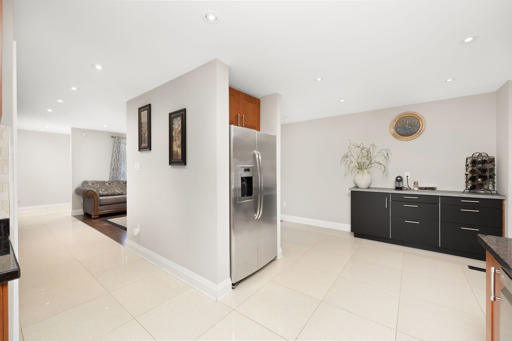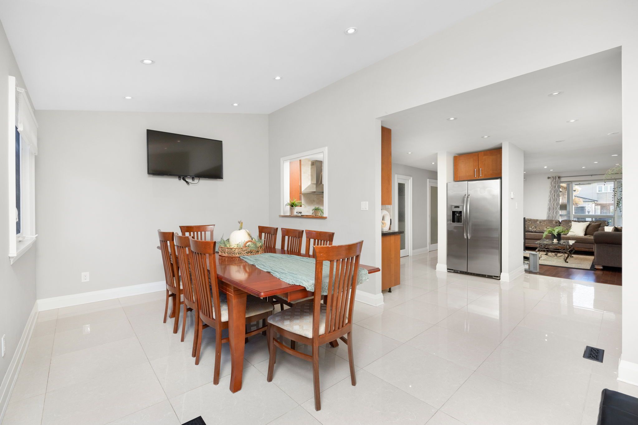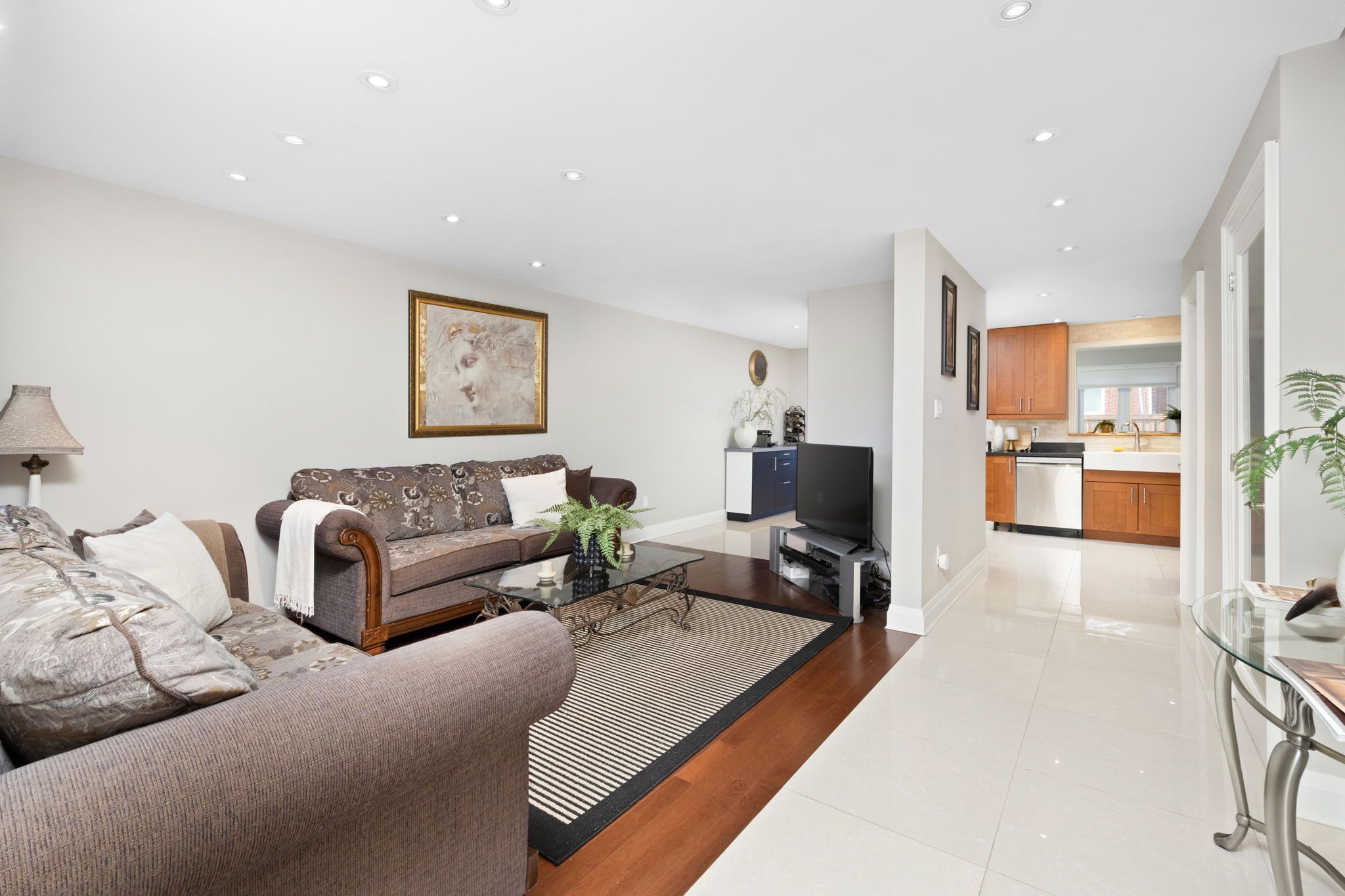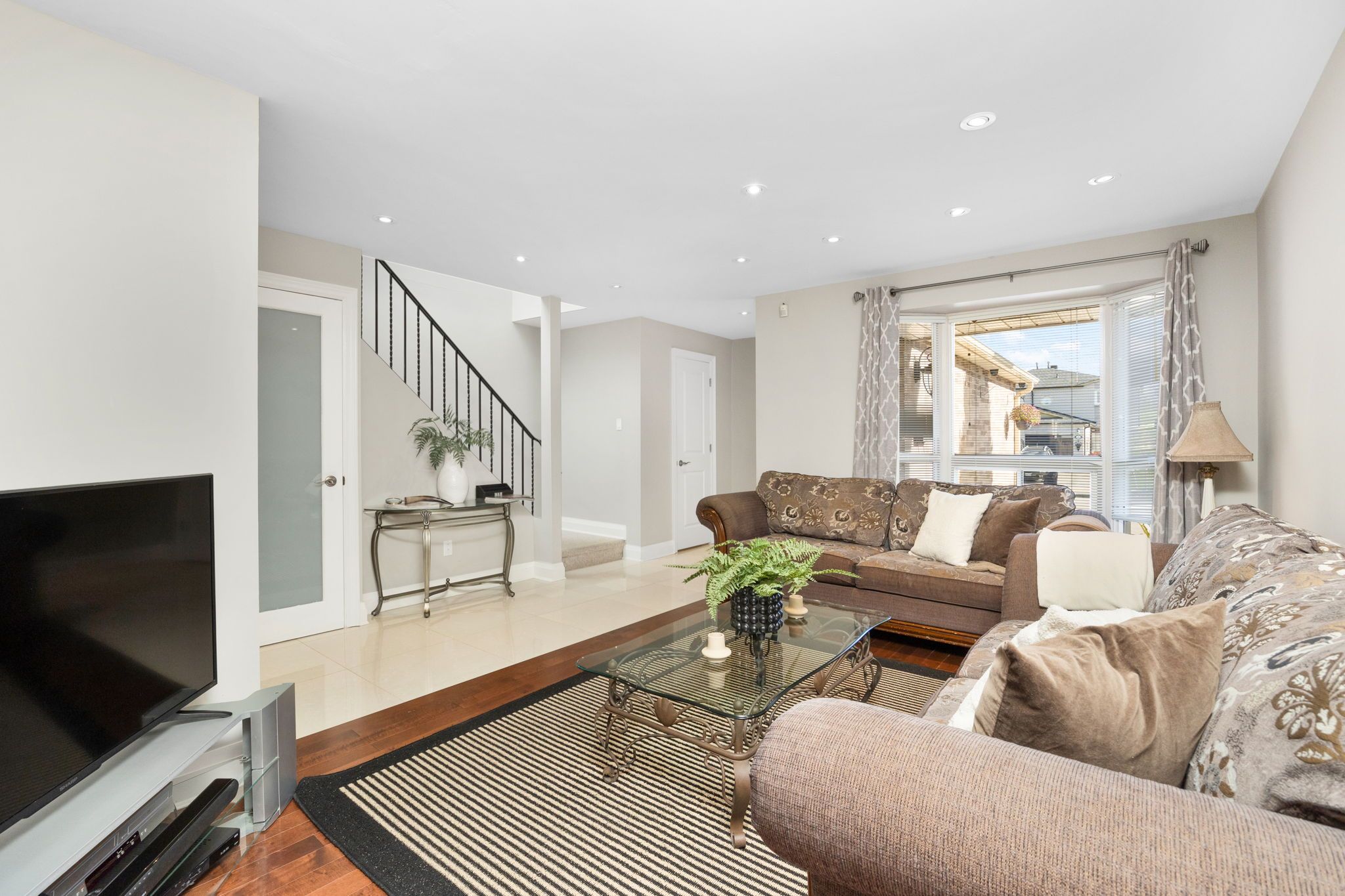 • Bright open-concept design featuring porcelain tiles and hardwood floors.