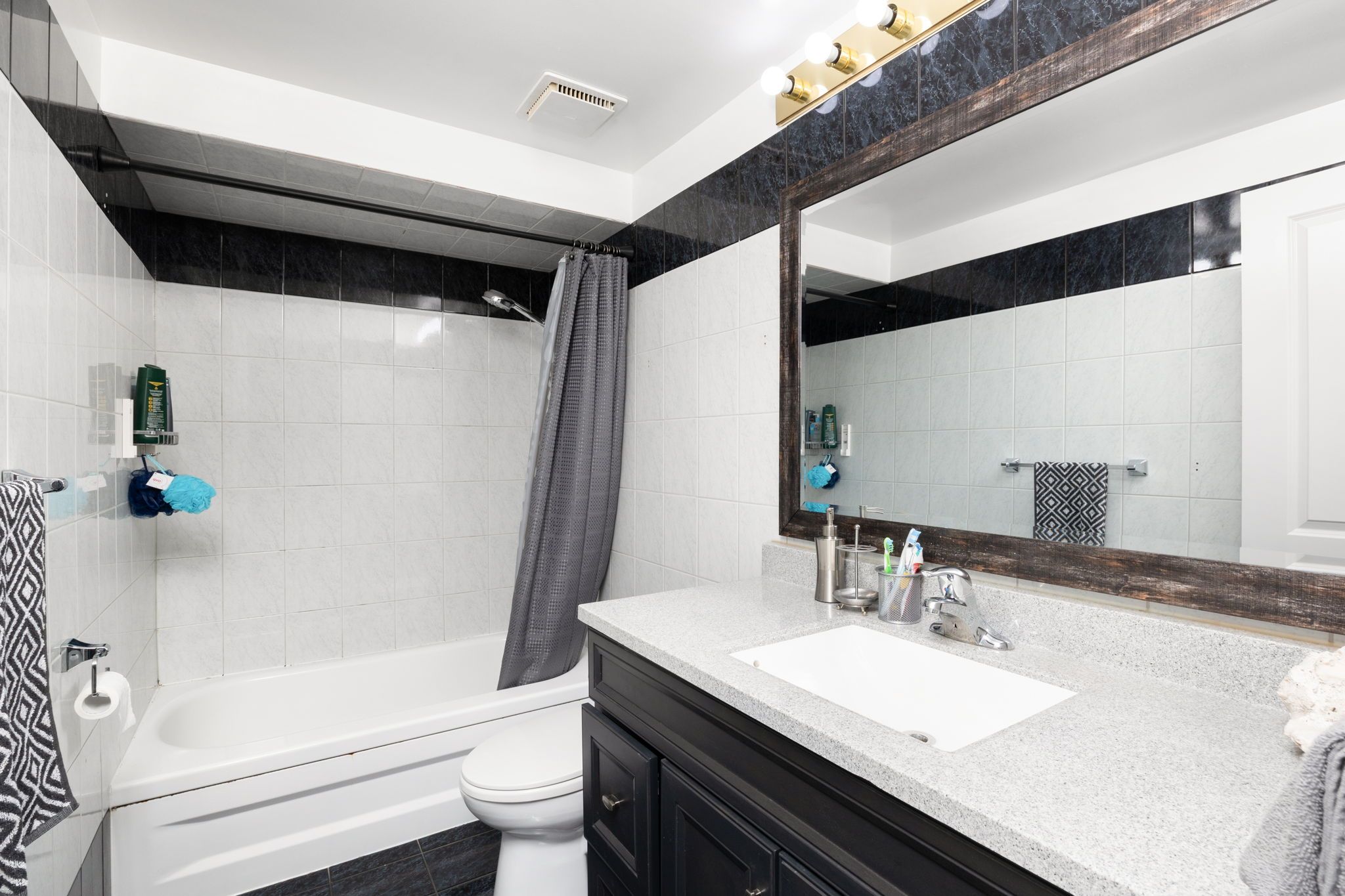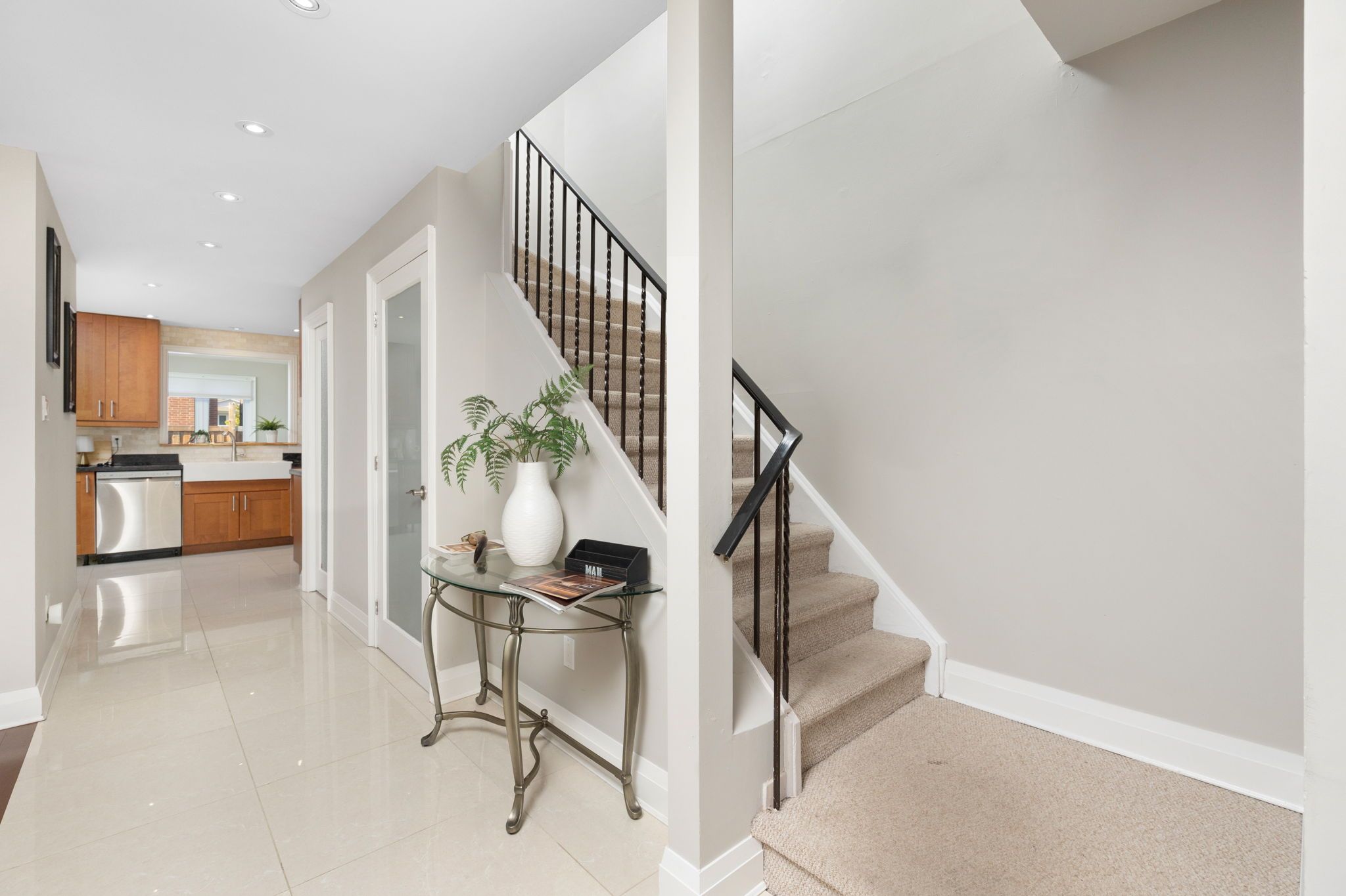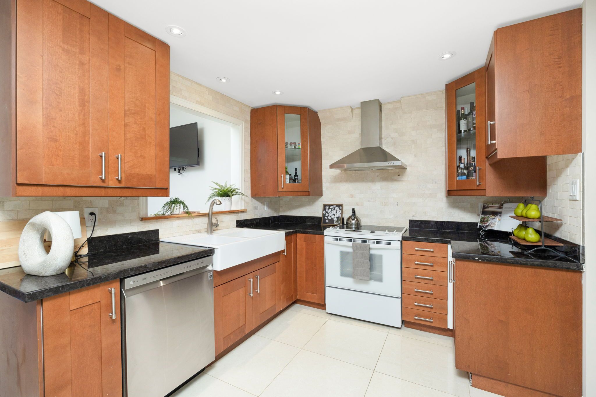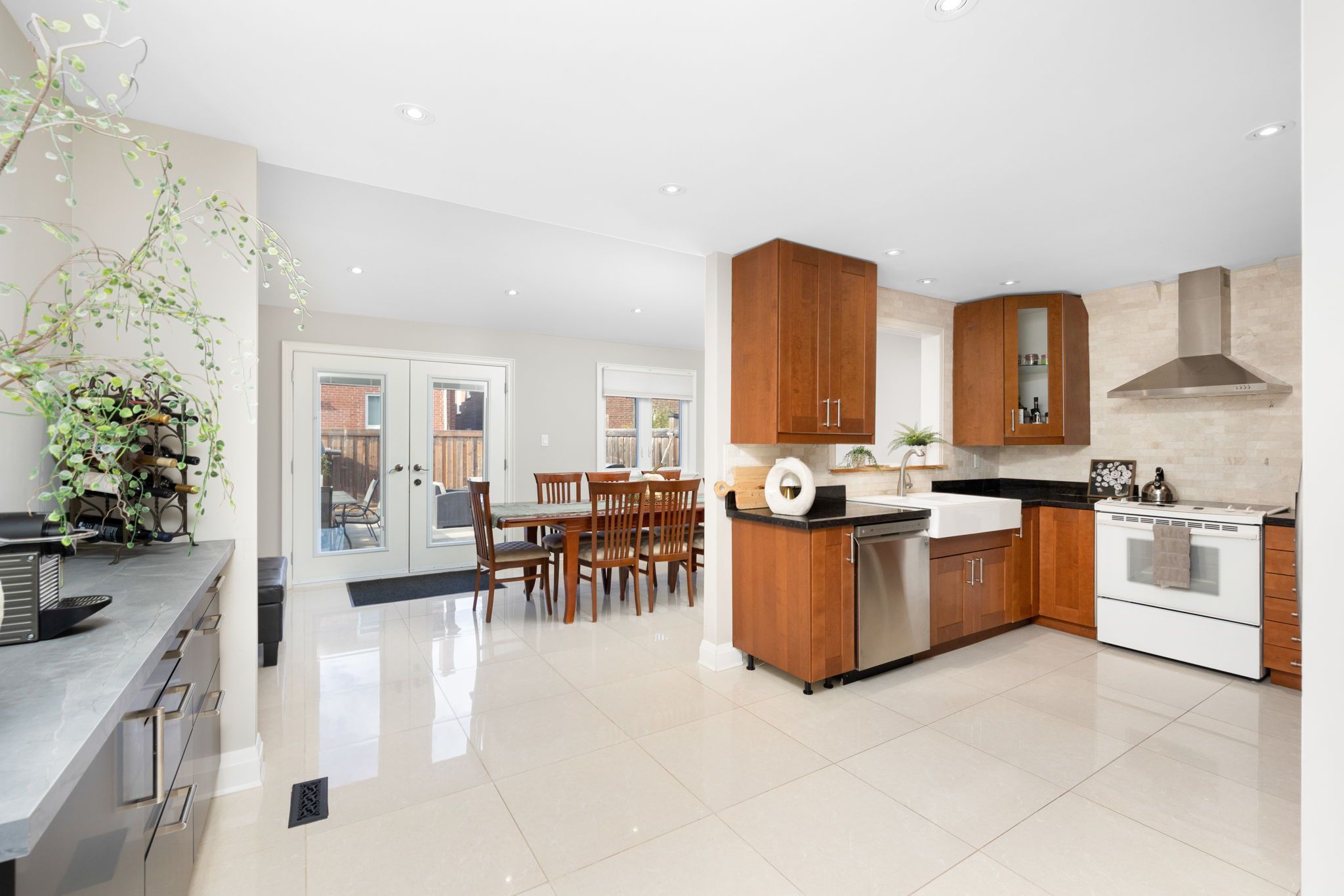 • Bright open-concept design featuring porcelain tiles and hardwood floors.