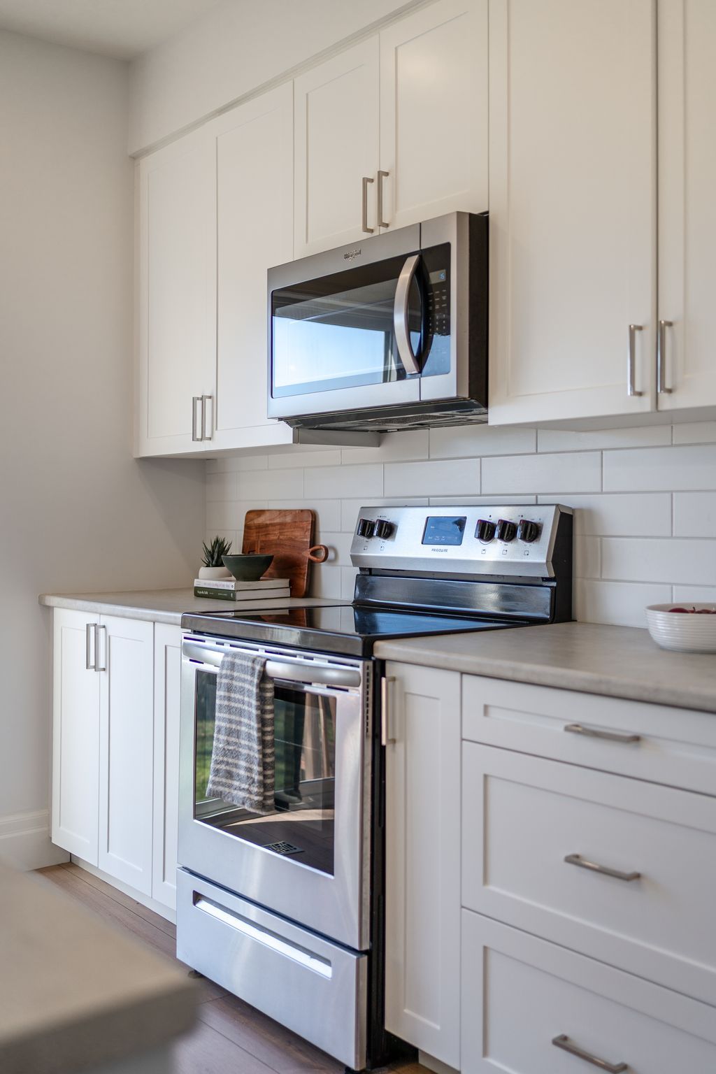 • Modern kitchen with new stainless steel appliances for easy cooking.