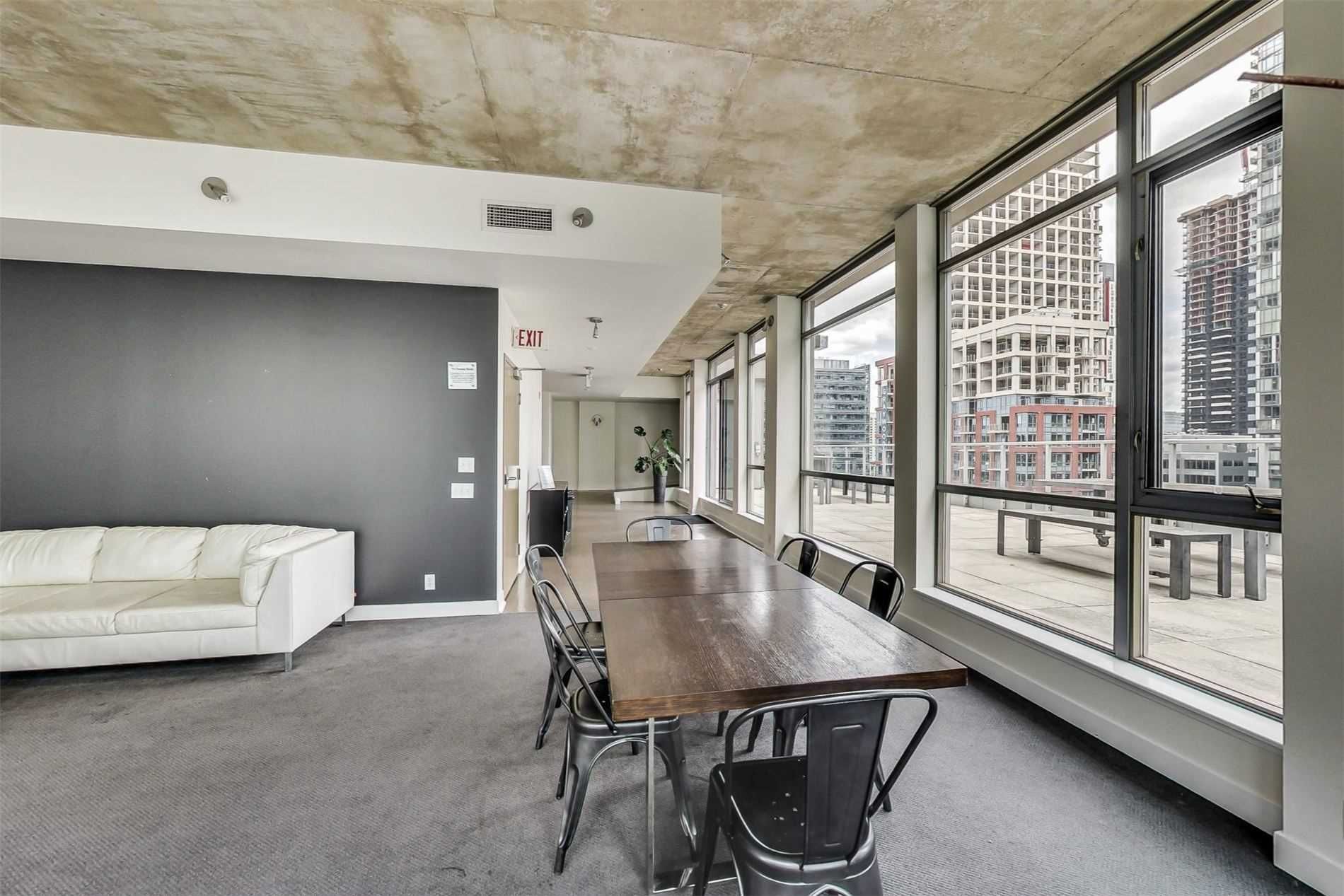 Welcome to the iconic charlotte lofts, a stunning 884sqft one bedroom corner loft in an exclusive 63-suite boutique building, perfectly situated in one of toronto's most walkable, energetic neighbourhoods. Steps to king west, queen west, and the financial district, you're surrounded by the city's best dining, nightlife, shopping, and transit. This sun-filled loft blends industrial character with modern design, featuring soaring exposed concrete ceilings, a statement column, and wrap-around floor-to-ceiling windows with blackout blinds. The expansive living/dining area with a wainscoting feature wall offers exceptional flexibility for entertaining or working from home, with a juliette balcony showcasing southeast city views. The scavolini kitchen is sleek and functional with corian counters, built-in stainless steel appliances, ample storage, and a movable island. Incredible custom storage solutions-including a front hall closet and a den converted into a massive walk-in closet, add thoughtful luxury. The primary suite features floor-to-ceiling windows, built-ins, and a spa-like 4-piece bath with dual rainfall shower heads. A true statement loft in an unbeatable downtown location. Hydro, water, heat, and central air are all included in monthly fees.