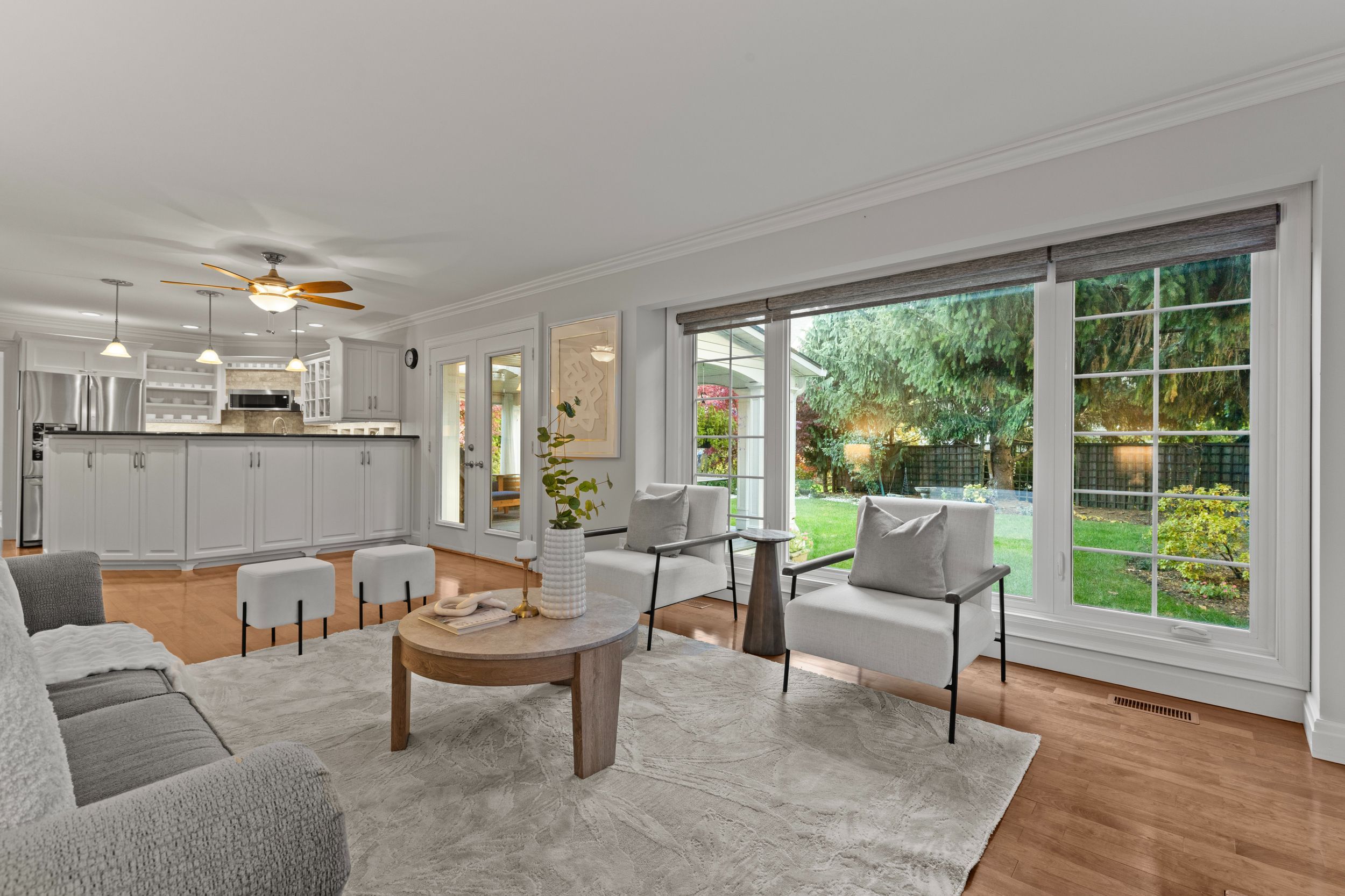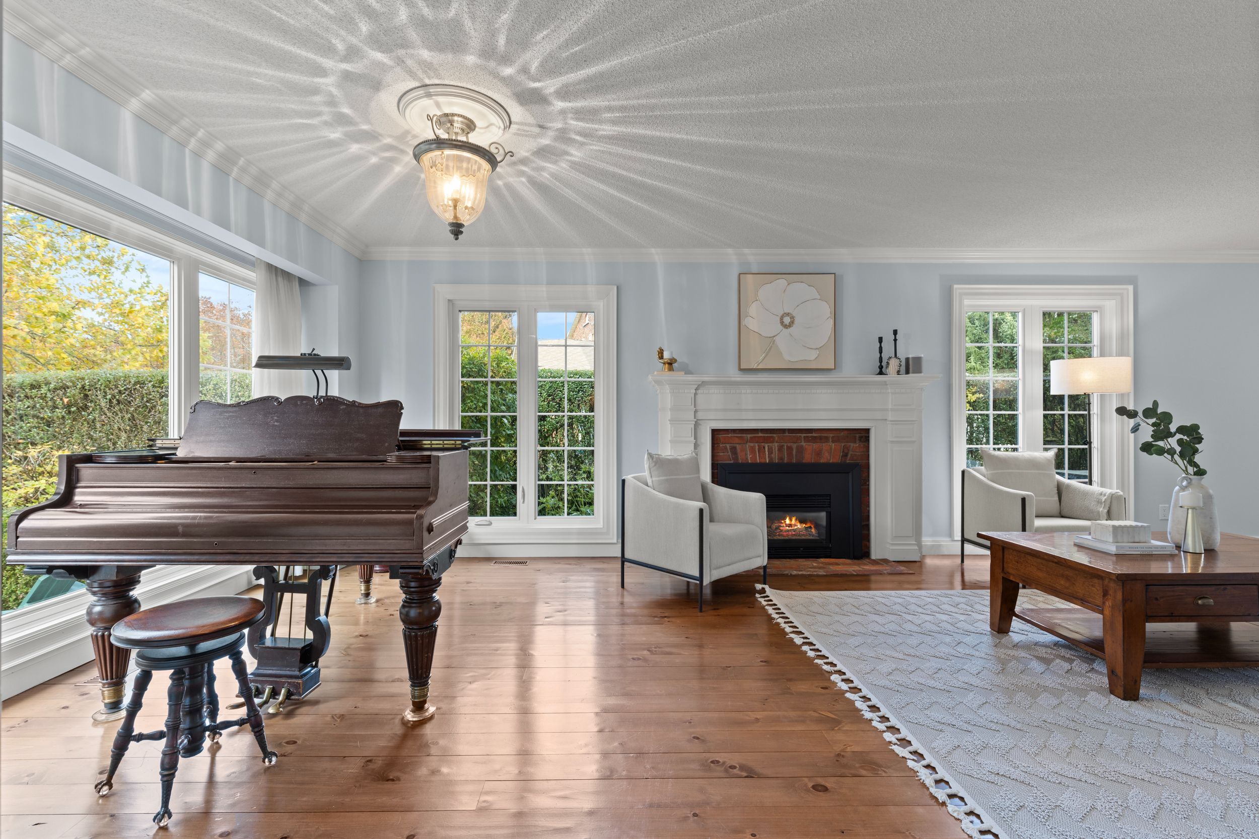 • Light-filled living spaces featuring a stately living room with a gas fireplace.