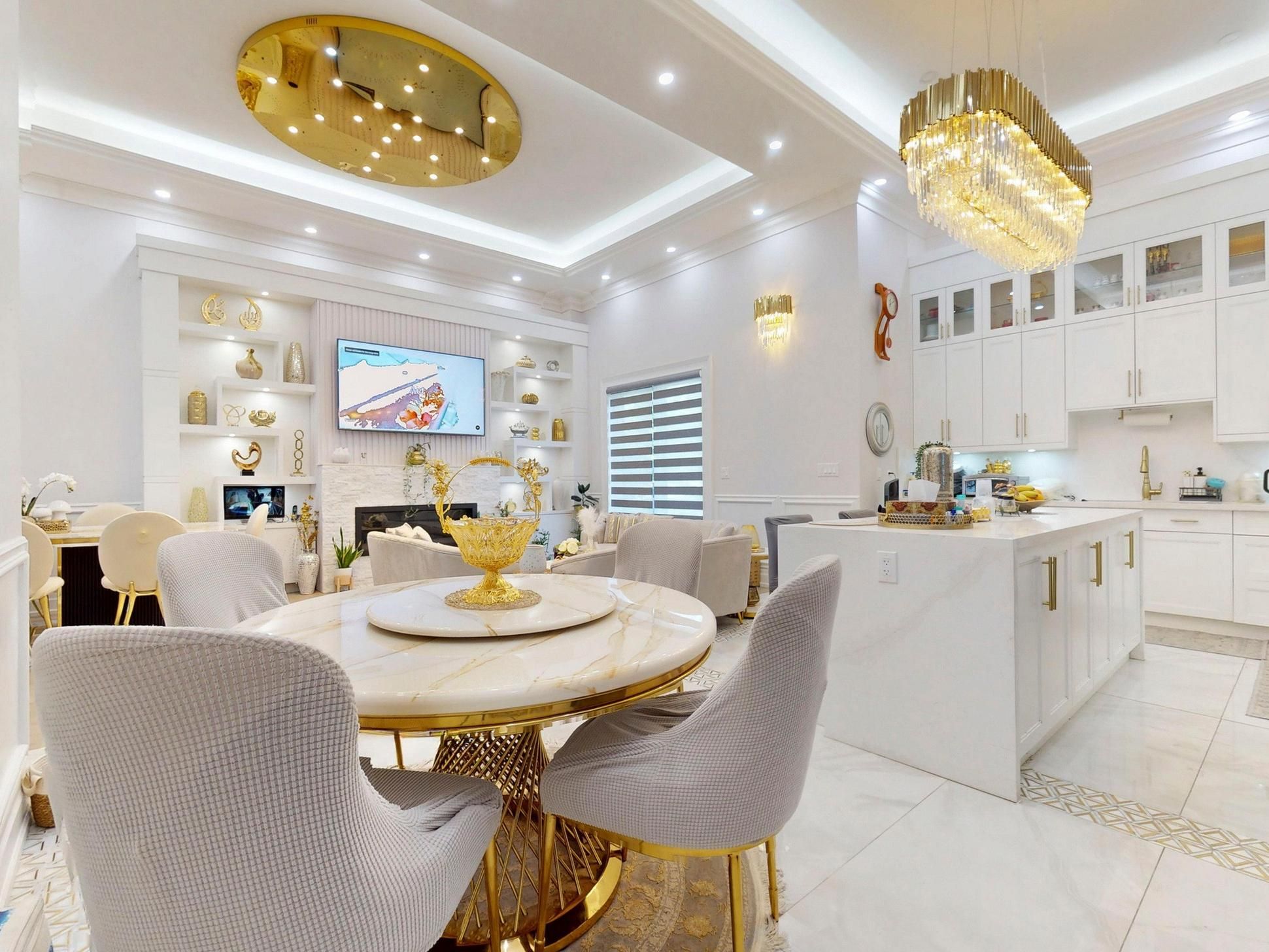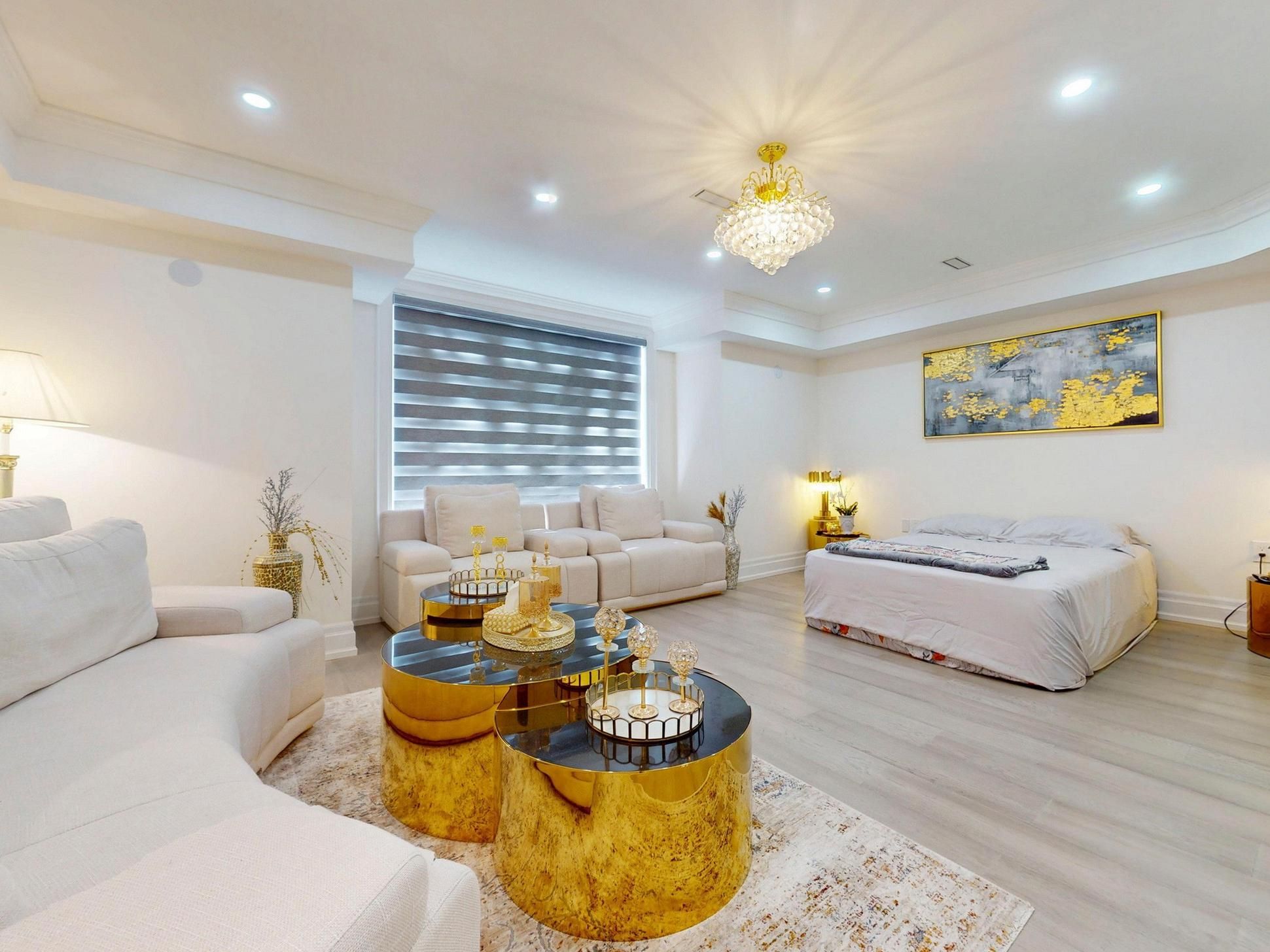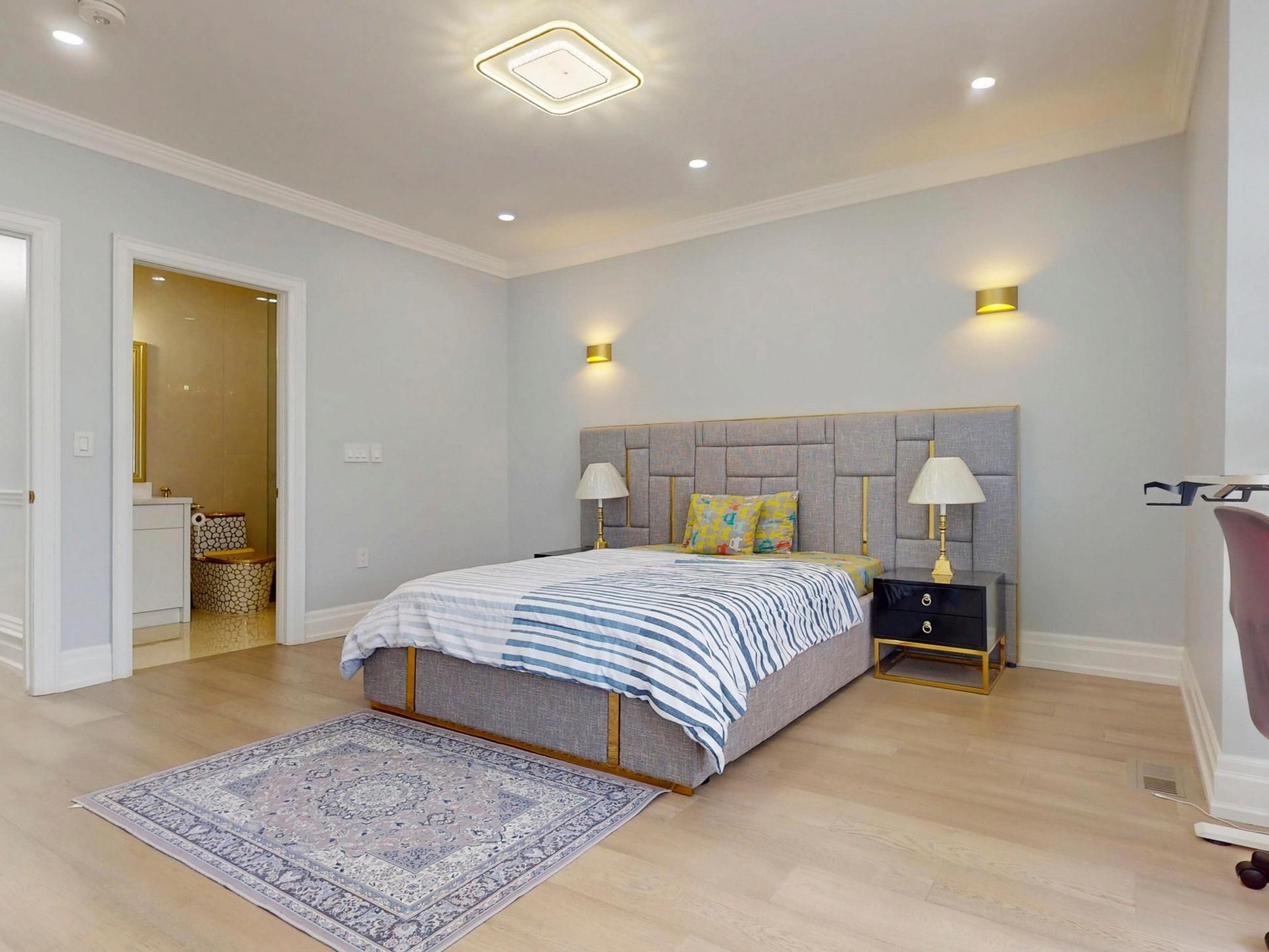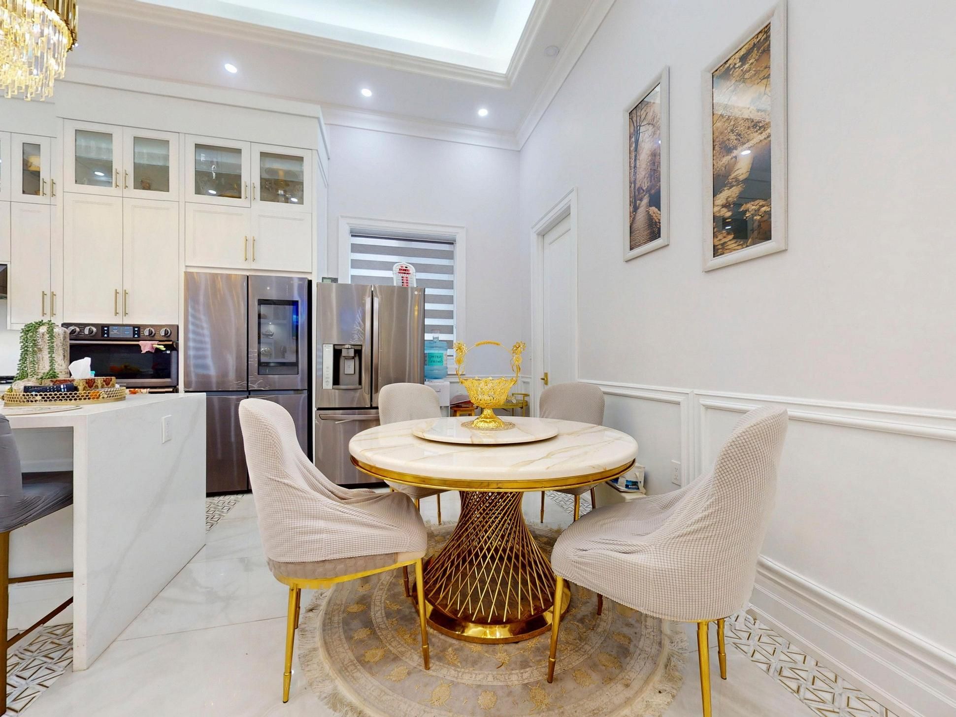 • Luxurious finishes throughout, including coffered ceilings and hardwood floors.