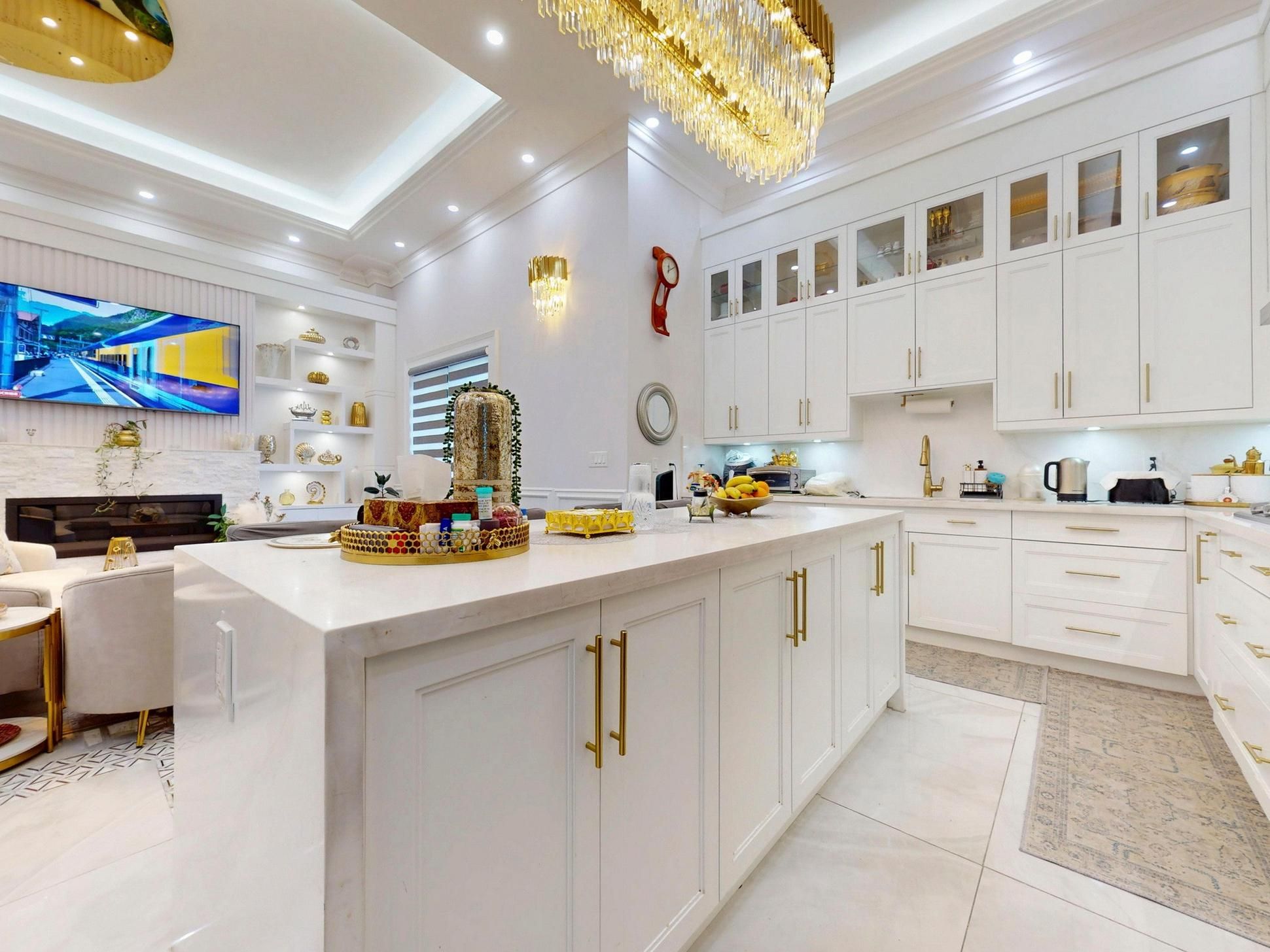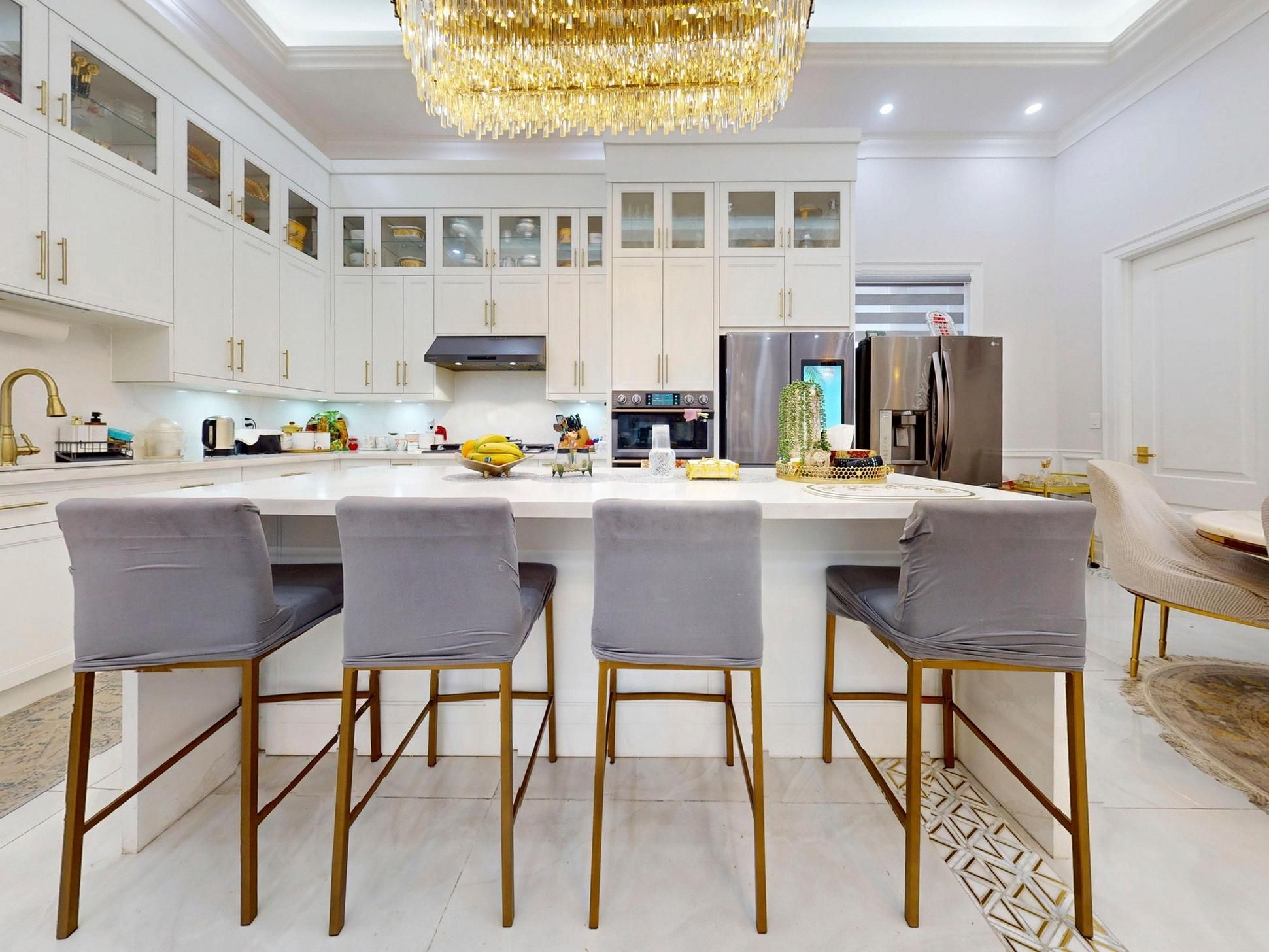 • Custom dream kitchen featuring high-end appliances and quartz countertops.