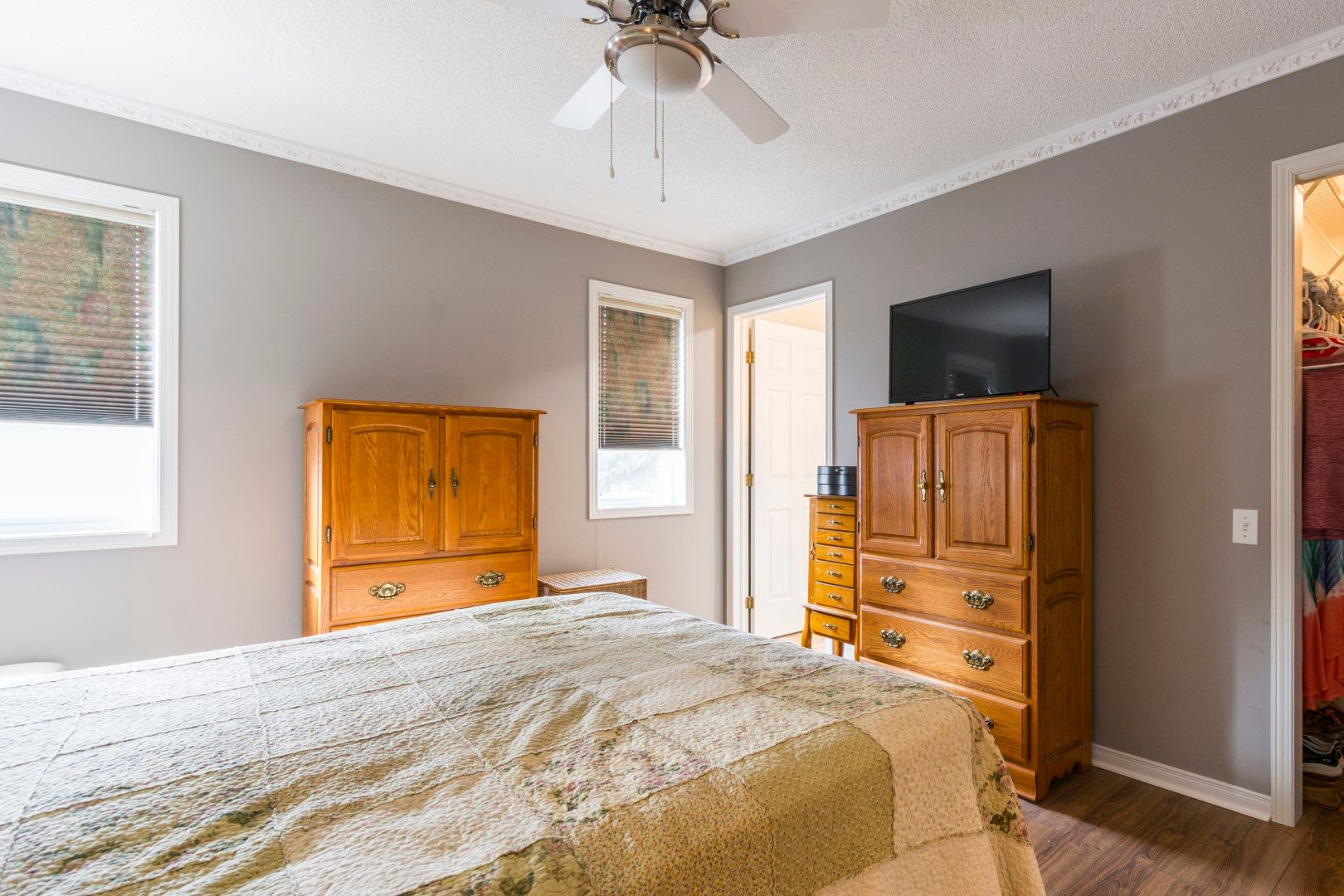 • Primary bedroom includes a jetted tub and raised vanity for relaxation.