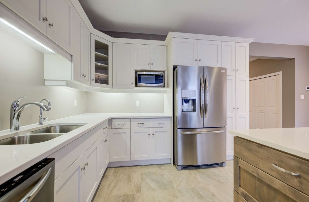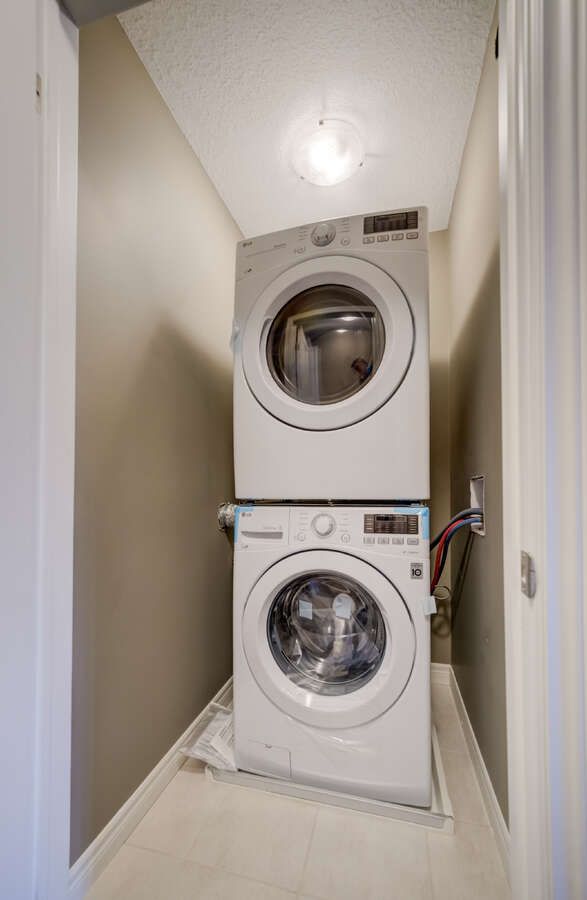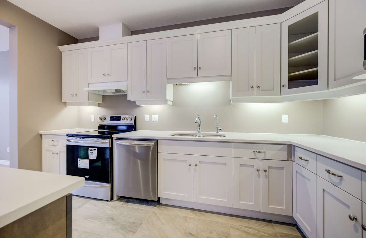 • Modern kitchen features quartz countertops and included appliances.
