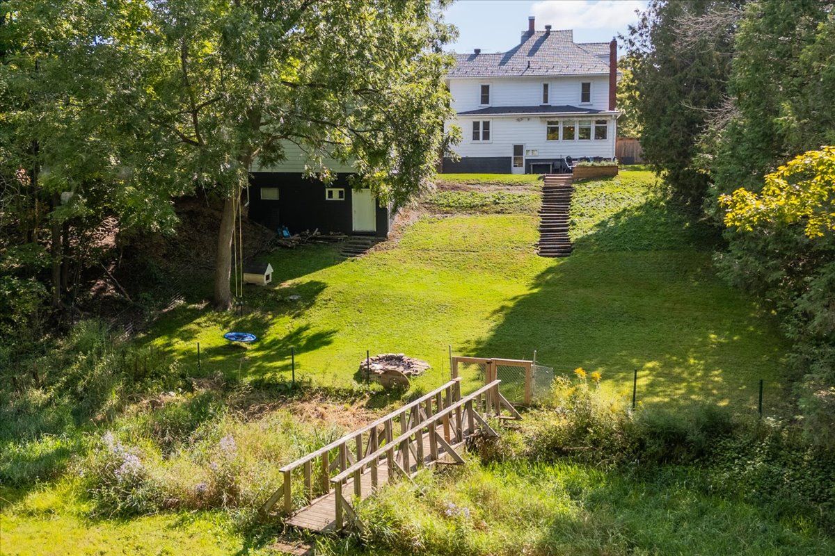 Stunning 2 storey home on 1. 3 acres in the heart of flesherton, complete with boyne river access! This expansive over 2,500 square foot home offers ample space for families, with plenty of parking, a detached garage, and a serene backyard that stretches to the river and beyond with an additional wooded area immersing you in nature and adding to your privacy! The main level is filled with charm - high ceilings, hardwood floors, a bright country kitchen, enclosed front porch, and the convenience of a main floor bedroom and 2-piece bath. Upstairs, the spacious primary bedroom is joined by three additional bedrooms and a beautiful 4-piece bath with soaker tub. A third-level retreat provides even more space, large enough to serve as a bedroom, office, or lounge. Storage is never an issue with a partially finished basement and a unique detached garage featuring both upper and lower levels. The lower level offers a walkout to the yard, while the unfinished upper level provides the potential for additional living space. Enjoy two separate yard areas and direct river access, creating endless opportunities for outdoor enjoyment. All of this is just a short walk to downtown flesherton's shops, dining, and entertainment, with durham and shelburne less than 30 minutes away. The perfect balance of small-town charm, convenience, and room to grow! Total finished sqft - 2,524.