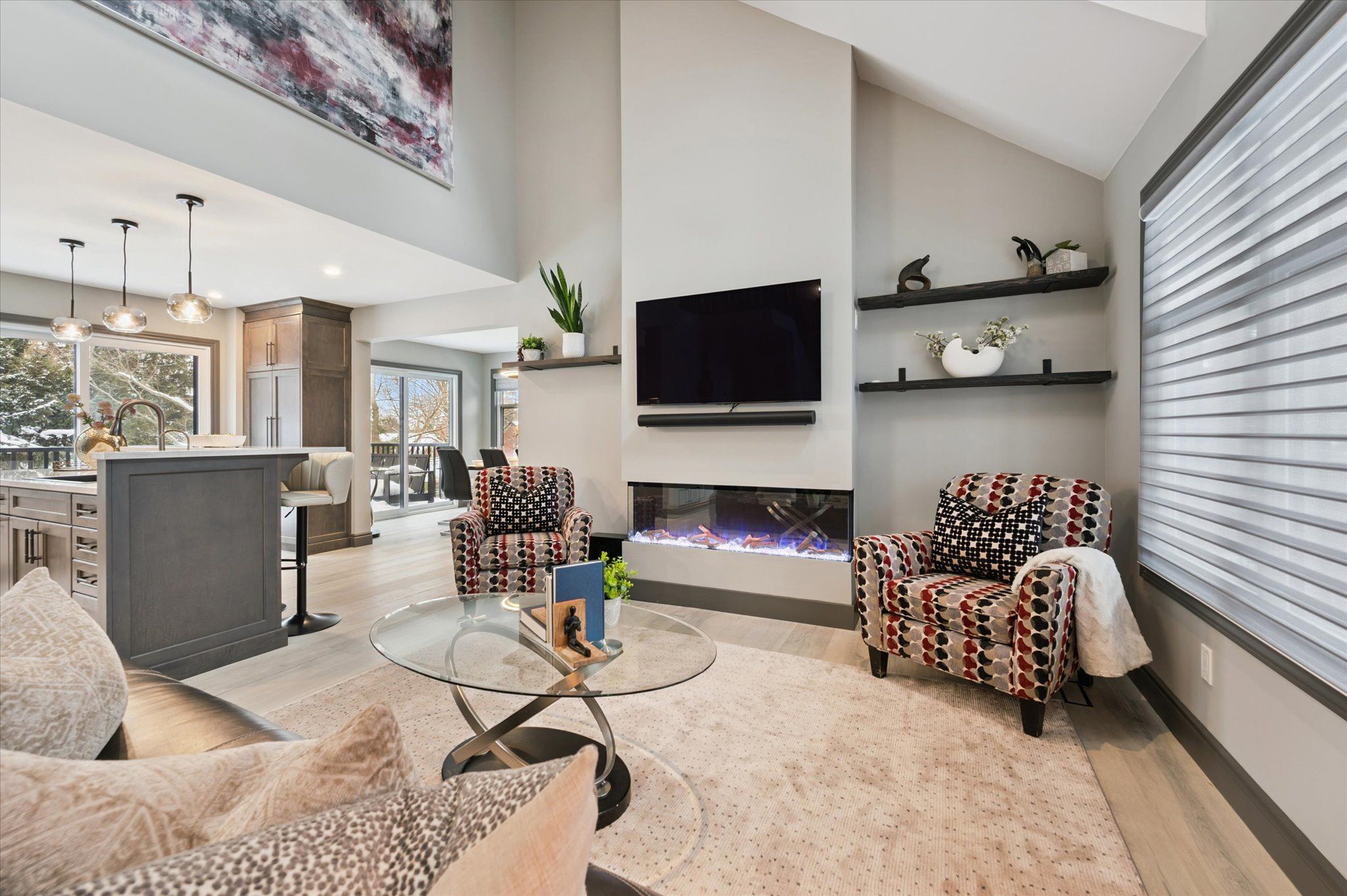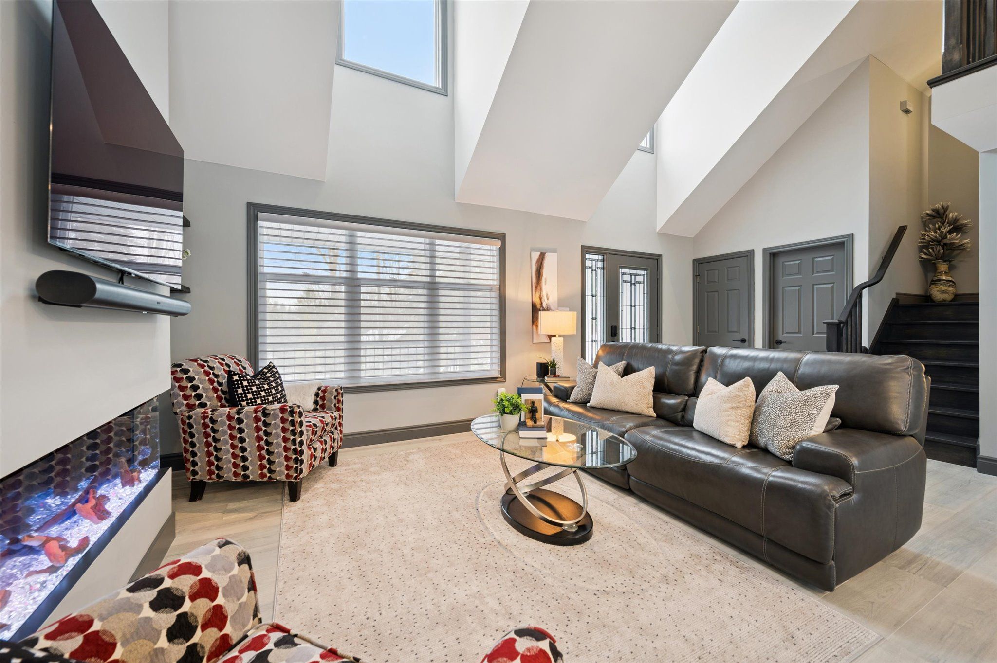 • Spacious layout with lots of natural light and vaulted ceilings.