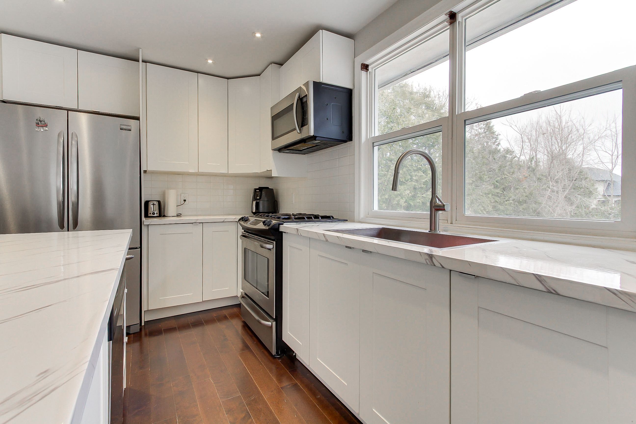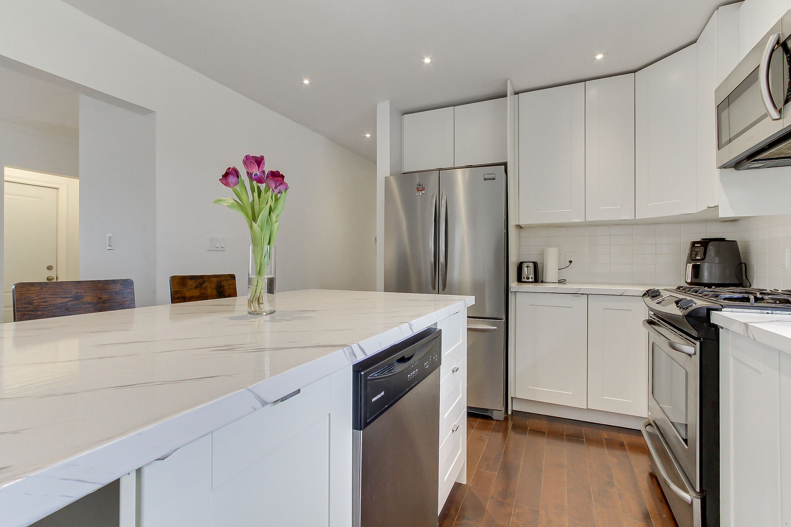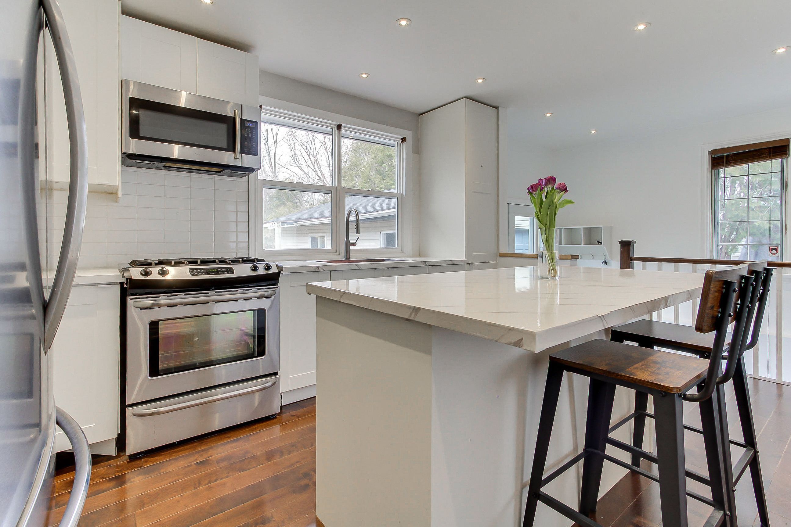 • Stunning kitchen features a large center island and pot lights.