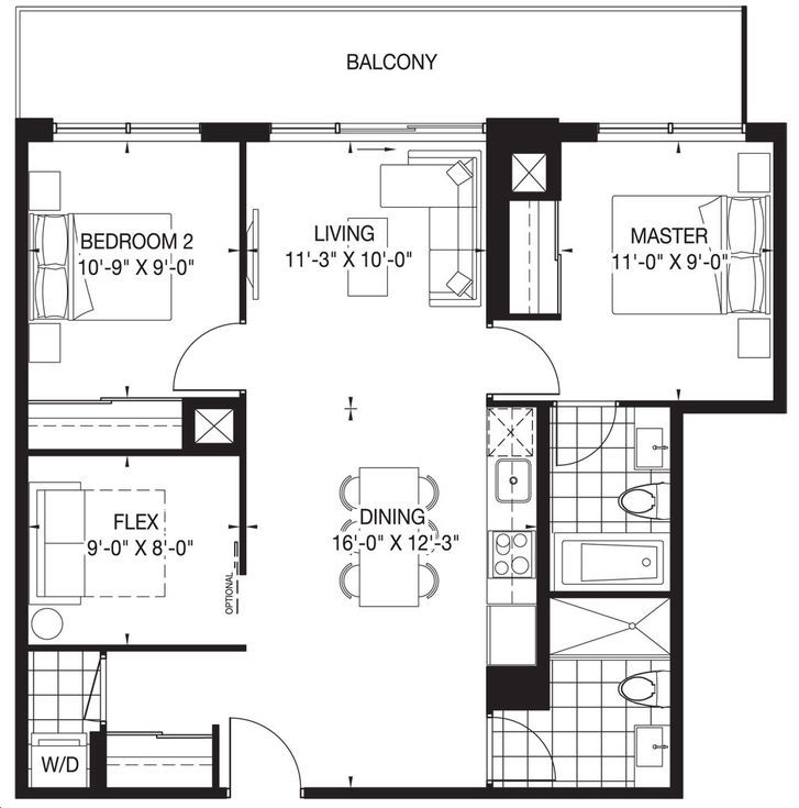 • Premier 2+Den unit with a rare flex room and high ceilings.