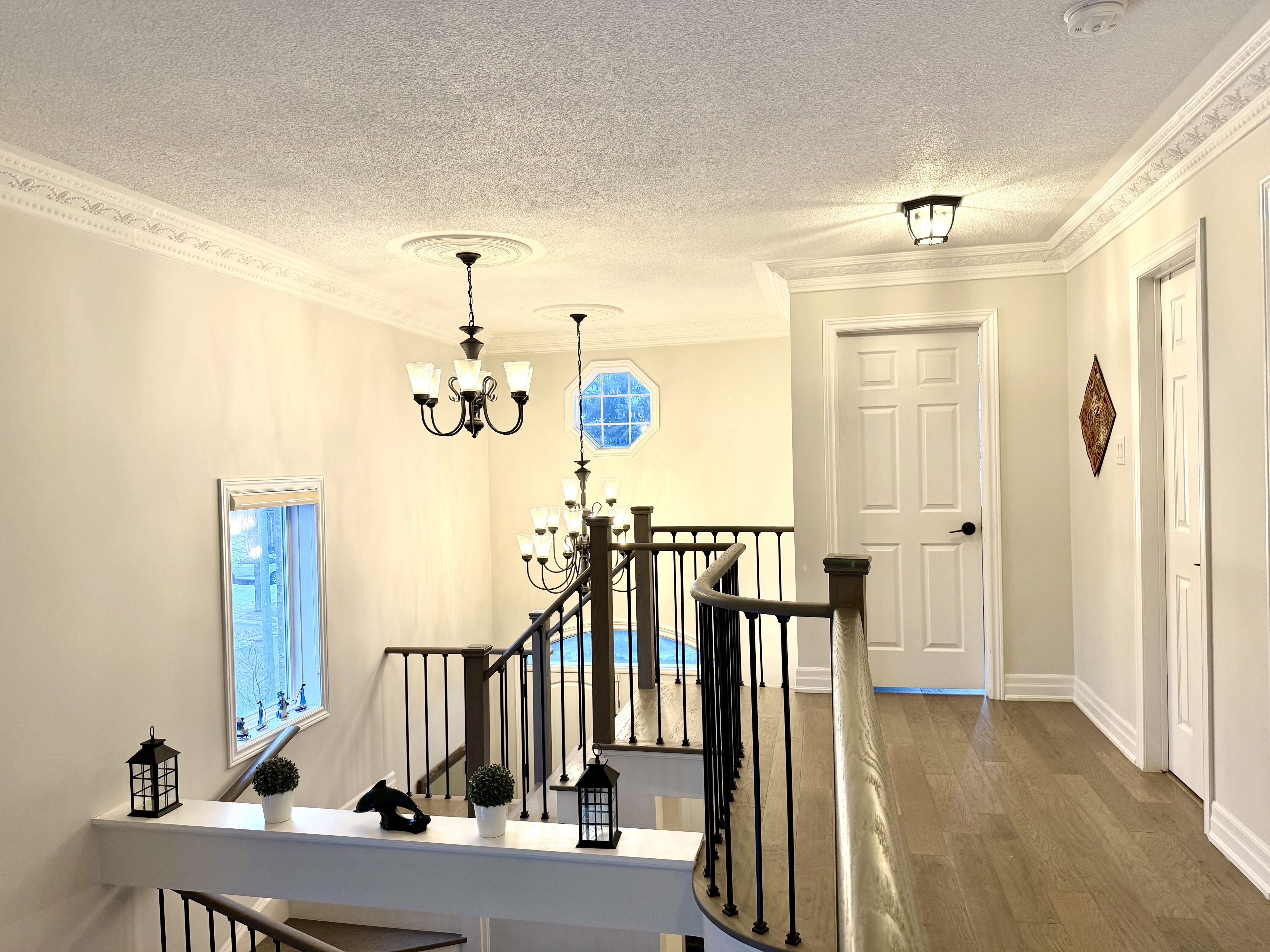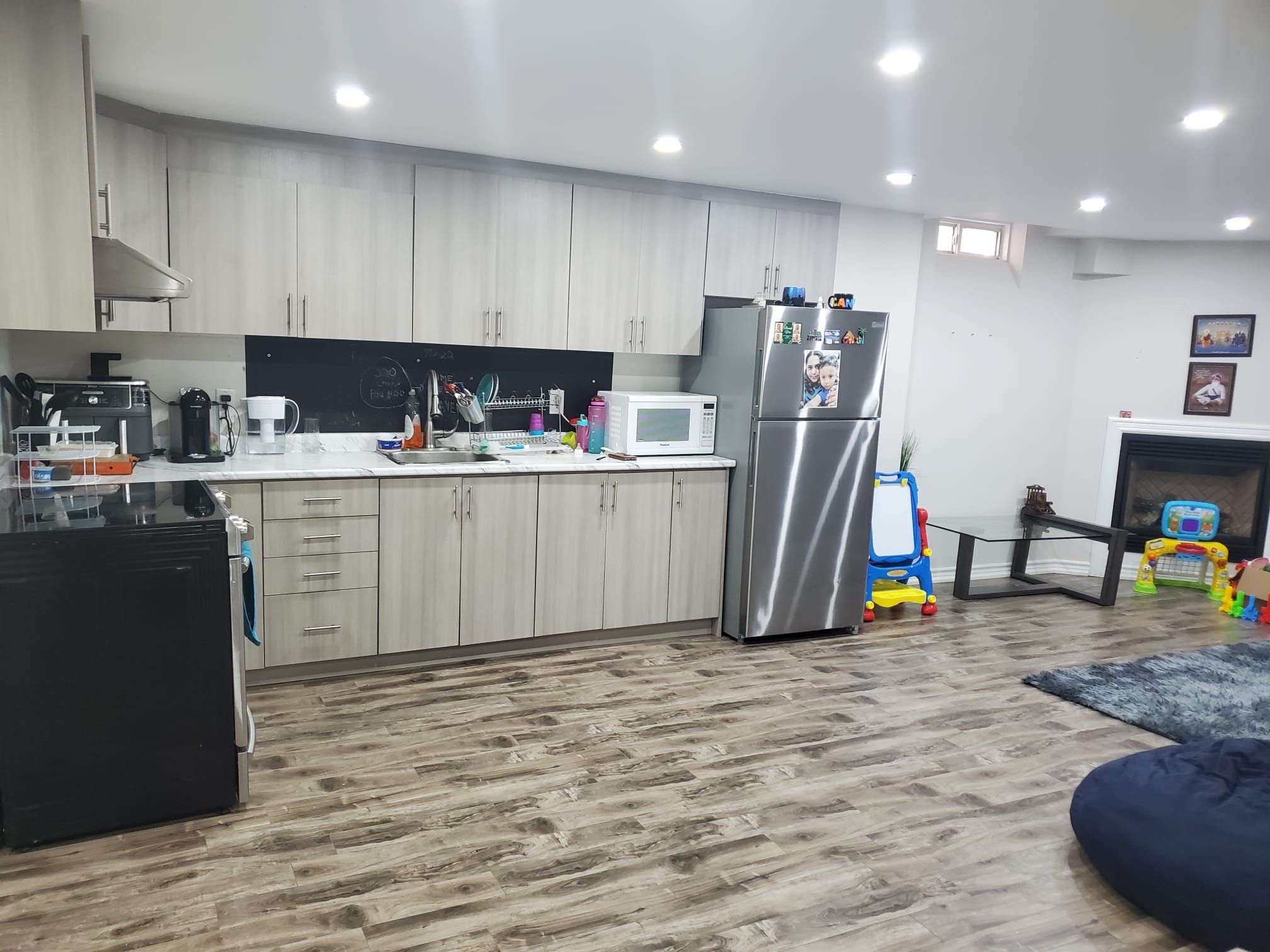 Luxurious 2,350 sq. Ft. 3+1 bedroom home on premium corner lot in south hill, boltonbeautifully appointed and move-in ready, this bright and spacious 3+1 bedroom, 3. 5 bath residence offers elegant living in a highly sought-after family neighborhood. A grand double-door entry opens to a stunning living room featuring soaring ceilings extending to the roofline and a striking designer electric light fixture, creating a dramatic first impression. Separate living room, dining room & family room. The home showcases hardwood flooring throughout and a seamless open-concept layout. The upgraded eat-in kitchen is equipped with quartz countertops, a large center island, floating display shelves, and quality finishes, ideal for both entertaining and everyday living. The primary suite offers double-door entry, a walk-in closet, and a tastefully updated 4-piece ensuite. Additional highlights include main-floor laundry with direct garage access. Situated on a large premium corner lot, the property features a separate entrance to a fully finished basement with second kitchen, ideal for an in-law suite or potential rental income. Enjoy a fully fenced backyard, wood deck, double-door walkout, and impressive open views. An exceptional opportunity offering space, luxury, and versatility in one of bolton's most desirable communities.
