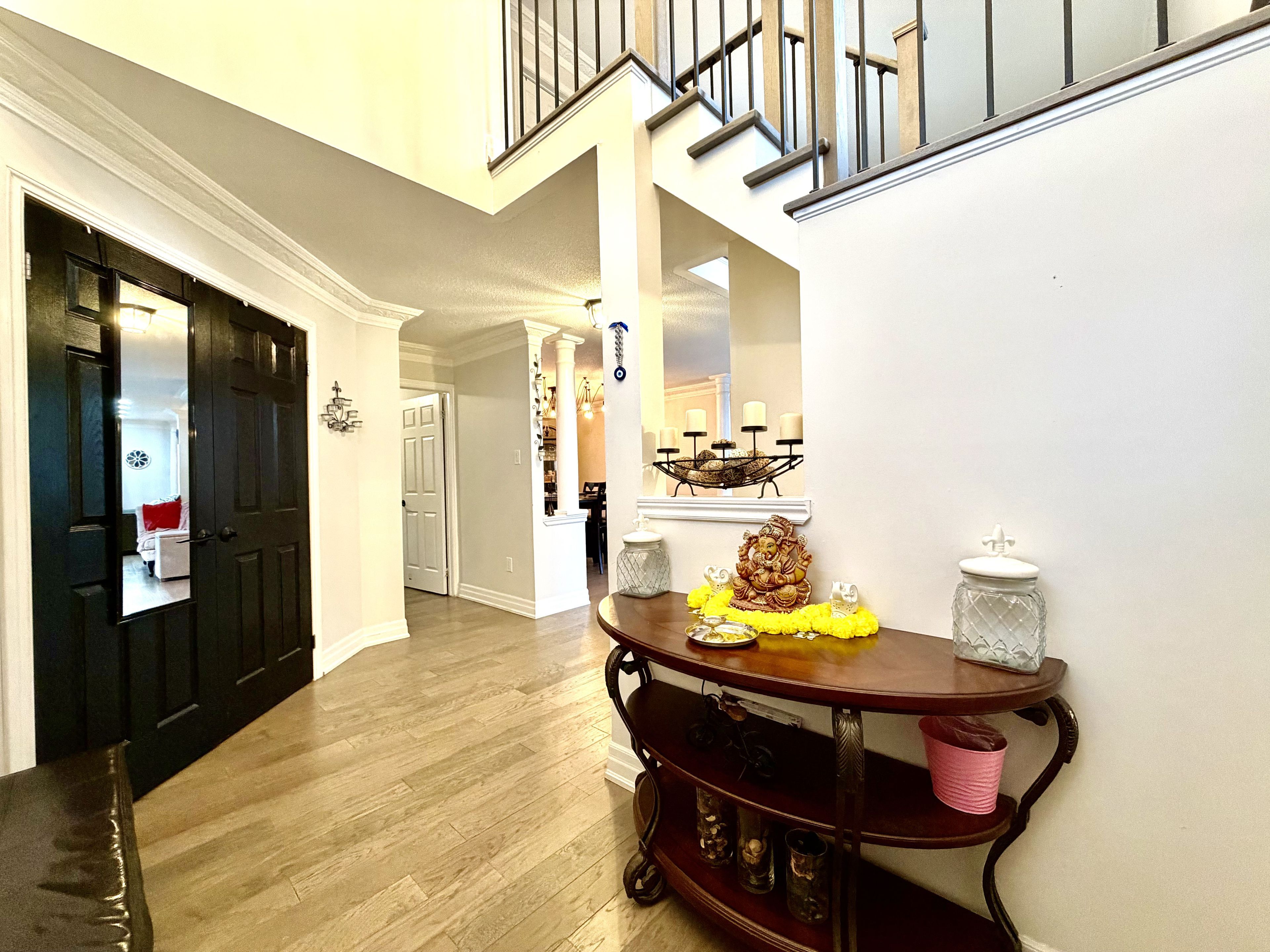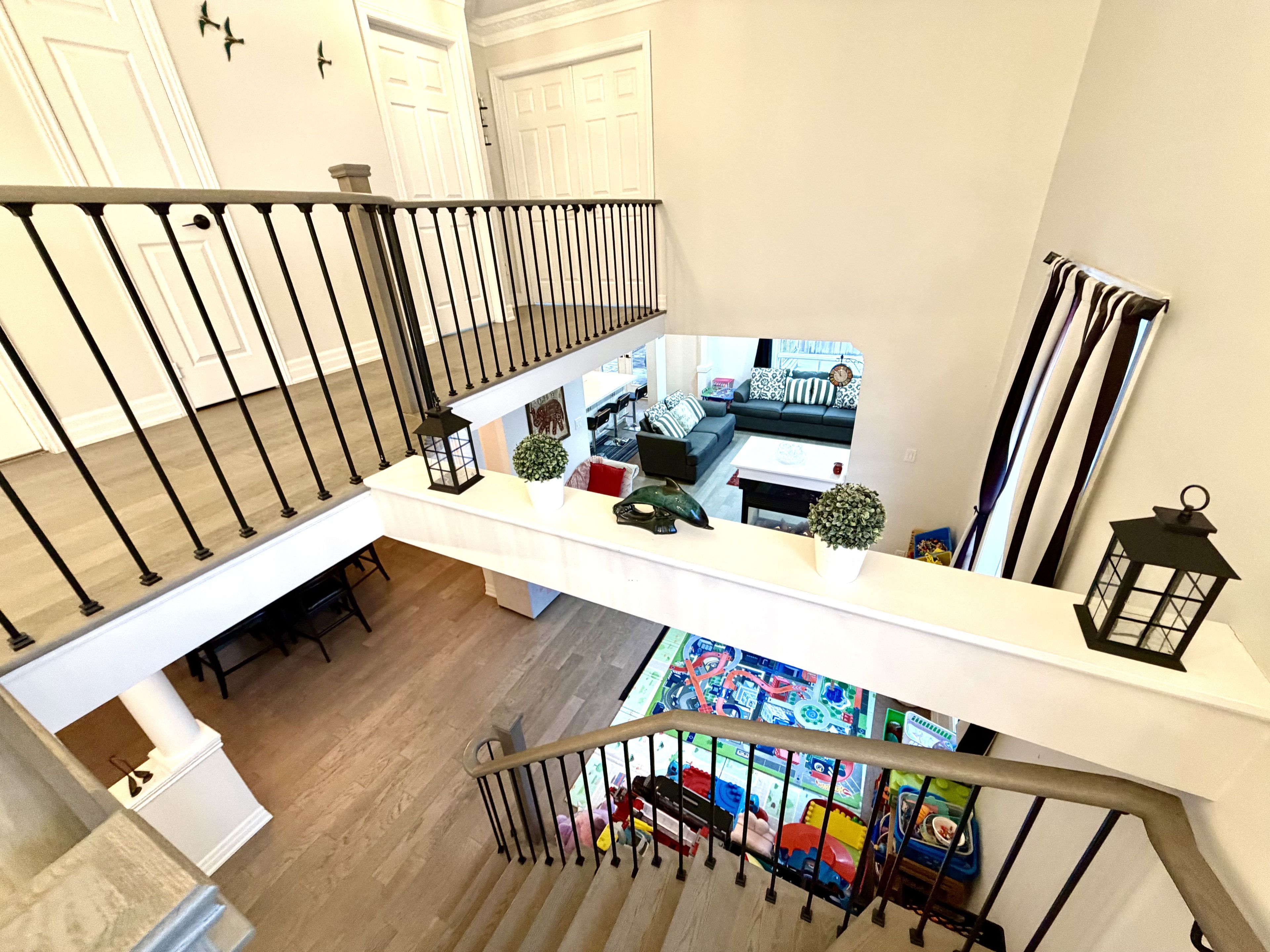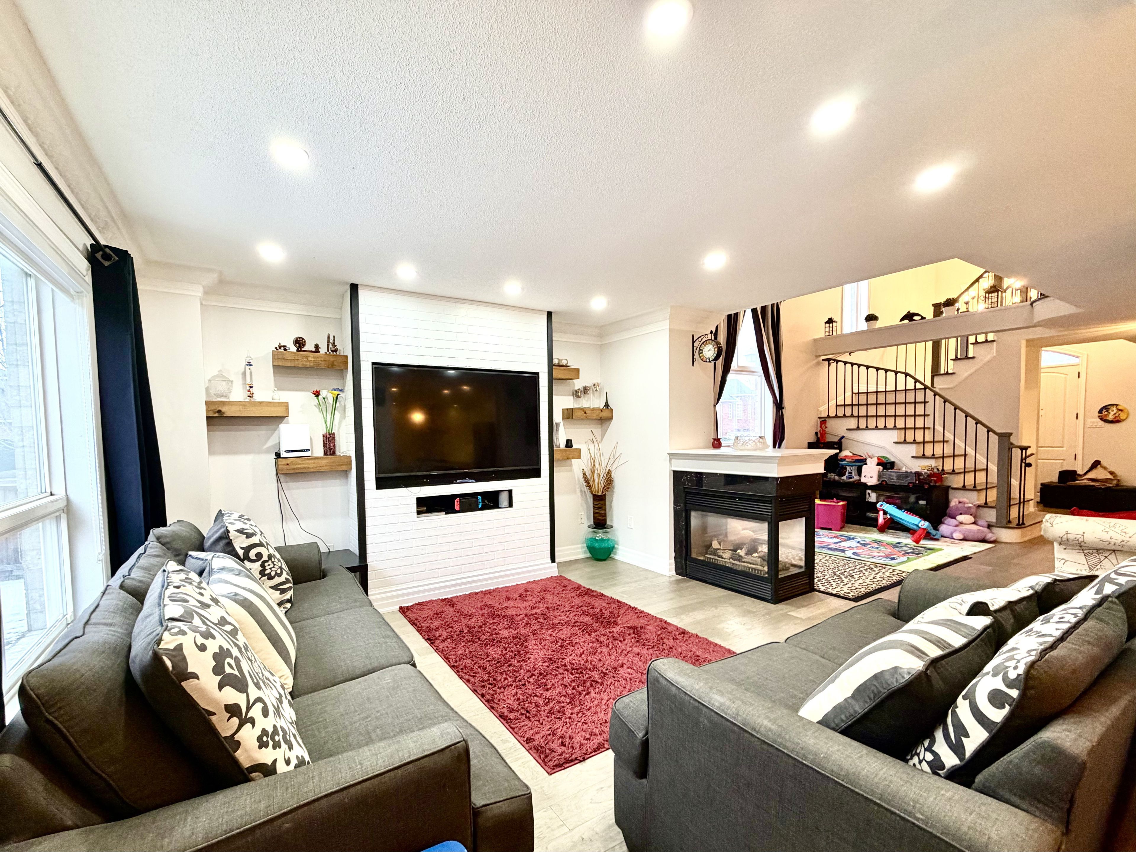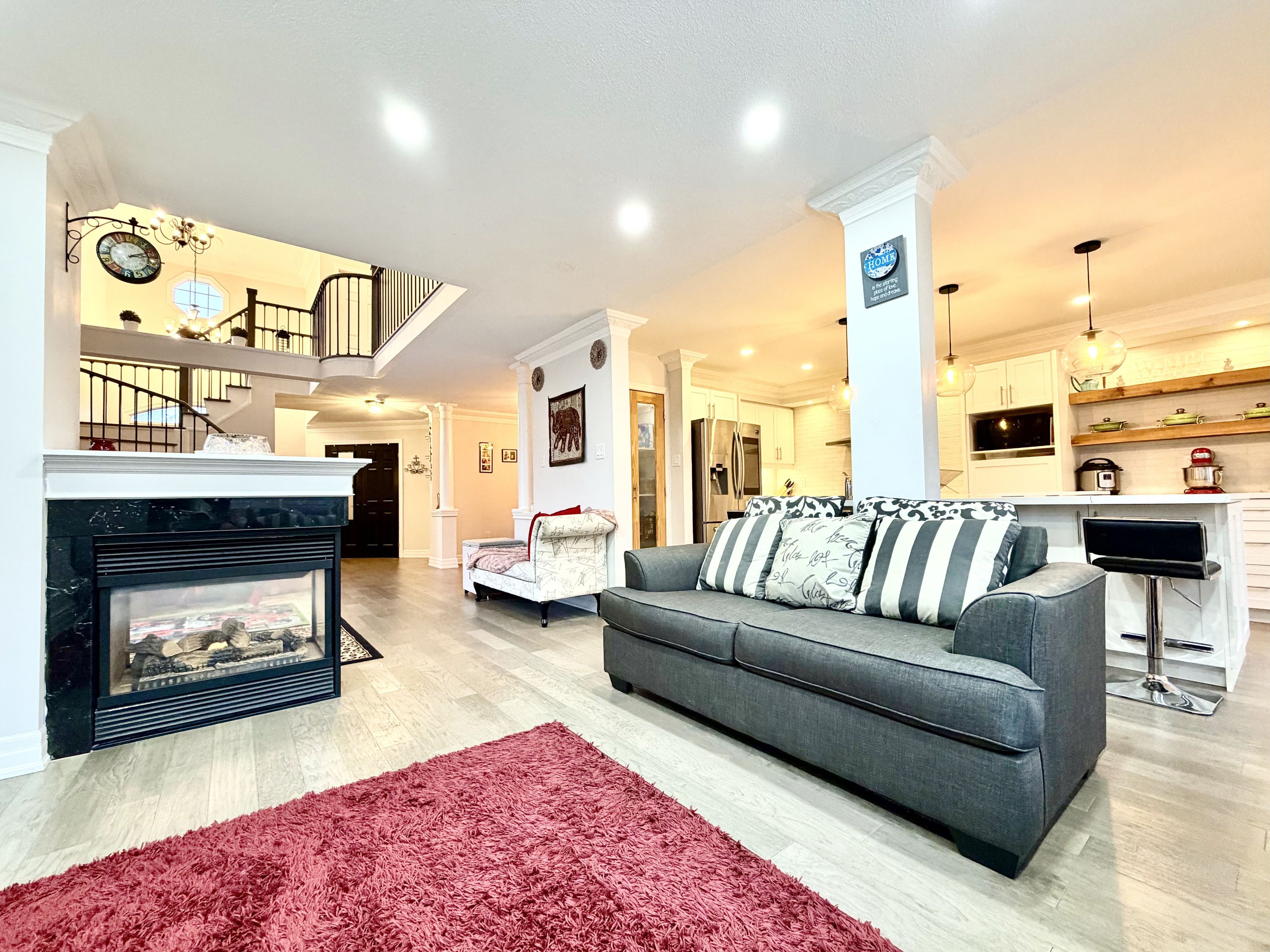 Luxurious 2,350 sq. Ft. 3+1 bedroom home on premium corner lot in south hill, boltonbeautifully appointed and move-in ready, this bright and spacious 3+1 bedroom, 3. 5 bath residence offers elegant living in a highly sought-after family neighborhood. A grand double-door entry opens to a stunning living room featuring soaring ceilings extending to the roofline and a striking designer electric light fixture, creating a dramatic first impression. Separate living room, dining room & family room. The home showcases hardwood flooring throughout and a seamless open-concept layout. The upgraded eat-in kitchen is equipped with quartz countertops, a large center island, floating display shelves, and quality finishes, ideal for both entertaining and everyday living. The primary suite offers double-door entry, a walk-in closet, and a tastefully updated 4-piece ensuite. Additional highlights include main-floor laundry with direct garage access. Situated on a large premium corner lot, the property features a separate entrance to a fully finished basement with second kitchen, ideal for an in-law suite or potential rental income. Enjoy a fully fenced backyard, wood deck, double-door walkout, and impressive open views. An exceptional opportunity offering space, luxury, and versatility in one of bolton's most desirable communities. Tesla charger in the garage is included. As per sellers the corner side walk snow removal is done by the city