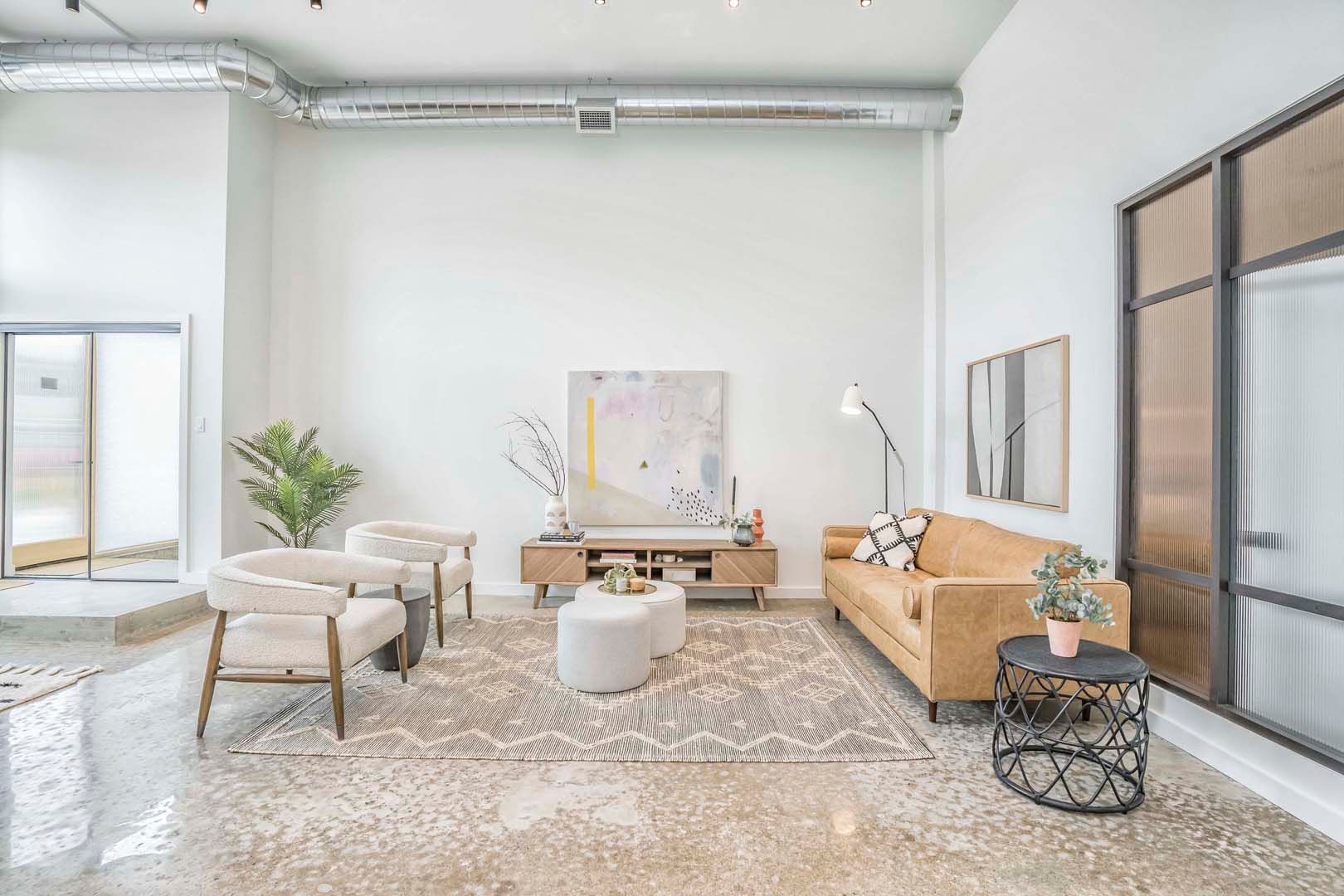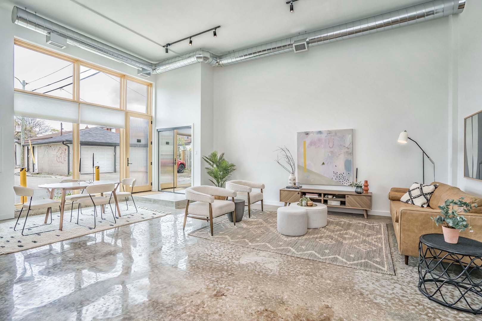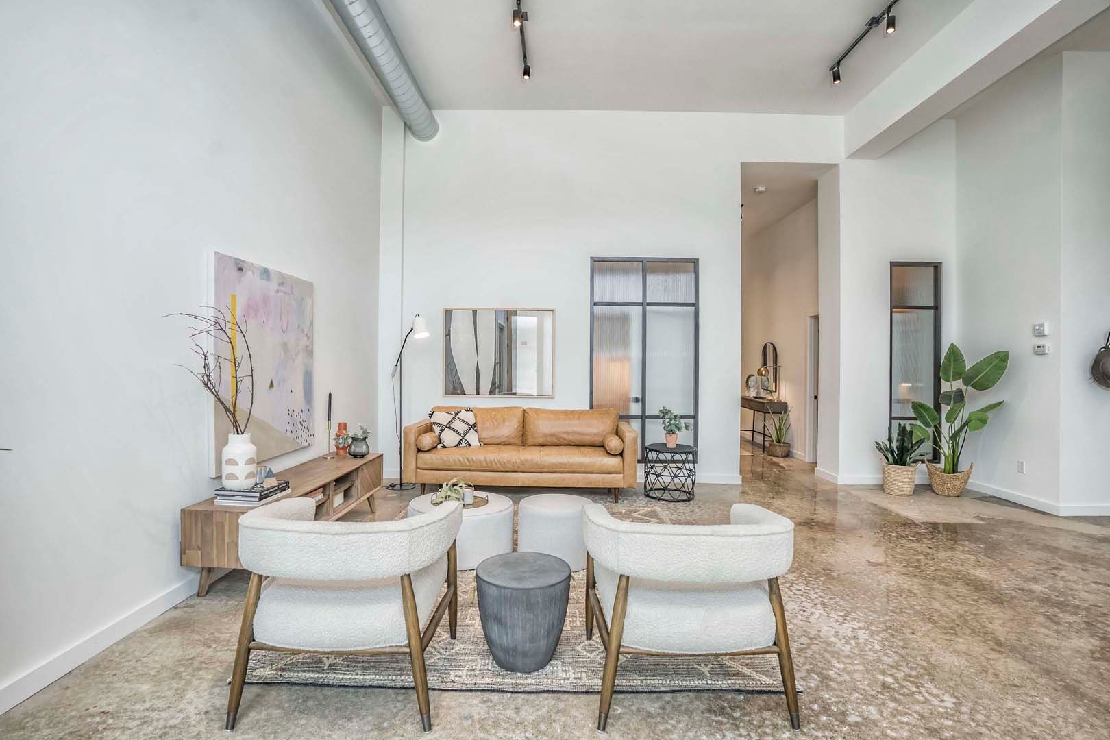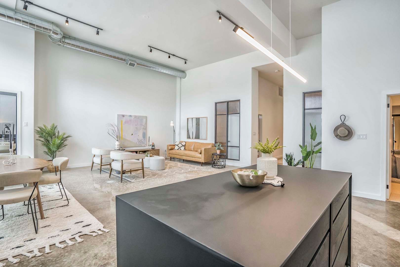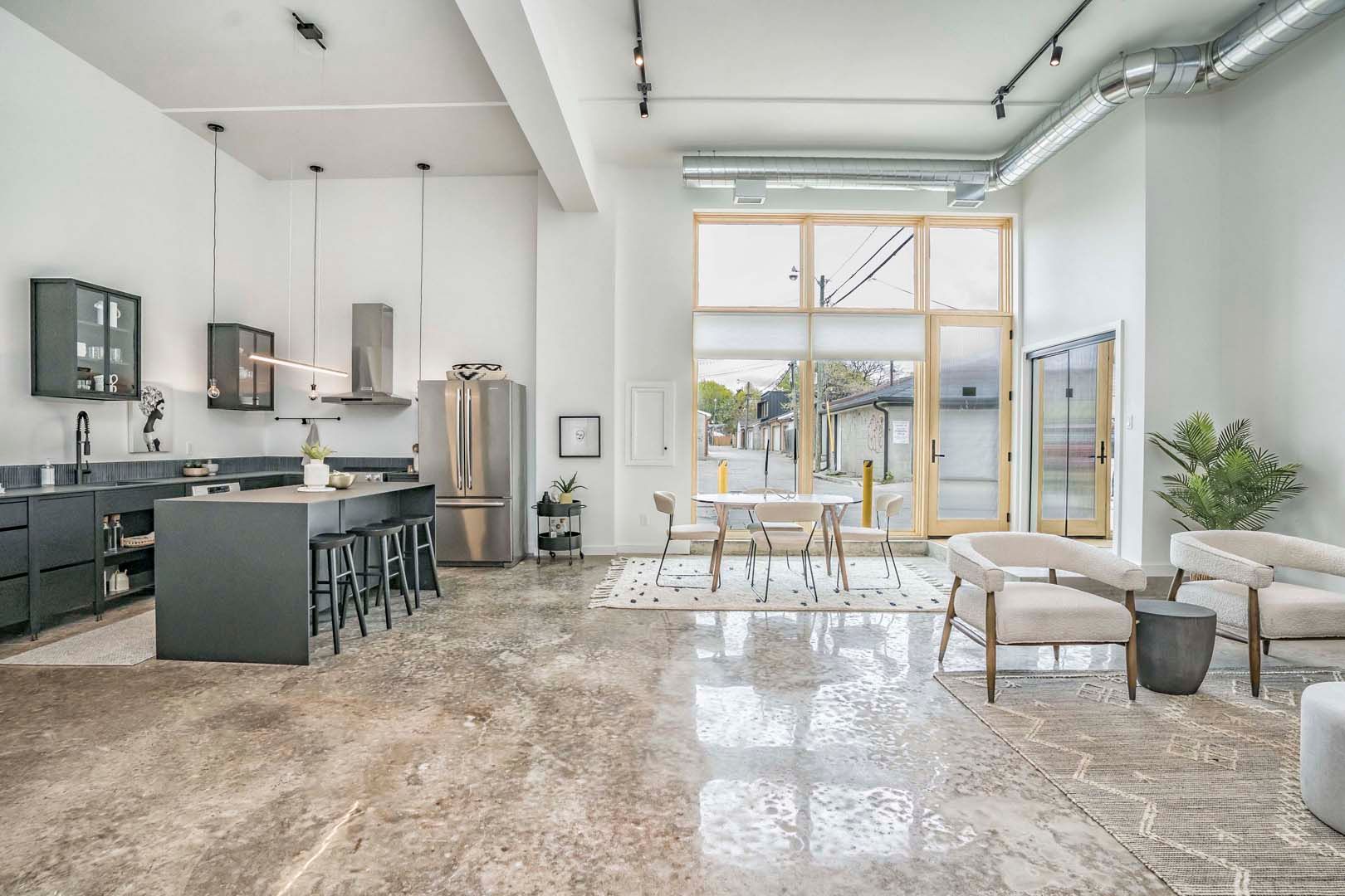 • Spacious 2,000+ sq ft loft with 14-foot ceilings and polished concrete floors.