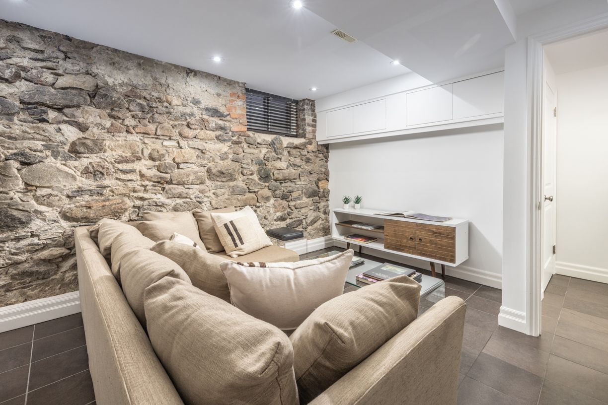 • Heated lower level with recreation room and humidified wine cellar.