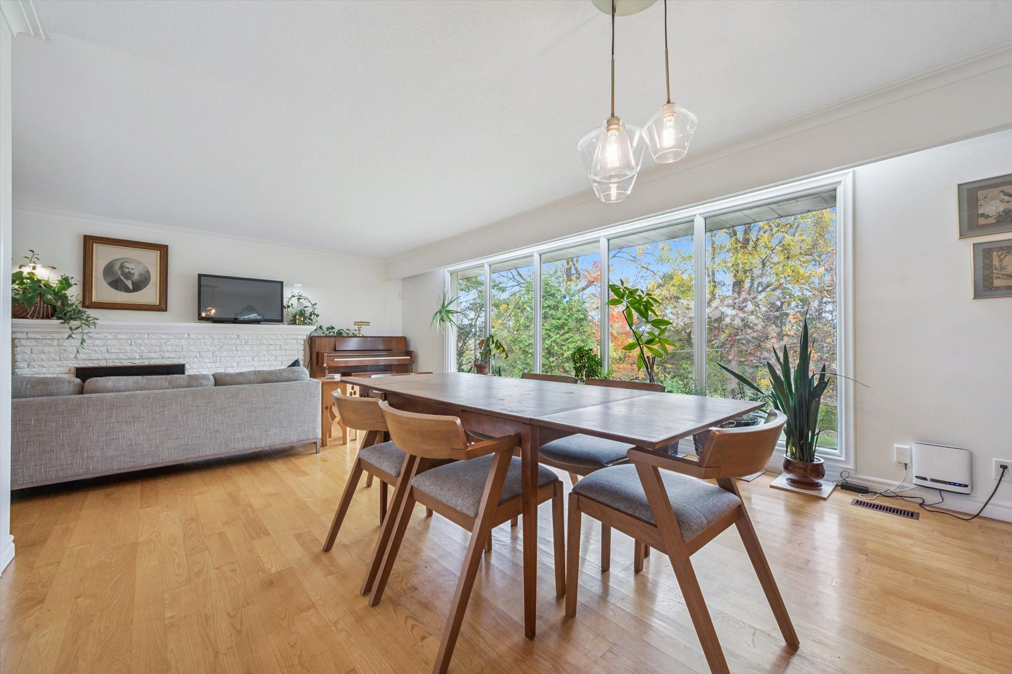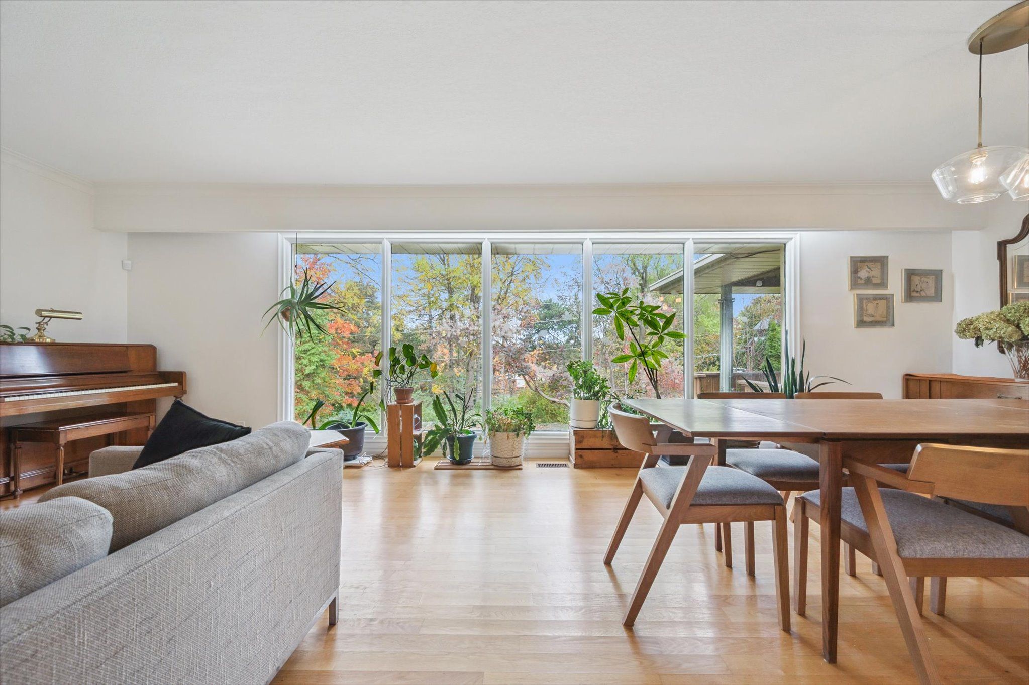 Welcome to this spacious and truly unique bungalow in guelph's highly desirable old university neighbourhood. This property offers something rare - two homes in one, all above grade. Step through the front door into the main residence, featuring three bedrooms on the main floor and a versatile bonus room that can serve as a playroom, mudroom, or home office, conveniently located between the kitchen and the double-car garage. Original hardwood floors flow through most of the main level, complementing the large kitchen, expansive dining area, and a bright living room with floor-to-ceiling windows. The main home also includes a full basement, offering two additional bedrooms, another full bathroom, laundry facilities, and ample storage space. Now, let's talk about the second home. Added in 2002, this thoughtful addition created a beautiful main-floor apartment - perfect for in-laws, guests, or rental income. This bright, open-concept suite features one bedroom, a full bathroom, a spacious living and dining area with a gas fireplace, custom built-ins by olympic kitchens, a full kitchen, and its own laundry. Both homes share a lovely back deck overlooking a serene canopy of trees and established perennials. The backyard also features a powered and drywalled shed - ideal for a workshop or studio. With five bedrooms in the main house plus a one-bedroom suite, this property offers exceptional flexibility as a multi-generational home, investment property, or home with a dedicated office space. Parking is abundant, with space for two vehicles in the garage and six or more in the driveway. A rare opportunity in one of guelph's most sought-after neighbourhoods - this is a property you'll want to see in person.