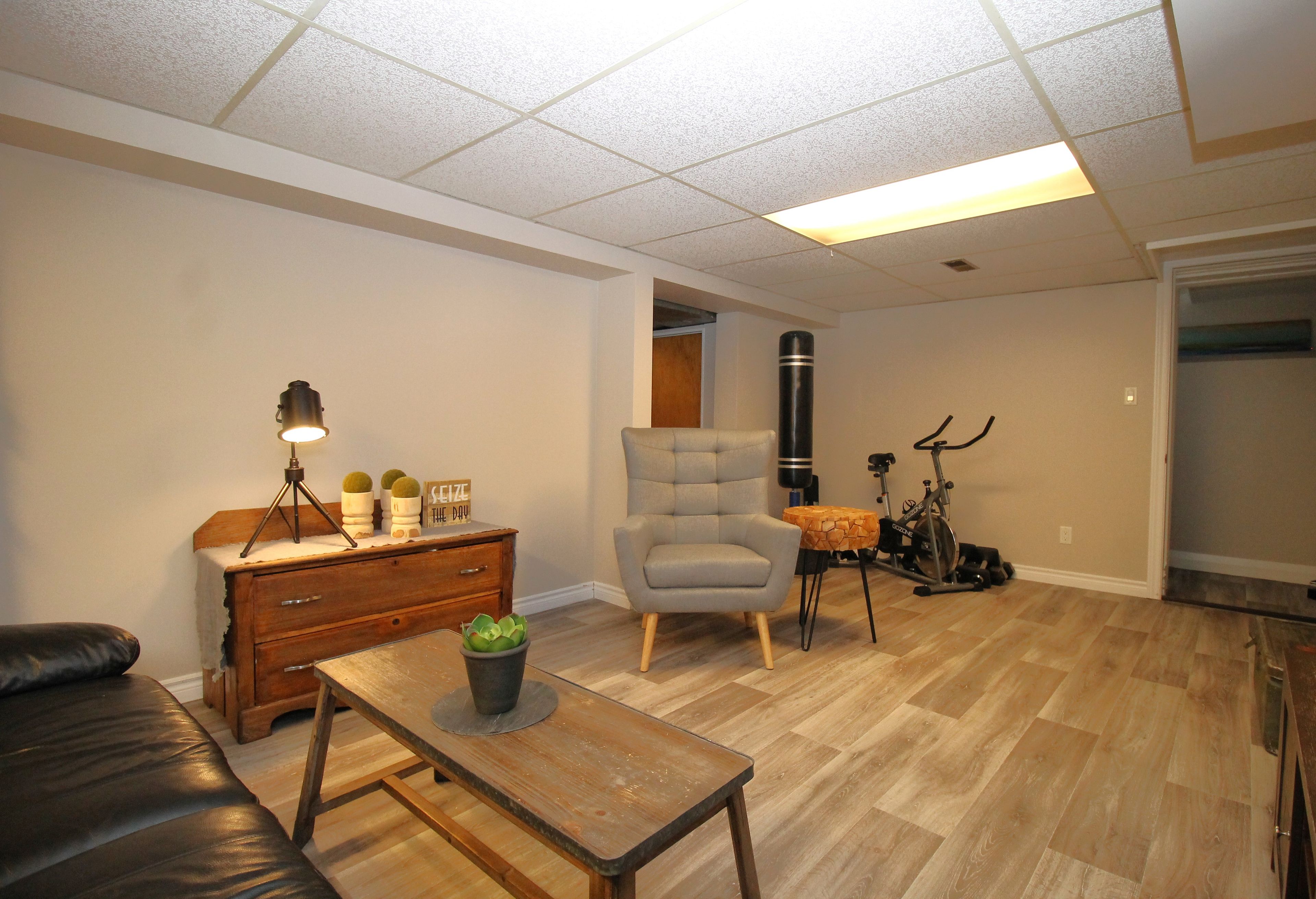• Separate entrance leads to a great room for extra living or workout space.