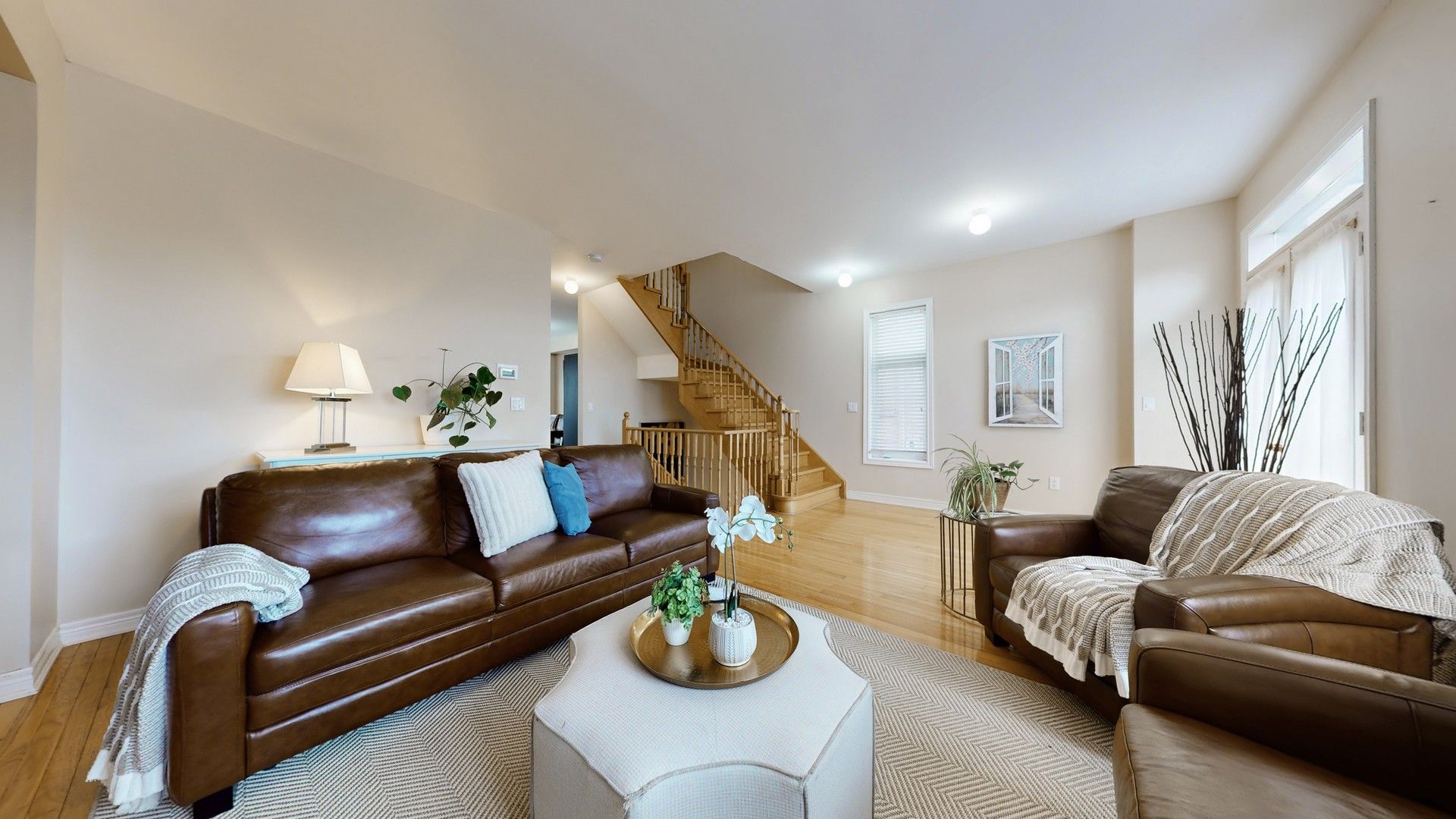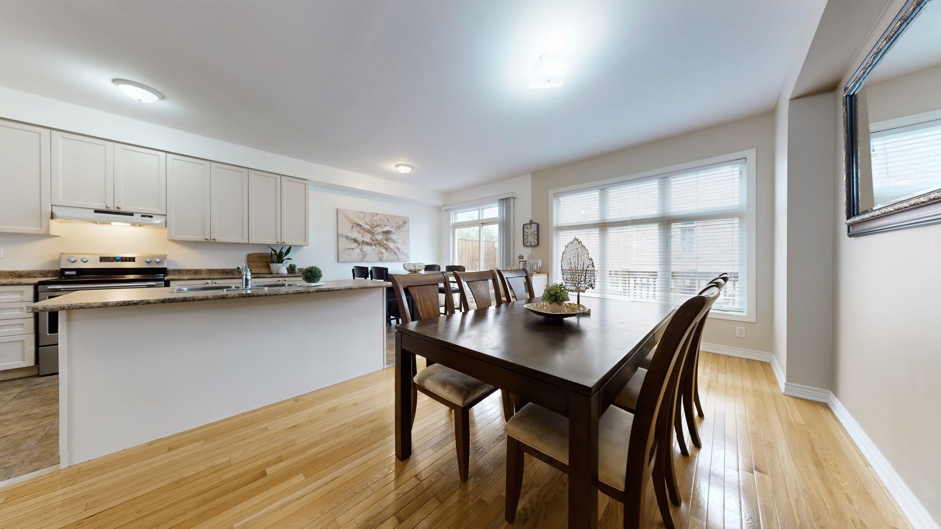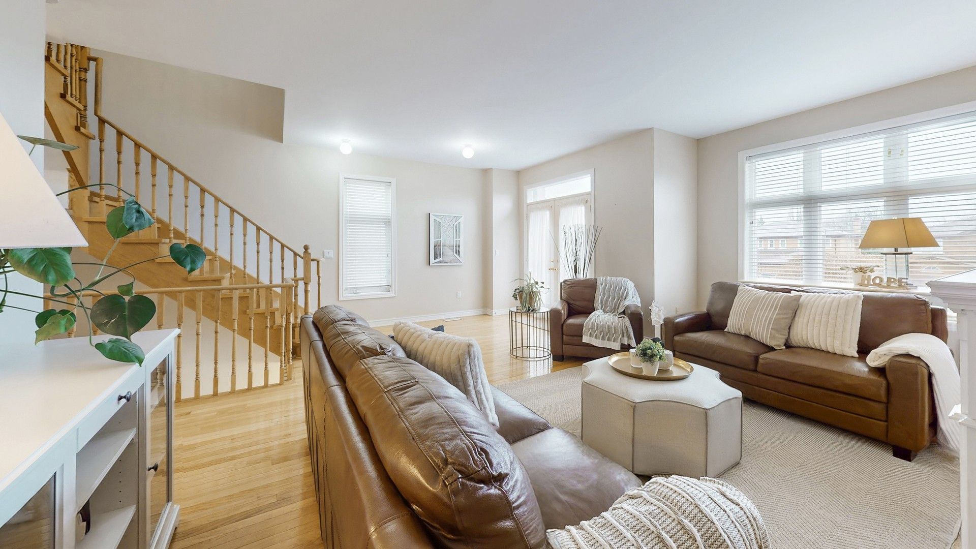 Welcome to this beautifully designed semi-detached three-storey spacious freehold home. Approximately 2400 square feet of thoughtfully planned layout, plus a fully finished basement. Step inside and discover a bright and unique layout, featuring a open concept kitchen, breakfast area, and large dining room area, as well as a relaxing living room area with cozy gas fireplace and walkout to a balcony-perfect for morning coffee or evening relaxation. The main floor displays a beautiful staircase and french doors leads you into the family room which offers a walkout to a patio and sundeck, perfect for outdoor enjoyment. Convenience meets functionality with main floor laundry and 2 piece powder room. The finished basement adds even more versatile living space, featuring a combined gym and recreation area. Located just steps to transit, shops, and all essential amenities.