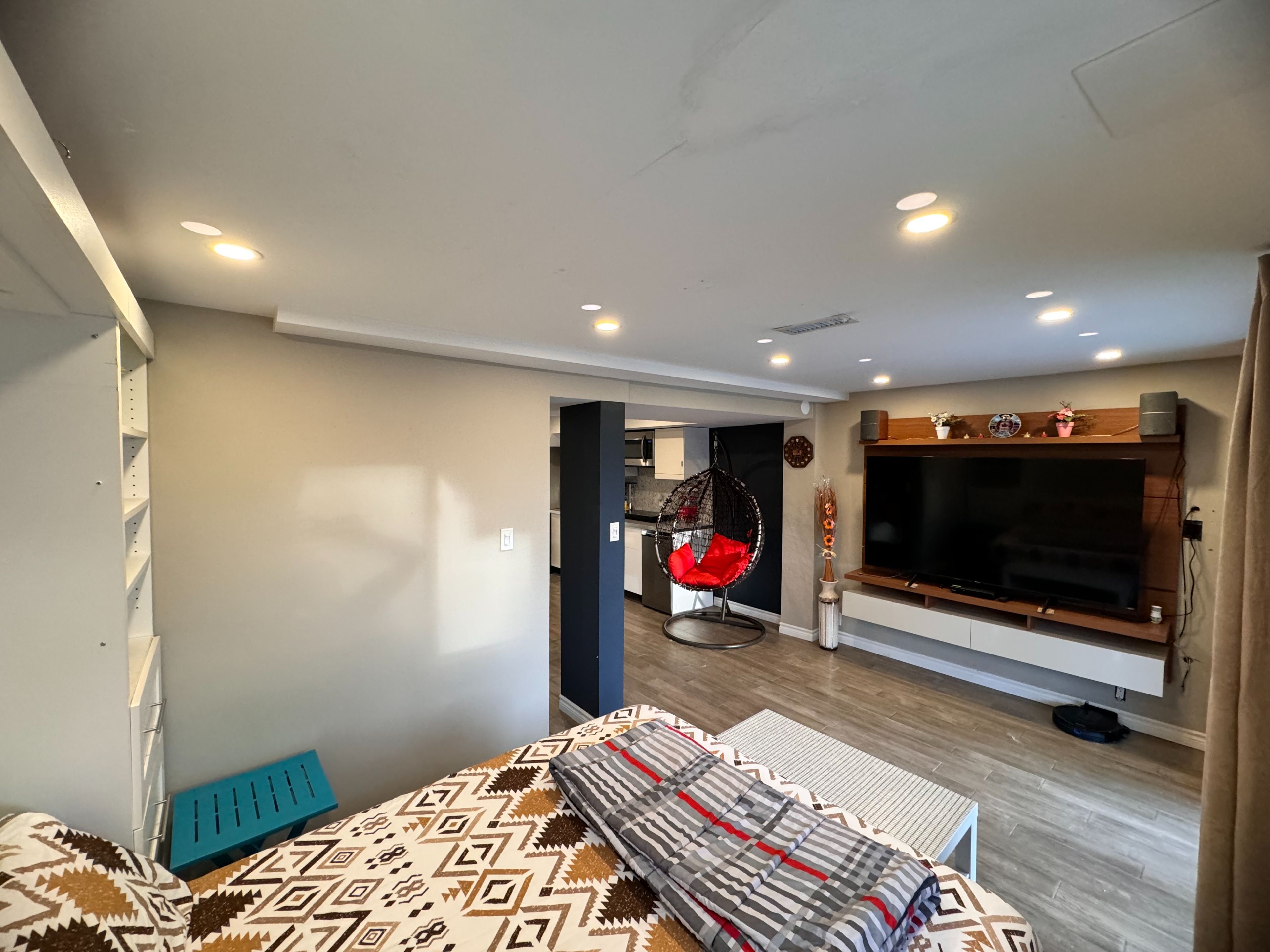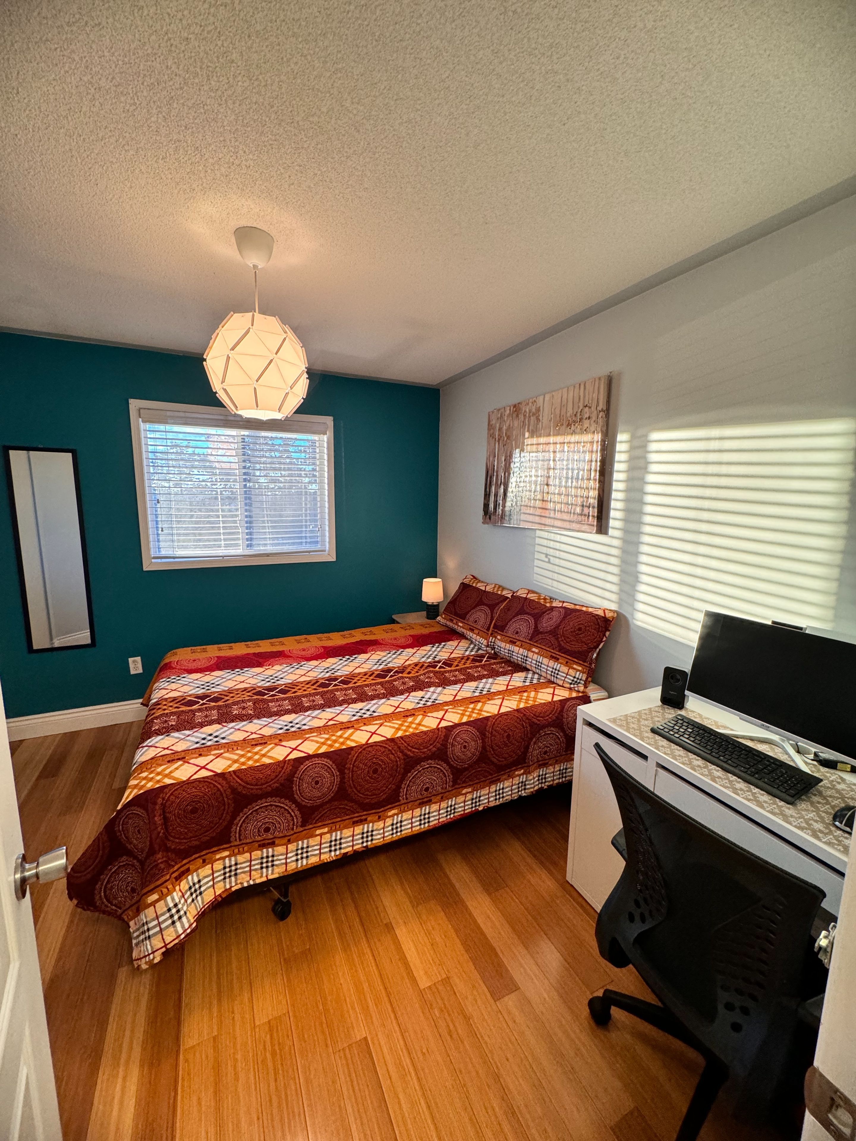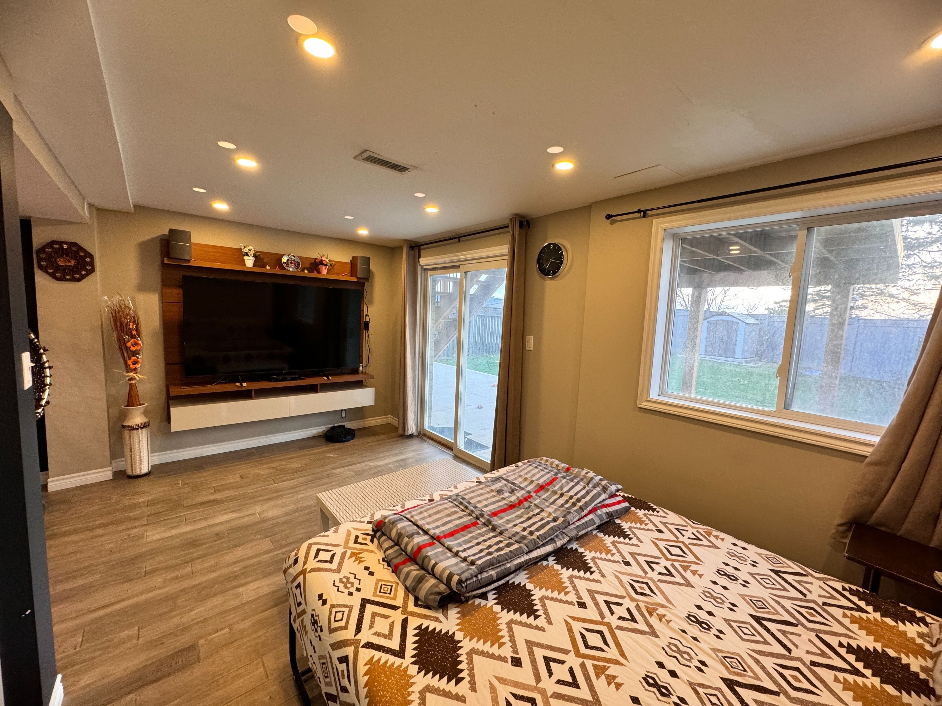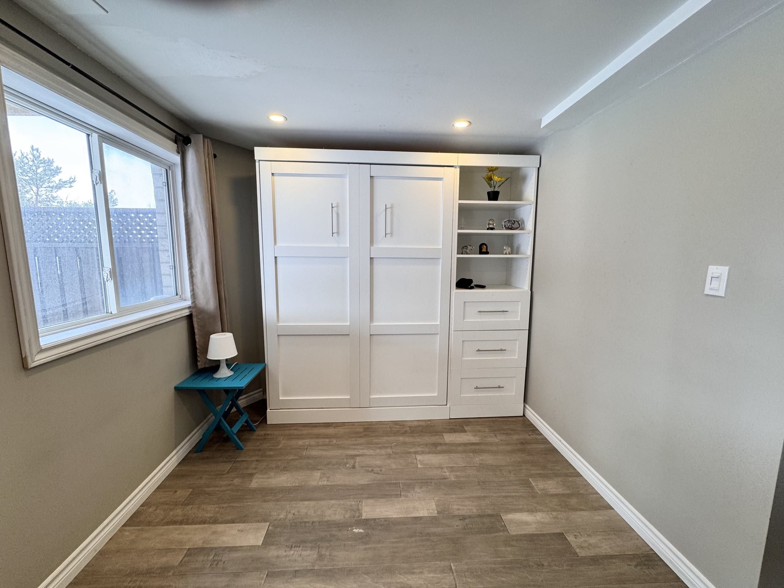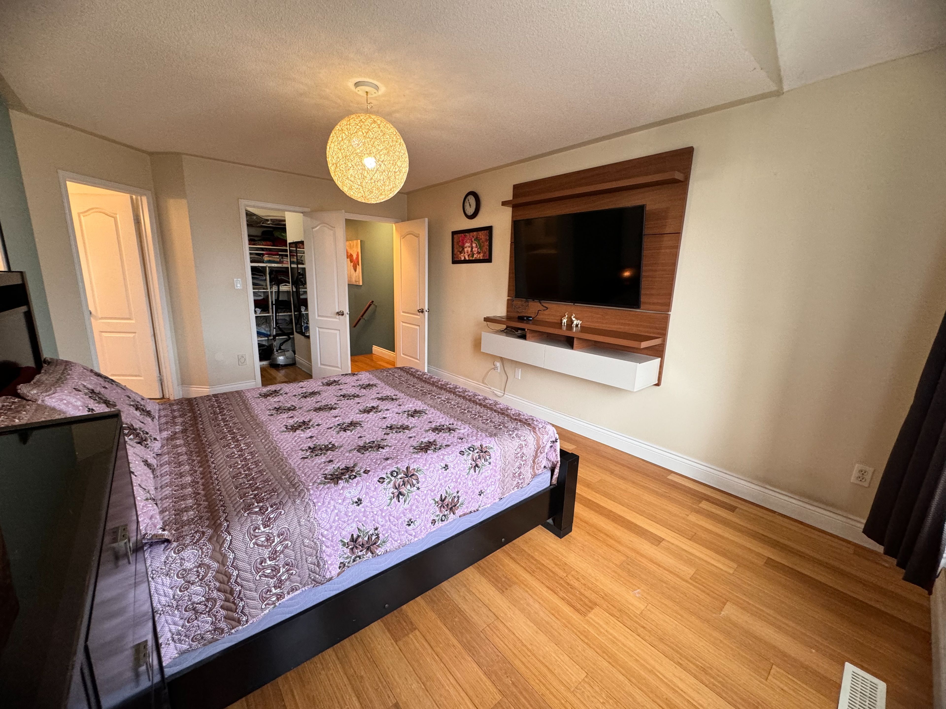 Welcome to semi-detached home, with rental potential, fully finished walk-out basement, separate entrance, with murphy bed, media wall unit, separate kitchen and 3 piece bath. This home features, spacious 9-foot sun filled living/dining room with pot lights & gas fireplace adds warmth to the living space. Wooden flooring, "no carpets throughout the house". Huge backyard, backing on to ravine, walkout from main level to a large 10' x 10' deck, concrete pad from front to rear of backyard and garden shed on concrete pad. 2021 built driveway provides 2 car parking plus full 1 car attached garage. 2023 owned hot water tank, 2024 stainless steel dishwasher and brand new s/s refrigerator (2025). Painted garage floor & fence, landscaped front-yard & tinted windows in main & 2nd level. Walking distance to library and park. This home is move-in-ready with lots of inclusion listed in the 'features sheet'. Inclusions: all appliances incl., s/s fridge, s/s stove, s/s dishwasher, washer & dryer, window coverings & elfs, pergola on deck; hwt- owned. Main level: 2 window cabinets, tv wall unit; 4 wall cubes; kitchen: pantry cupboard with bench; master-bed: tv wall unit; basement: b/i murphy bed unit, tv wall unit, 1 mini fridge, electric cooktop, microwave in bsmt; 4 door display unit in garage.