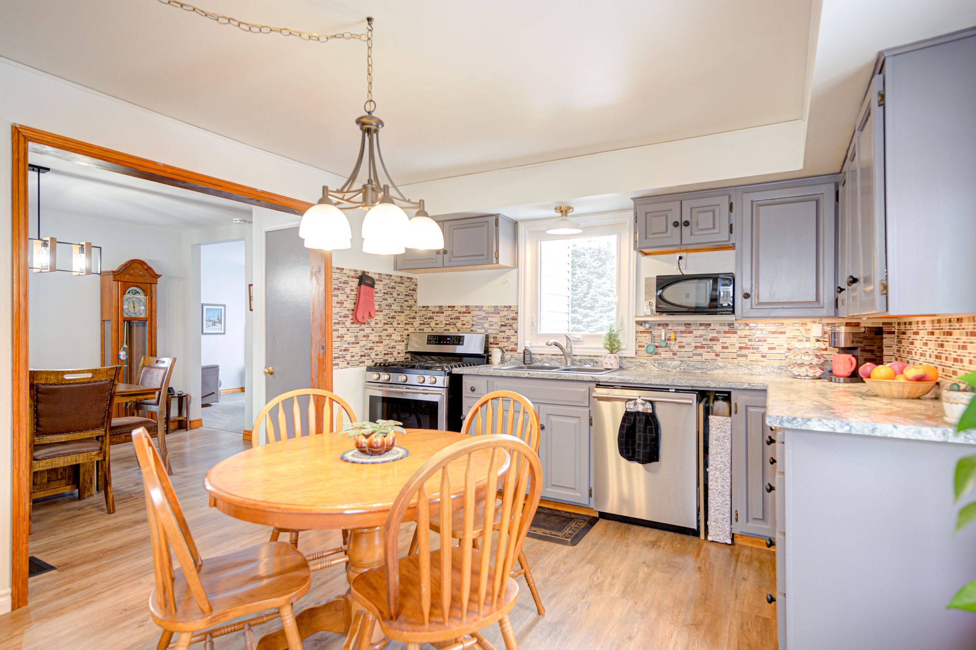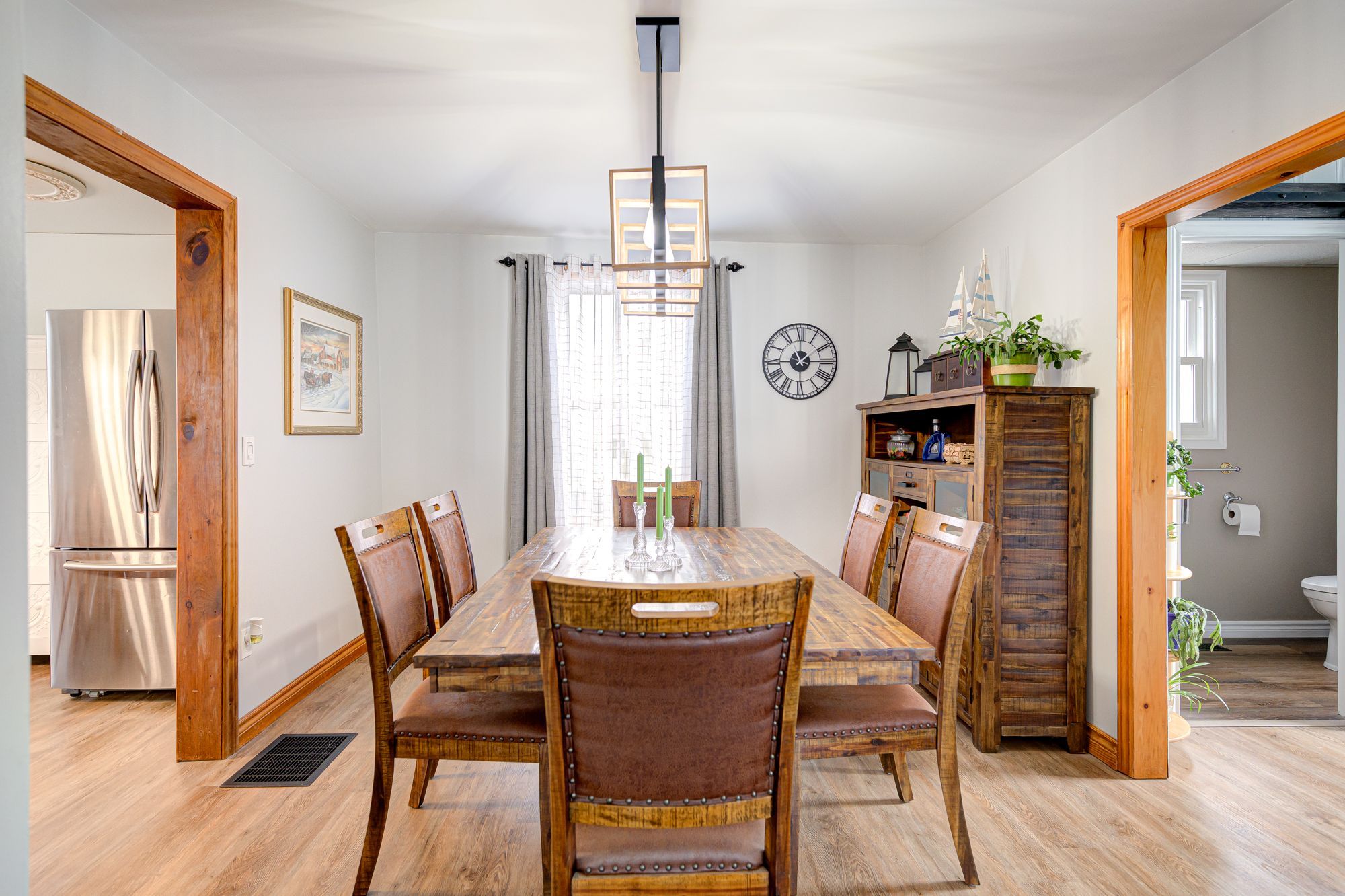 Welcome to 36 huron street, a beautifully updated home nestled in the charming community of seaforth, on. Potential exists for a third bedroom on the main level. This meticulous maintained home offers a perfect blend of modern updates and timeless character, ideal for first-time buyers, downsizers, or anyone seeking peaceful small-town living. Situated on a fully fenced lot with beautiful landscaping. The property features recent upgrades including new flooring and air conditioning system installed in 2023, providing both comfort and style. All windows have been recently replaced, complemented by a new side entrance door and a spacious, newly constructed deck, ideal for entertaining or relaxing outdoors. Inside, you'll find a warm and inviting layout with tasteful finishes throughout, making it truly move-in ready. Enjoy the benefits of hydro in the spacious shed. With its quiet location and thoughtful updates, this lovely home offers a rare opportunity to enjoy comfort, convenience, and lasting value in one of huron county's most welcoming communities.