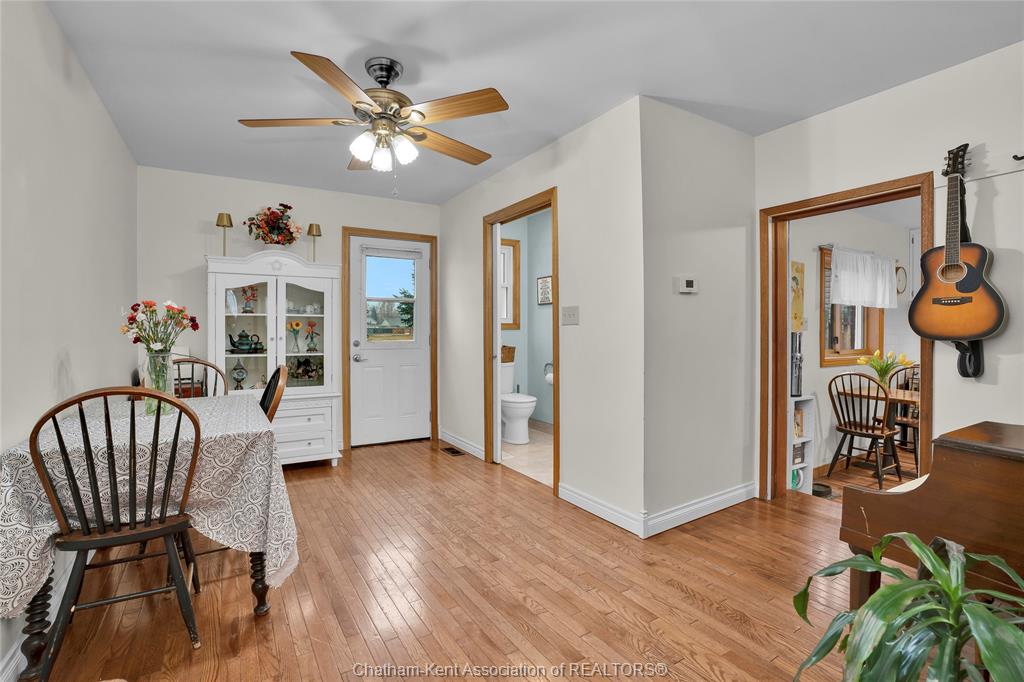 Tucked away on a quiet dead-end street and backing onto greenspace with no rear neighbours, this charming two-storey home offers a rare blend of privacy and convenience in the heart of chatham. Located just one block from ckha and ucc high school, the setting makes daily routines simple while still offering a peaceful place to come home to. Inside, warm hardwood floors run throughout much of the living space, adding character and continuity. The living room centres around a cozy gas fireplace, creating a comfortable gathering space during cooler months. Natural light moves easily through the home, highlighting the charm of a property originally built around 1900 while blending in practical updates that support modern living. The home offers three bedrooms and two bathrooms, providing flexible space for first-time buyers, professionals working from home, or a small household looking for room to grow. Recent improvements include a new kitchen floor and an updated main-level three-piece bathroom, adding functionality while maintaining the home’s character. Step outside to a fully fenced backyard that opens to greenspace behind the property. With no rear neighbours, the yard offers a quiet outdoor setting for relaxing evenings, gardening, or casual gatherings with friends and family. A detached 1. 5-car garage with loft storage above adds valuable space for parking, hobbies, seasonal items, or workshop potential. For buyers seeking privacy, character, and a convenient chatham location close to healthcare, schools, and daily amenities, 36 ingram street offers a comfortable home with practical updates and a peaceful setting.