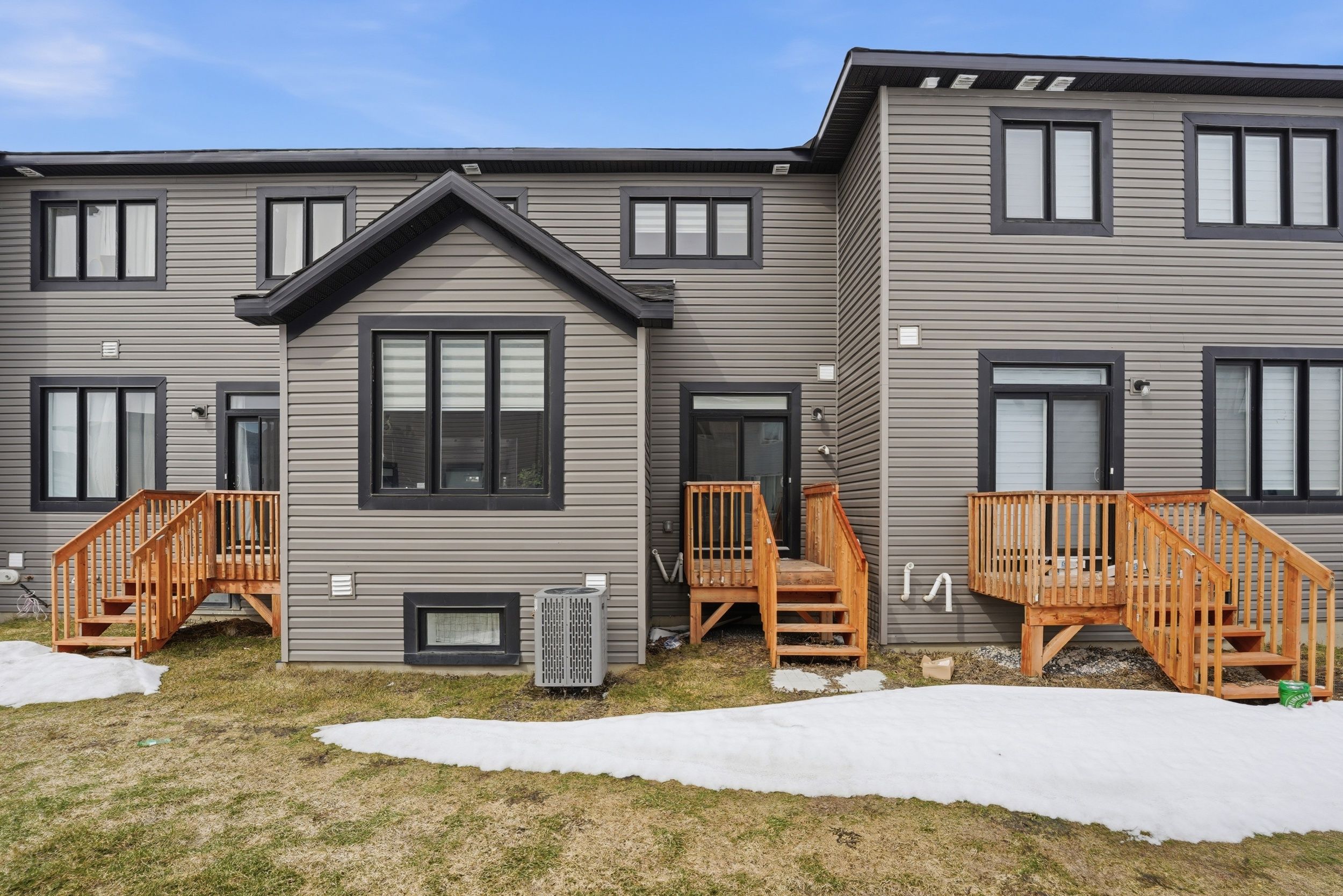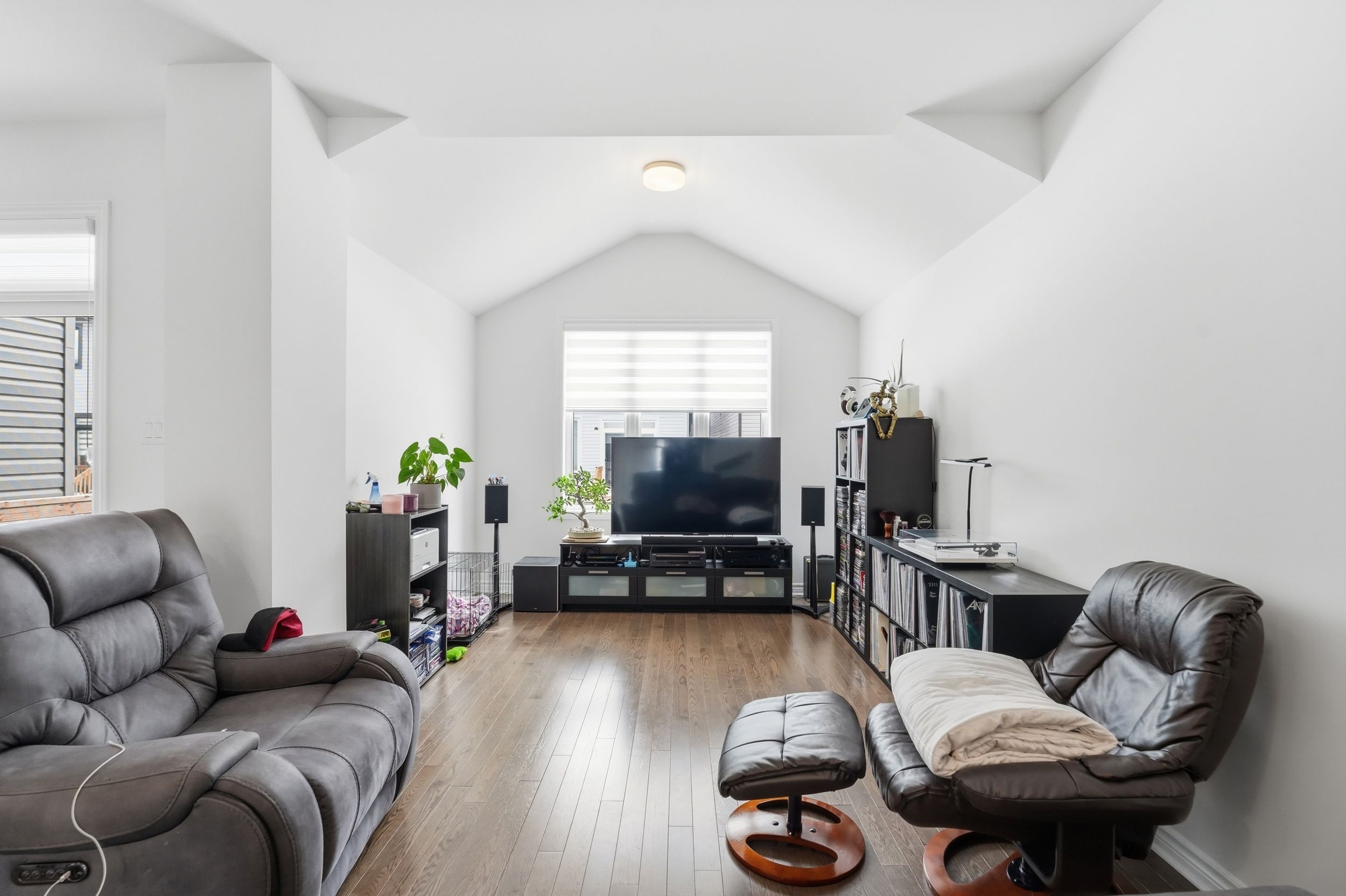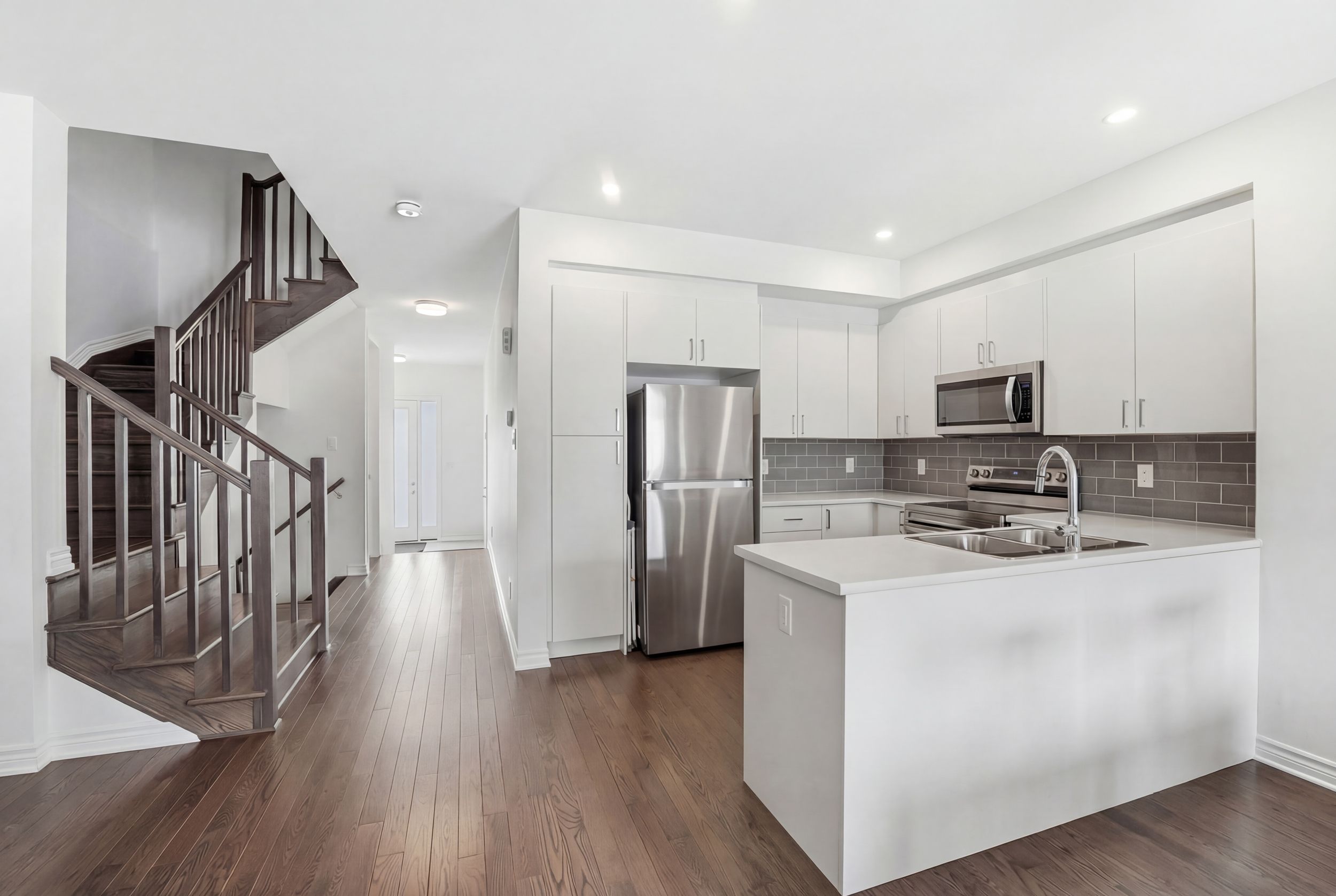Welcome to this almost-new townhome in the highly desirable orleans village, offering over 2,000 sq. Ft. Of beautifully designed living space. This south-facing home is filled with natural light and features impressive arched, high ceilings that create an open and airy feel throughout. The main level boasts oak flooring complemented by 9-foot ceilings. The spacious kitchen features sleek finishes with ss appliances and breakfast nook. Upstairs, you'll find three generously sized bedrooms, with the primary offering two walk-in closets and a full ensuite. Second-level laundry for added convenience. The layout is both functional and family-friendly, offering comfort and privacy for all. The finished basement provides a versatile recreation room-perfect for a home theatre, gym, or additional living space; ample storage. Conveniently located in ottawa east at the western edge of orléans, offering easy access to shopping, dining, schools, transit, and downtown ottawa. Some photos have been virtually altered.