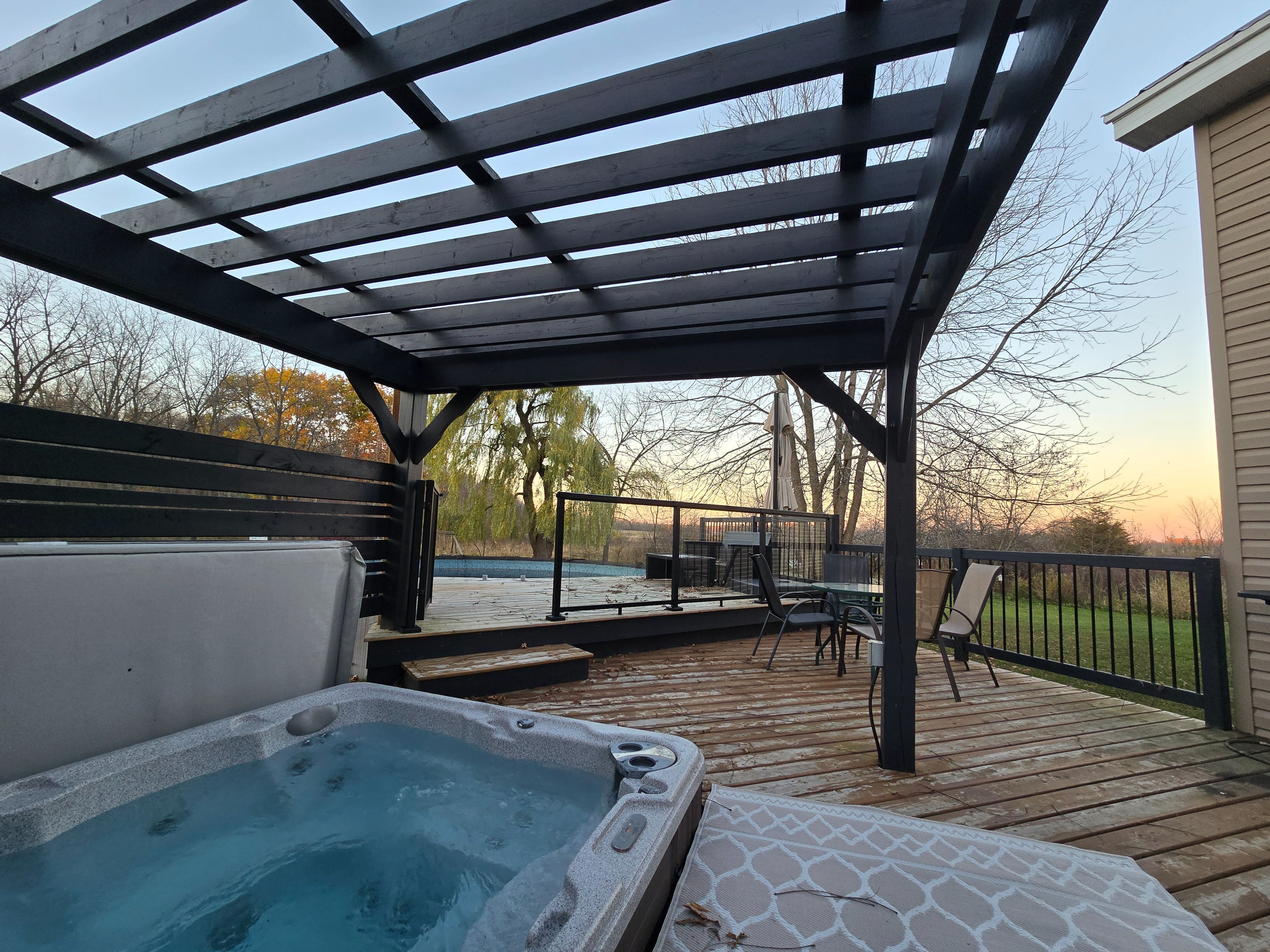 • Backyard oasis featuring a saltwater pool and hot tub for summer fun.
