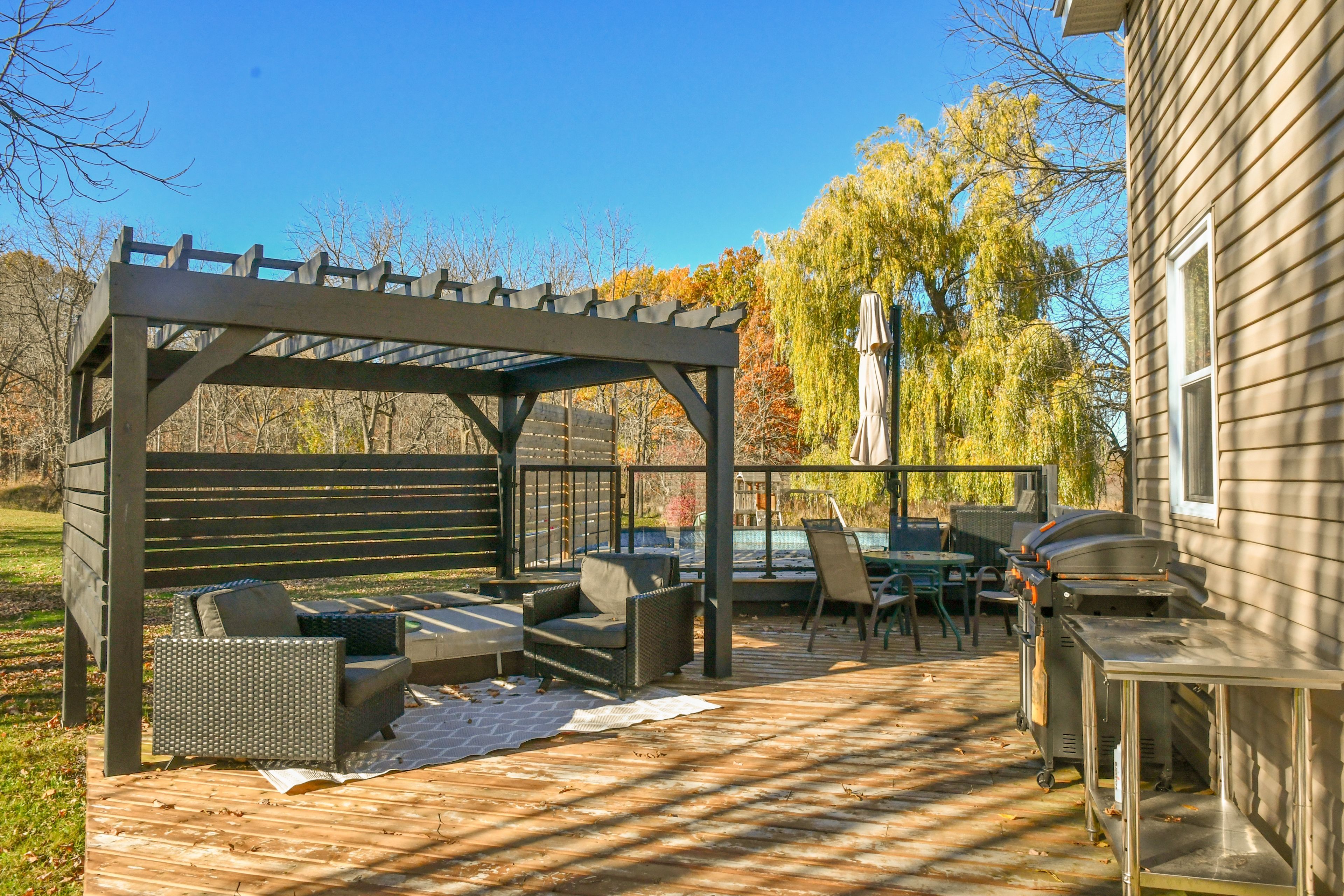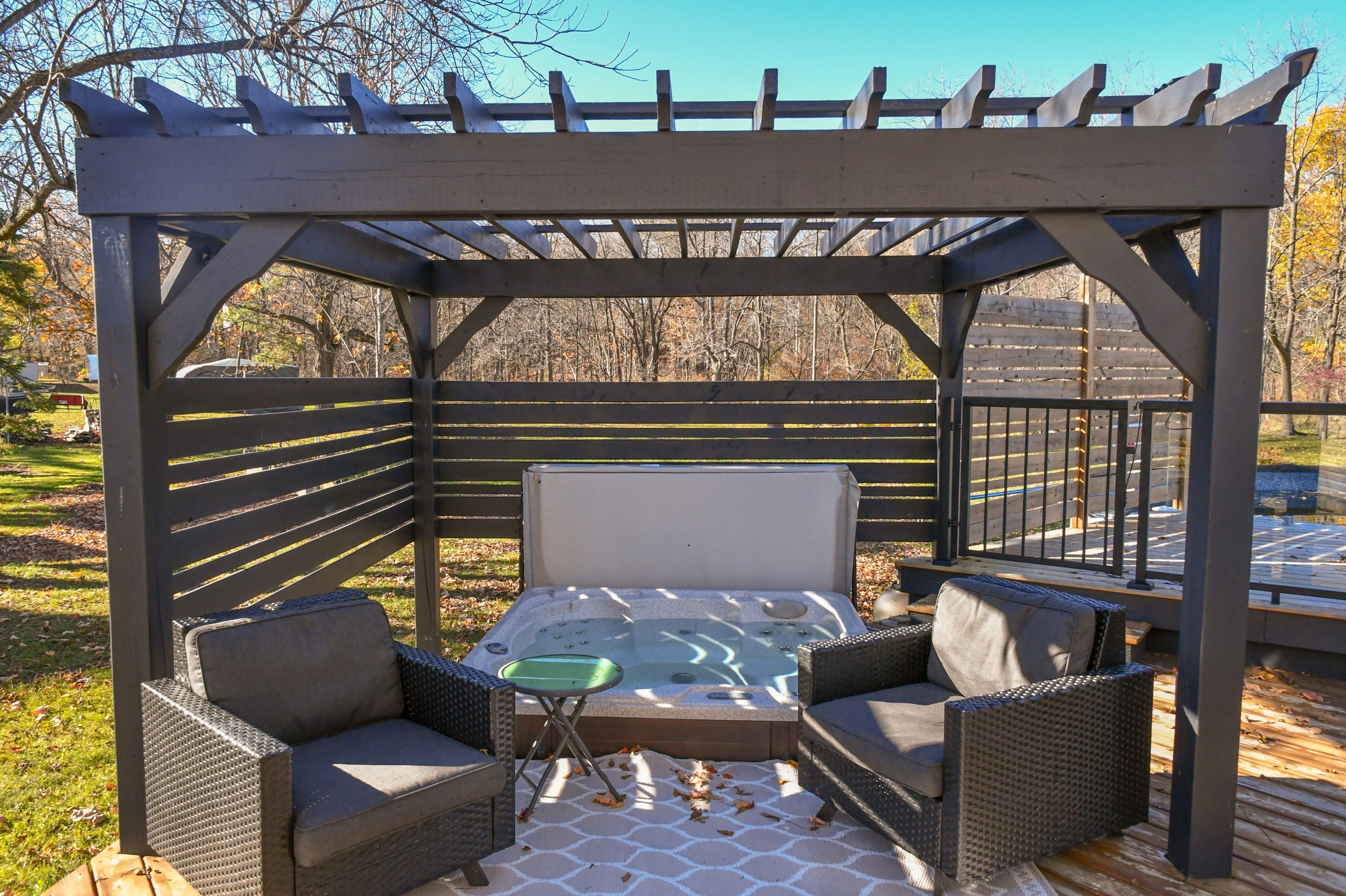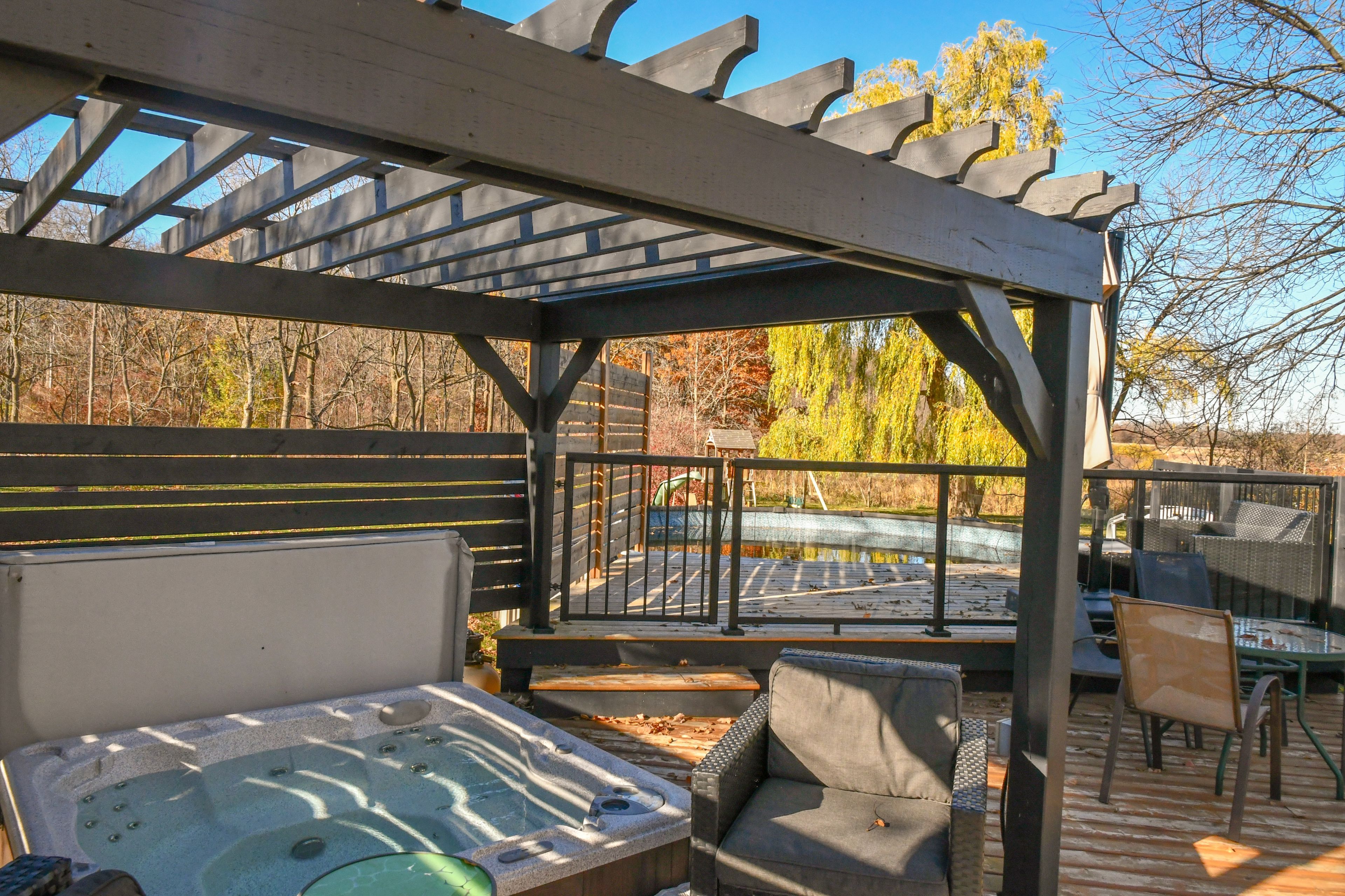 • Backyard oasis with a saltwater pool and hot tub for summer enjoyment.