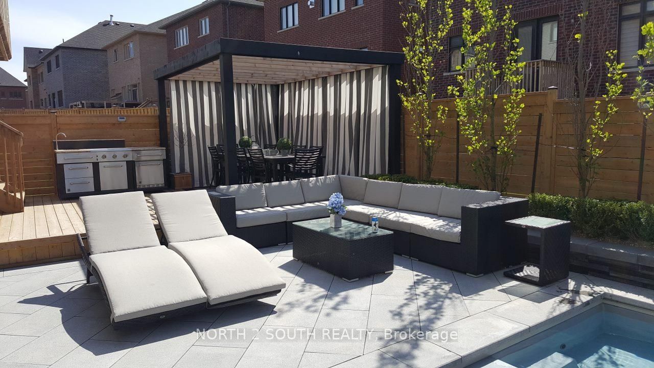 Set on a rare 75' wide lot in prestigious thornhill woods, 36 kylemount court is a fully custom built residence showcasing elevated design, premium finishes, and resort style outdoor living. Boasting over 5386 sqft of total living space. A covered porch double entry doors leads into a home featuring 10' ceilings, 7" white oak hardwood floors, 8' solid doors, glass railings, italian porcelain slab walls, italian mosaic staircase accents, and custom millwork and built-ins throughout. Every space reflects exceptional craftsmanship. The chef's kitchen features quarter cut white oak cabinetry, quartz centre island, marble countertops and backsplash, custom stainless steel hood, appliance garage, double pull out pantry, water filtration, and premium appliances including a wolf dual fuel stove, 72" icon fridge and freezer, and paneled asko dishwasher. A walkout leads to a glass railed deck for seamless entertaining. The family room offers a built-in gas fireplace with custom marble surround, phillip jeffries grasscloth wallpaper, custom wall unit, built-in speakers, and 75" built-in samsung tv. Living, dining, and office spaces feature coffered ceilings, panelled walls, pot lights, and oversized windows. The powder room includes a geberit wall hung toilet. All 4 bedrooms offer hardwood floors, walk-in closets with custom organizers, and private ensuites. The primary suite features a custom built-in wall unit and a spa inspired 5 piece ensuite with freestanding jacuzzi air tub. The finished lower level includes a home theatre with projector and built-in speakers, recreation area, exercise room, nanny suite with ensuite, powder room, storage, and rough-in for future kitchen. The backyard retreat features a salt water pool with built-in hot tub and waterfalls, trex decking, coverstar automatic safety cover, cedar pergola, outdoor speakers, irrigation, and landscape lighting. Complete with surveillance system and 2 car garage, this is a rare luxury offering in thornhill woods.