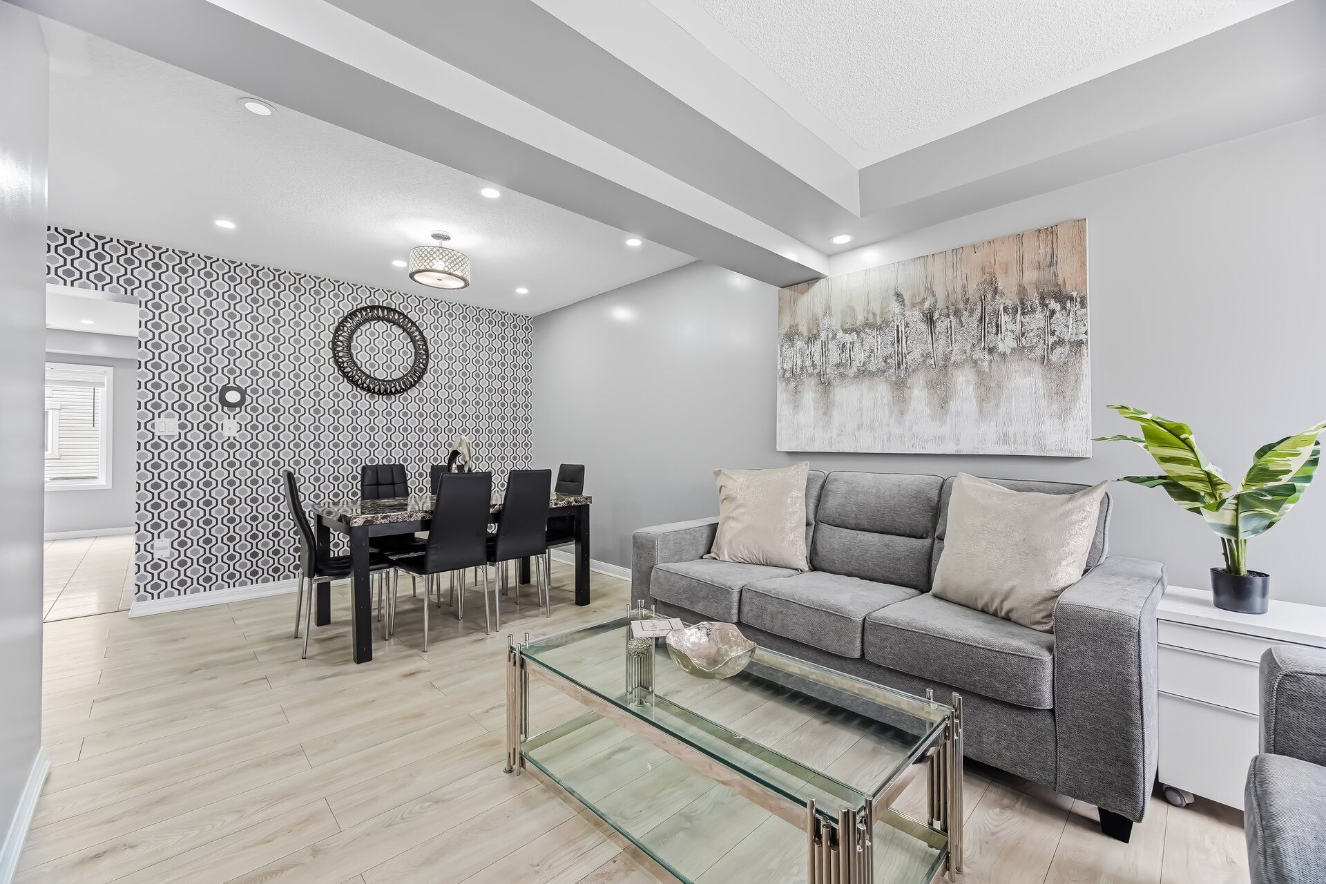 • Cozy main level with a living room and dining area.