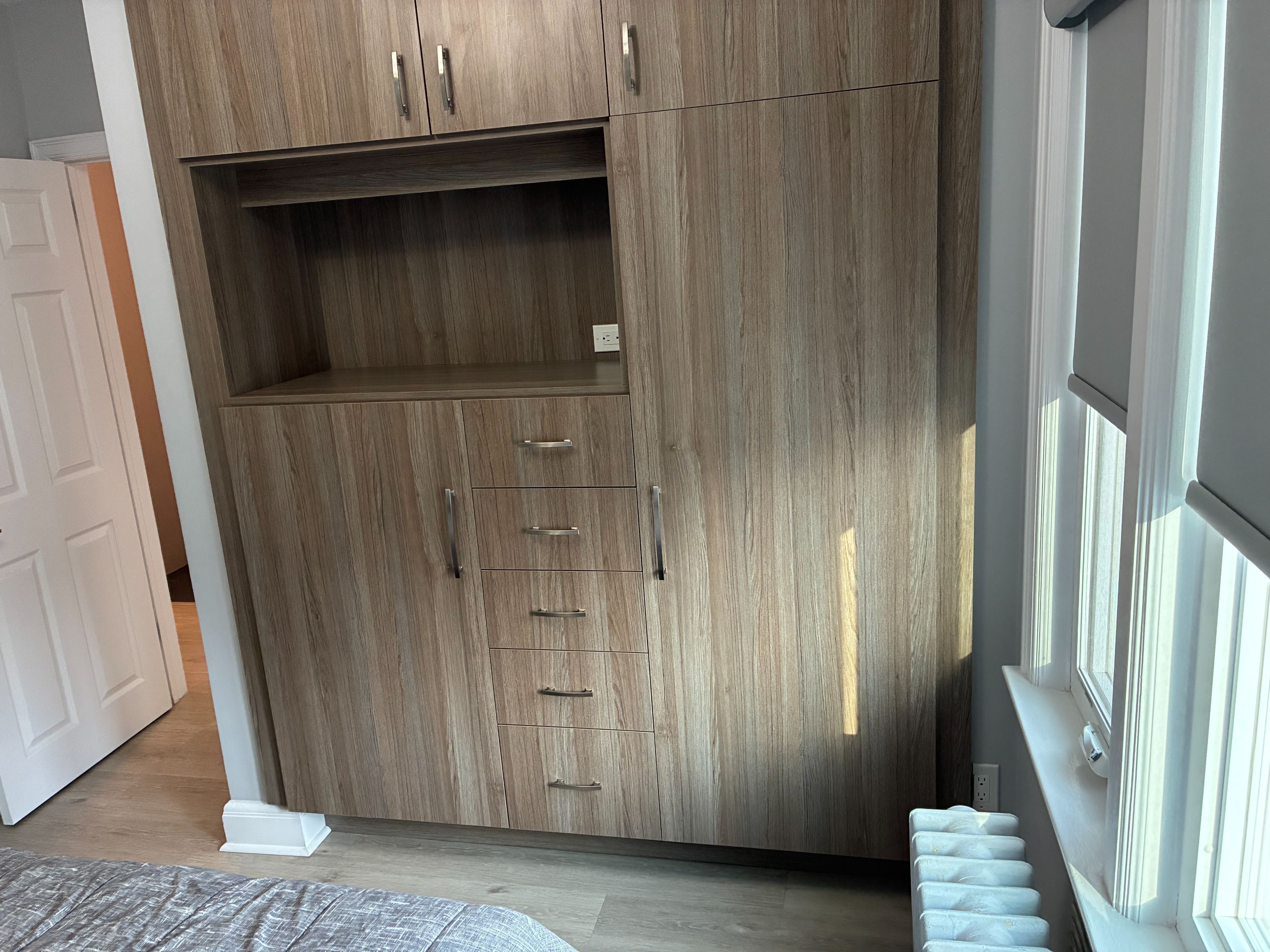 • Custom storage solutions in bedrooms and throughout the apartment.