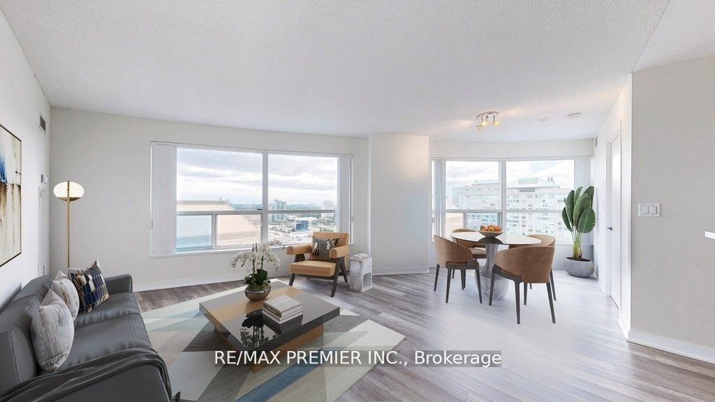 This sun-drenched unit features a spacious open-concept layout with brand-new, elegant laminate flooring throughout. Enjoy the rivacy of two split bedrooms and the convenience of two full bathrooms. Stunning views from every room. Indulge in luxury living with premium amenities, including 24-hour concierge, a beautifully landscaped rooftop patio, and ample visitor parking, located just steps from scarborough town centre, lrt, ttc transit, and minutes to hwy 401 this is the perfect blend of comfort and convenience!