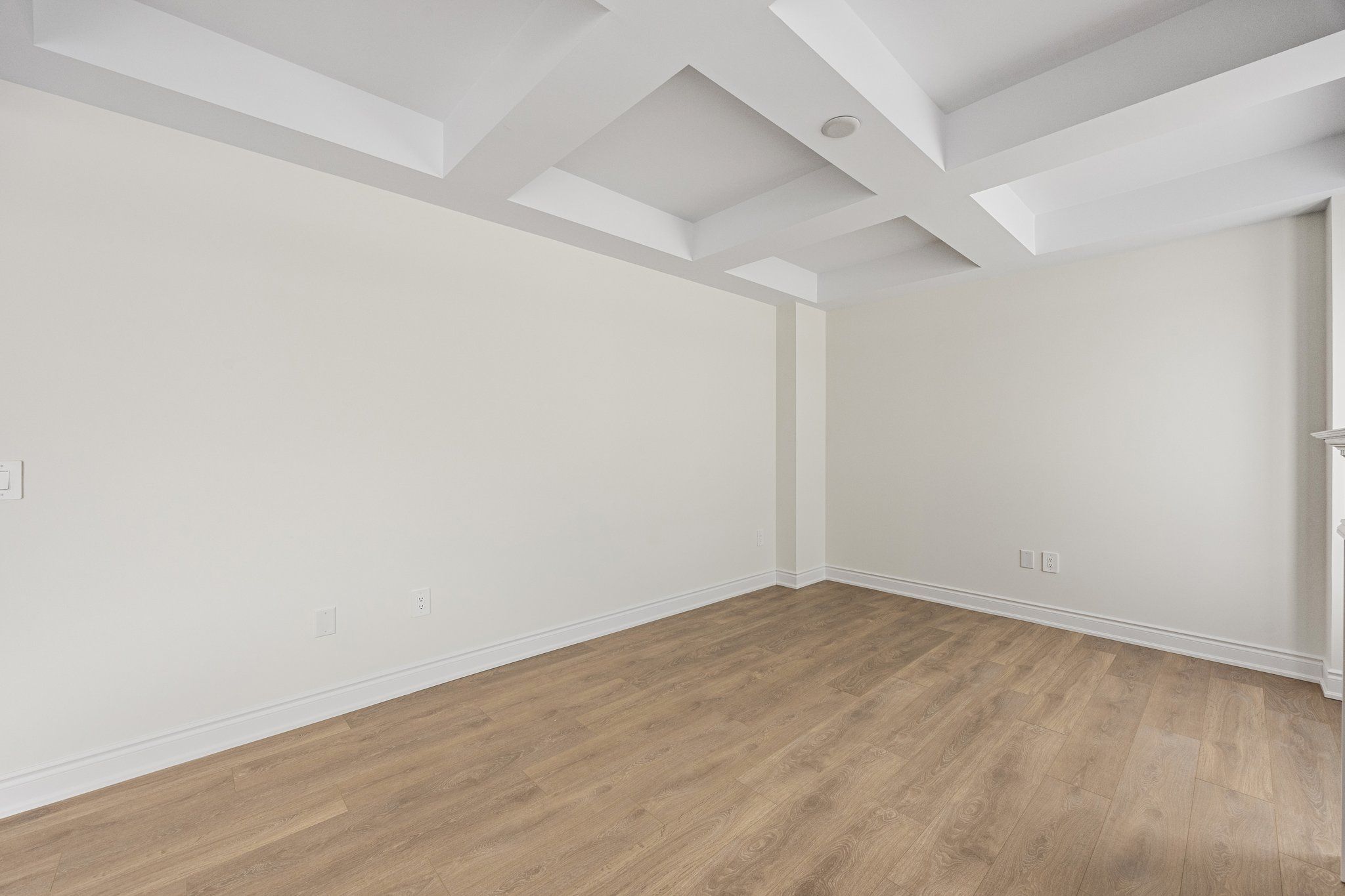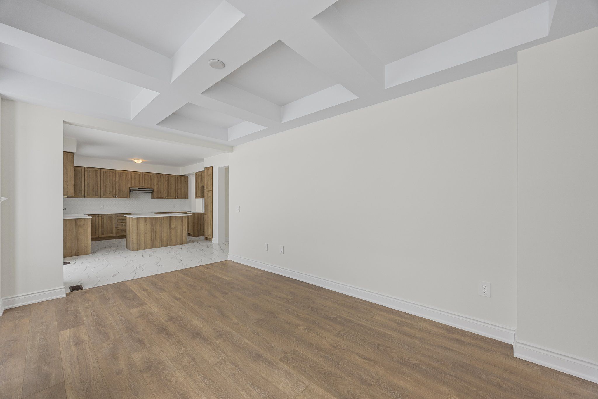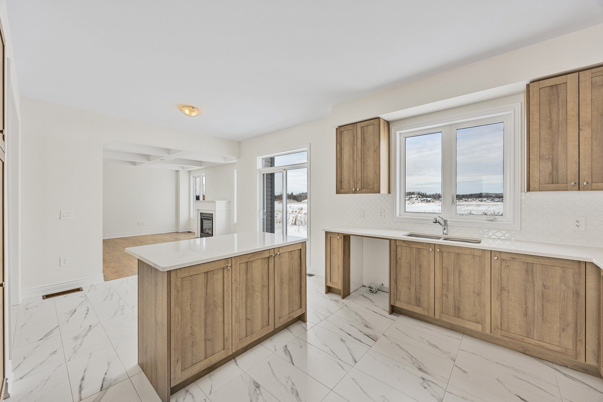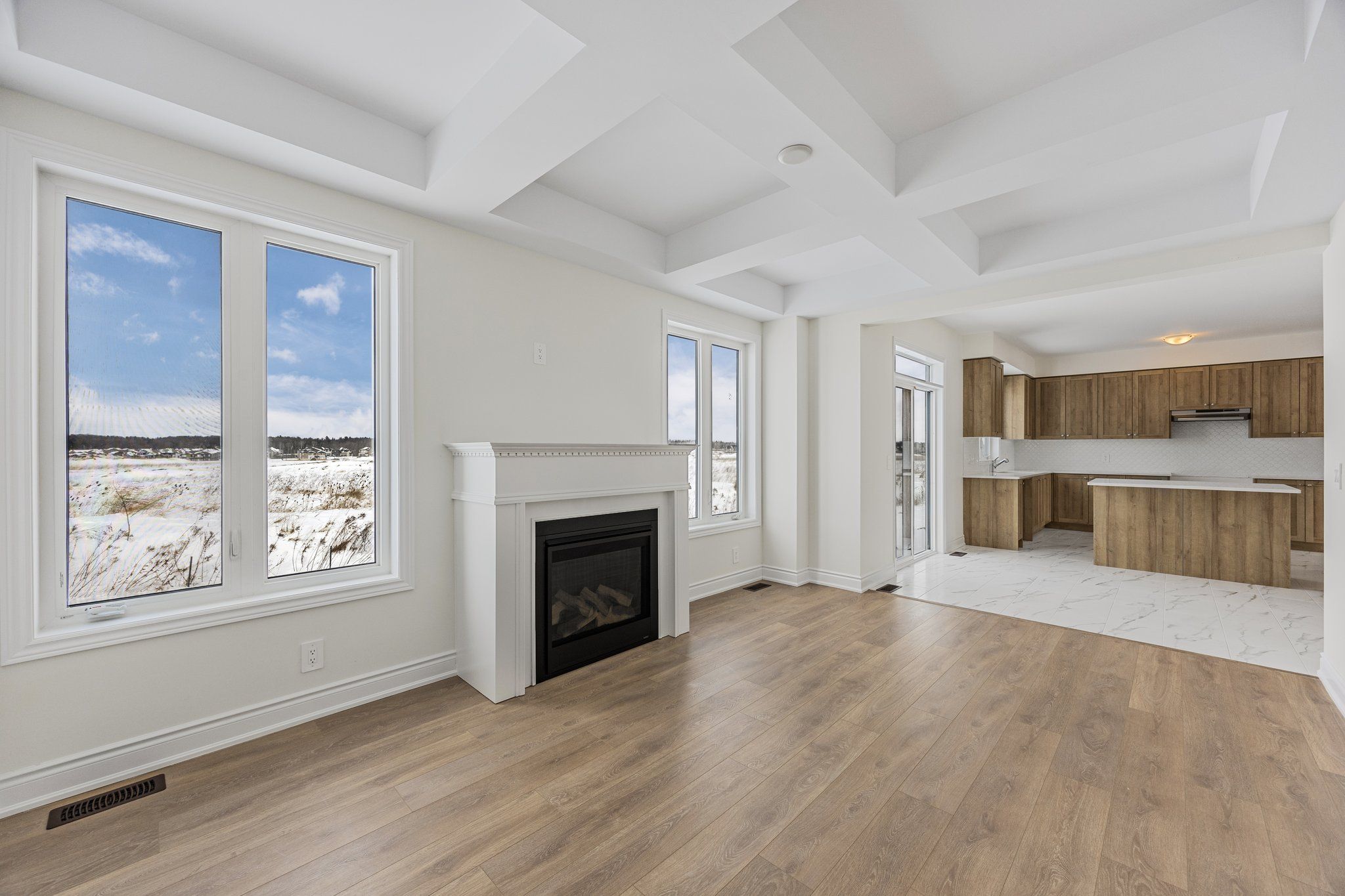 • Spacious open-concept family room with cozy gas fireplace.