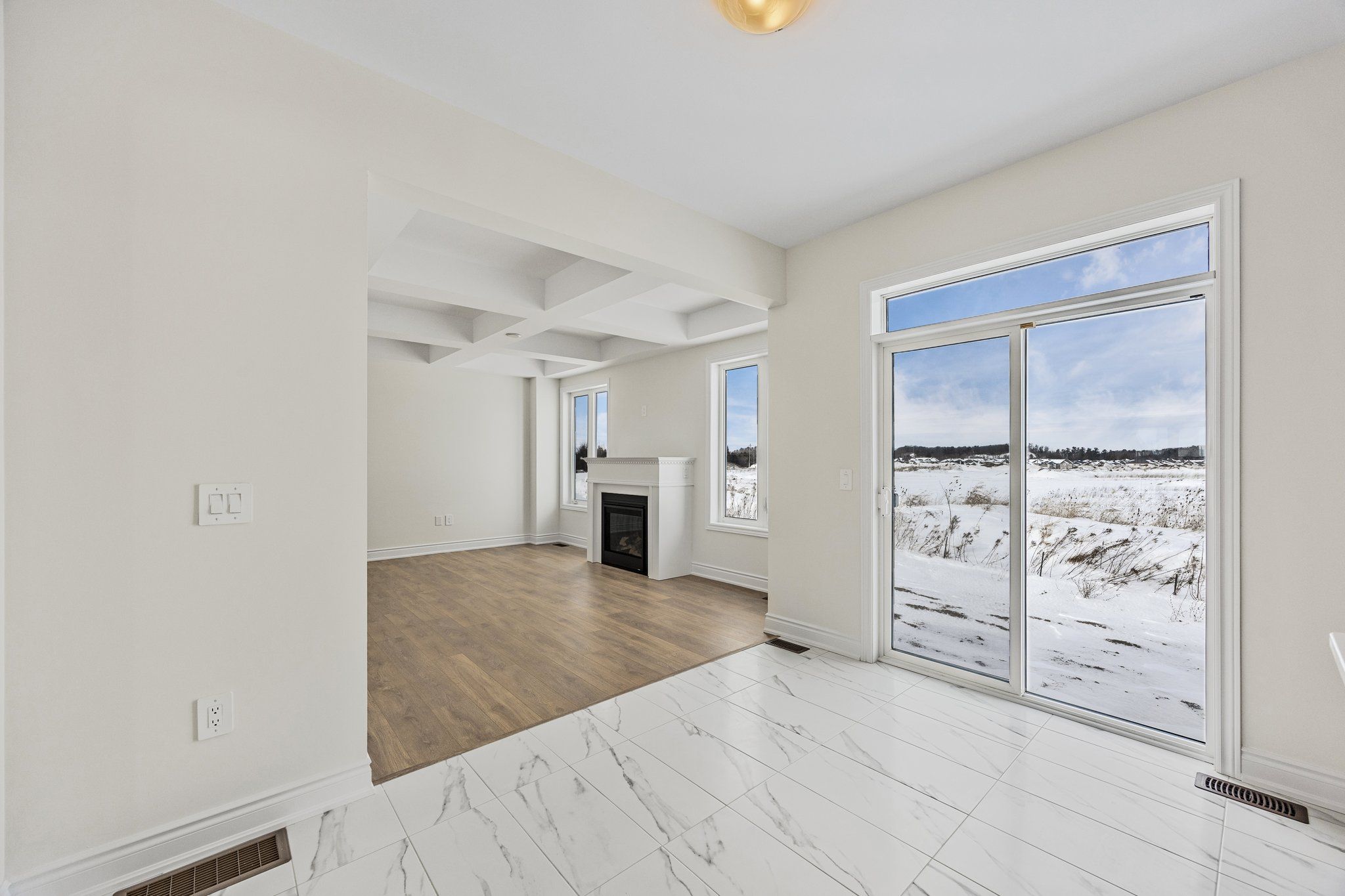 Welcome to this stunning brand new, never lived-in home designed for modern living and effortless style. Offering approximately 2,226 sq. Ft. (as per builder), this thoughtfully crafted freehold detached home showcases elegant finishes and functional design throughout. The bright, open-concept layout features a spacious family room with a cozy gas fireplace and striking waffle ceiling, creating the perfect space to relax or entertain. The upgraded kitchen is a true centerpiece, complete with stylish cabinetry, designer backsplash, and sleek silestone countertops with undermount sinks, flowing seamlessly into the dining area. Enjoy upgraded tile flooring in key areas, convenient interior access from the garage, 200 amp service, and rough-in for electric vehicle charging-providing both comfort and future-ready convenience. Full tarion warranty included. Nestled in a premier master-planned hub with a school already built, you'll enjoy future amenities including scenic trails, shops, and vibrant parks. Experience the perfect blend of luxury and community, all just minutes from the world-famous beach! With a 2-car garage and pristine curb appeal, this home is ready for its very first owners. Some photos have been virtually staged for illustrative purposes only.