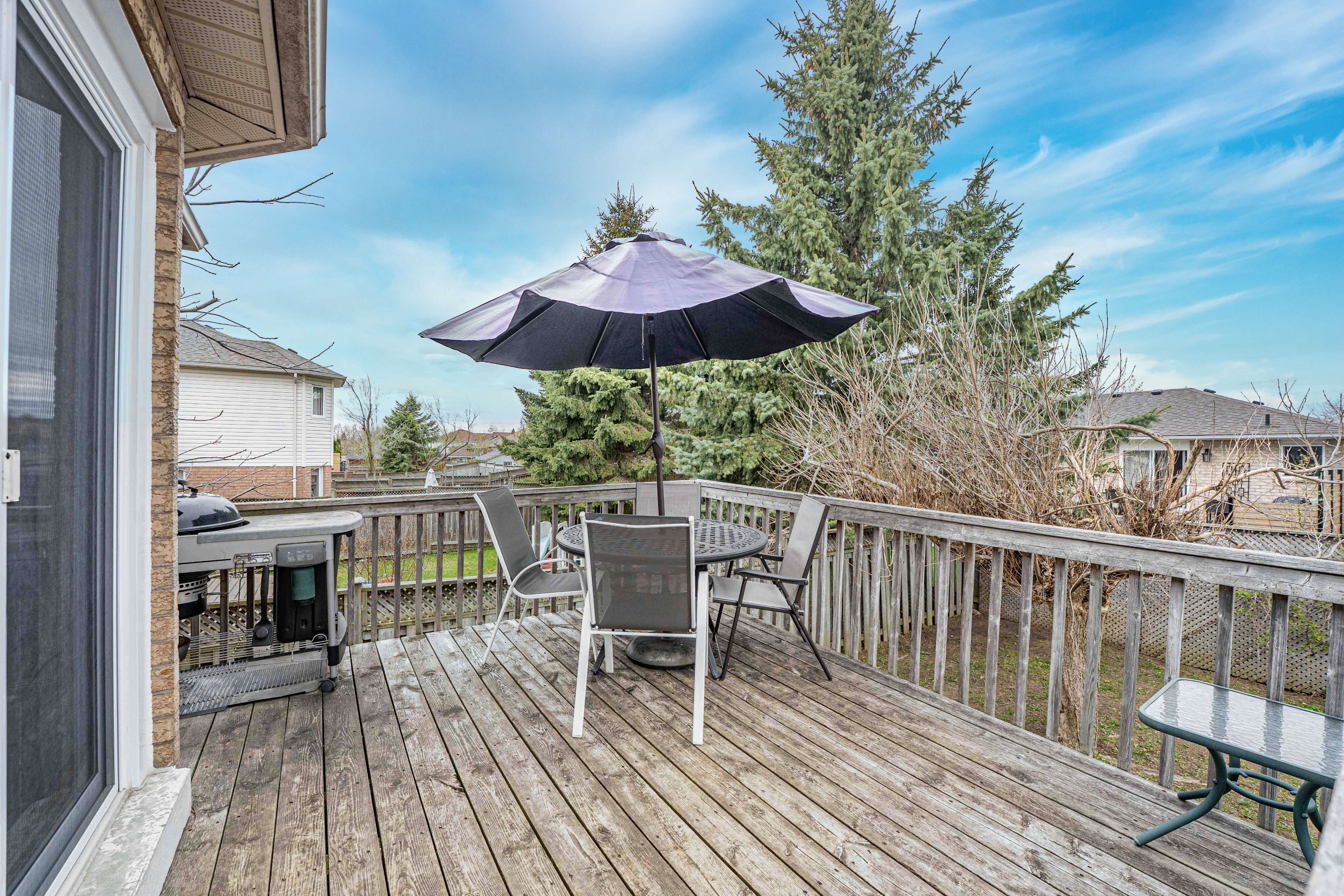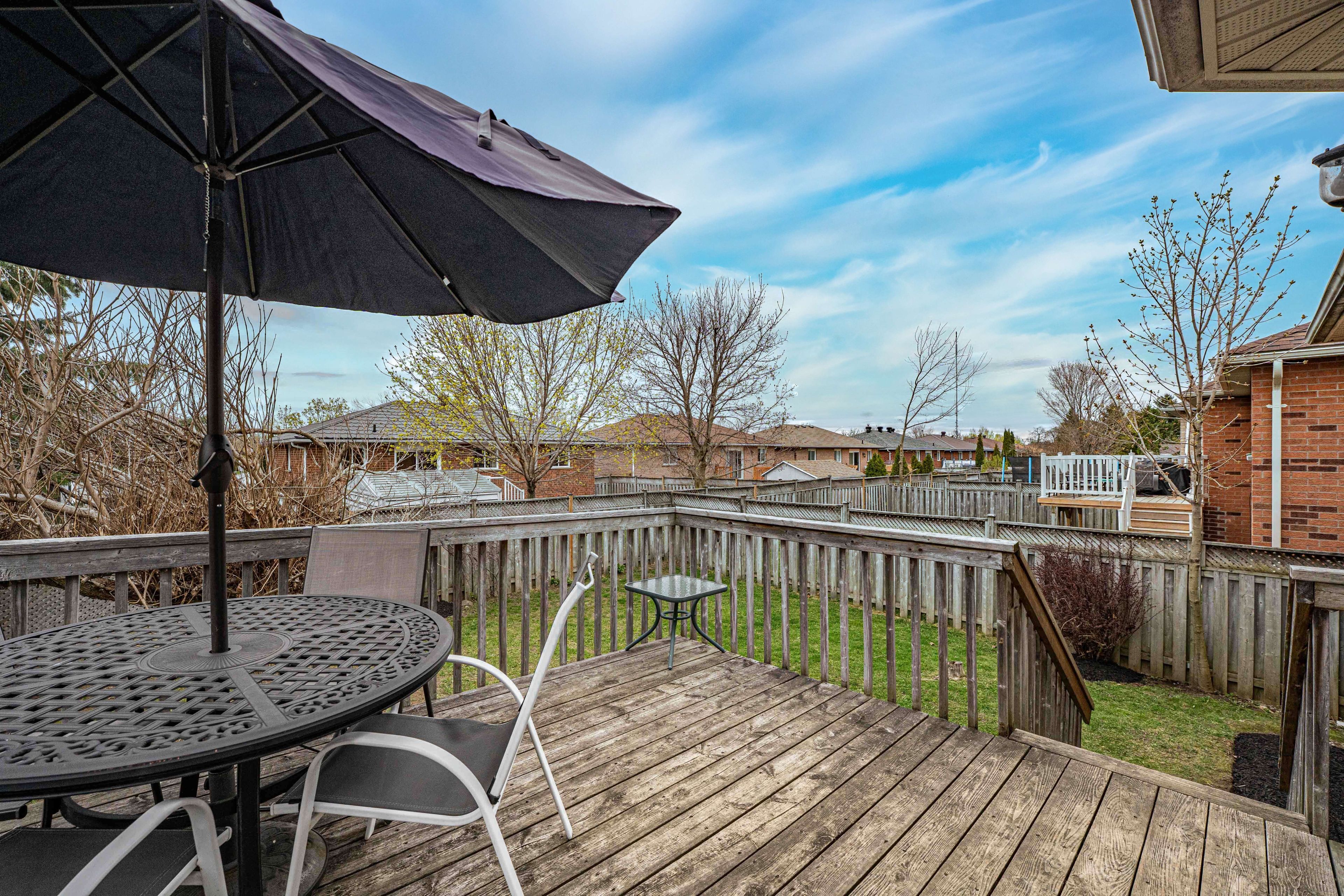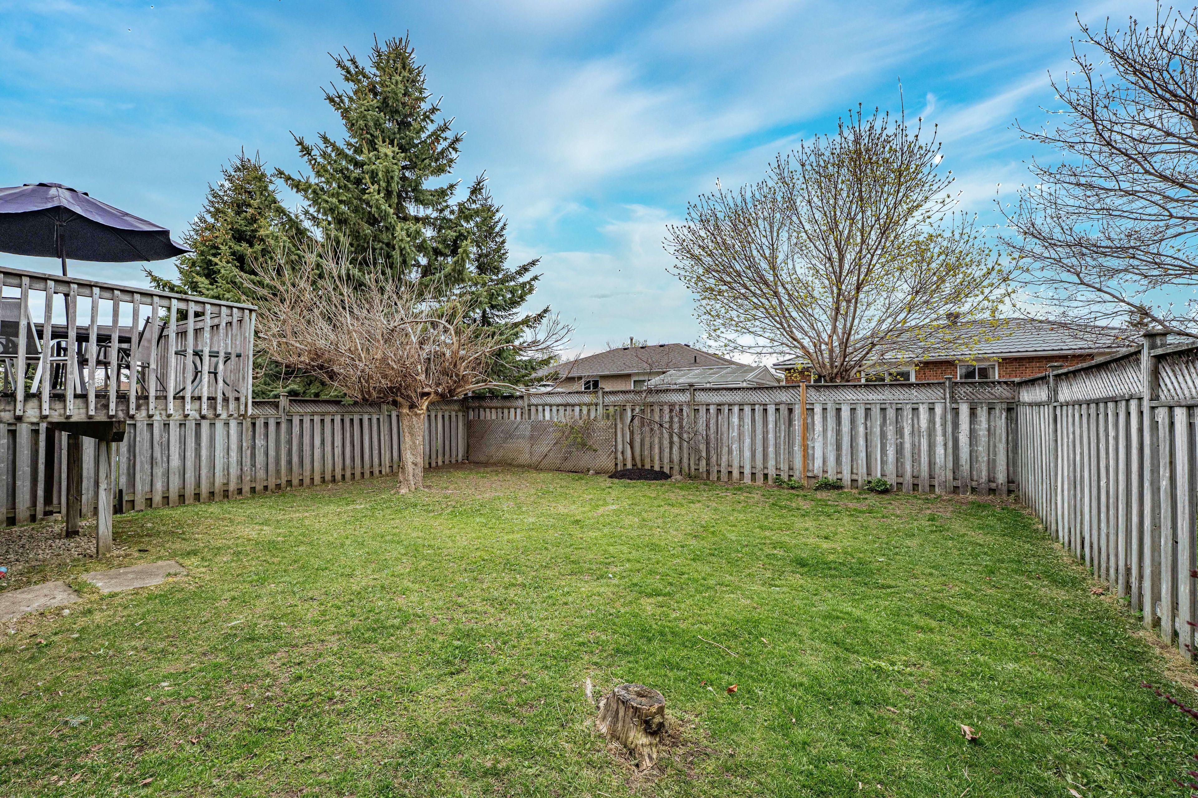 • Private backyard with mature trees for a peaceful outdoor retreat.