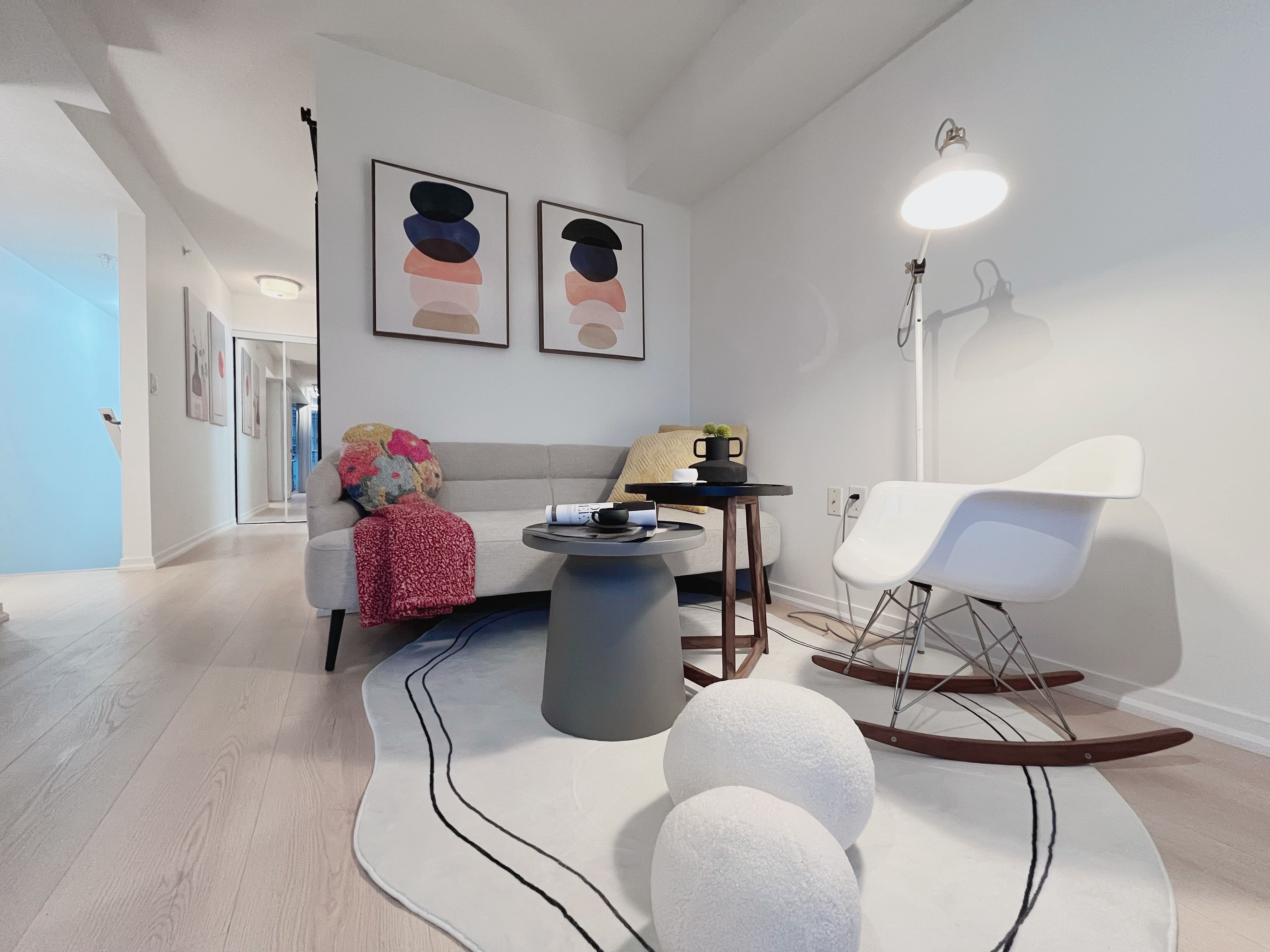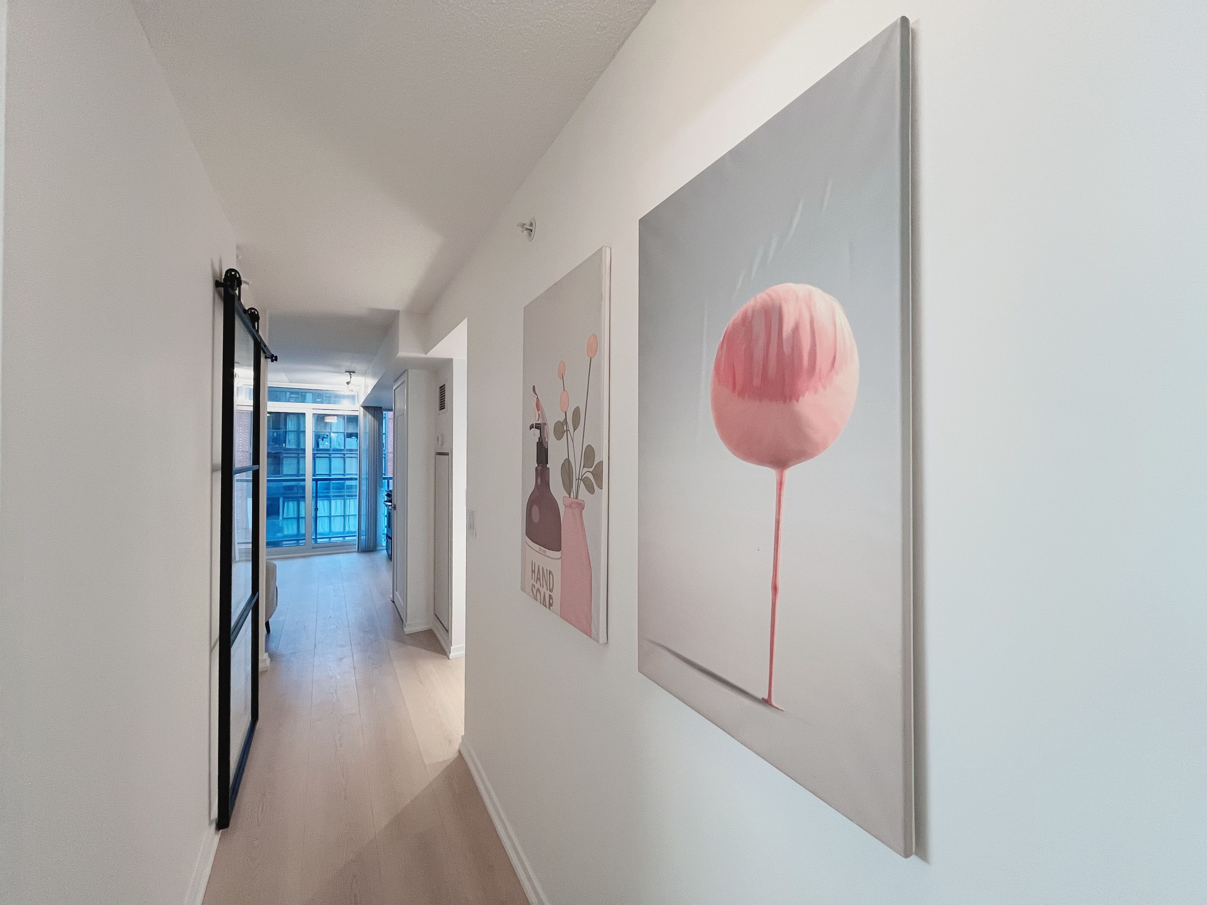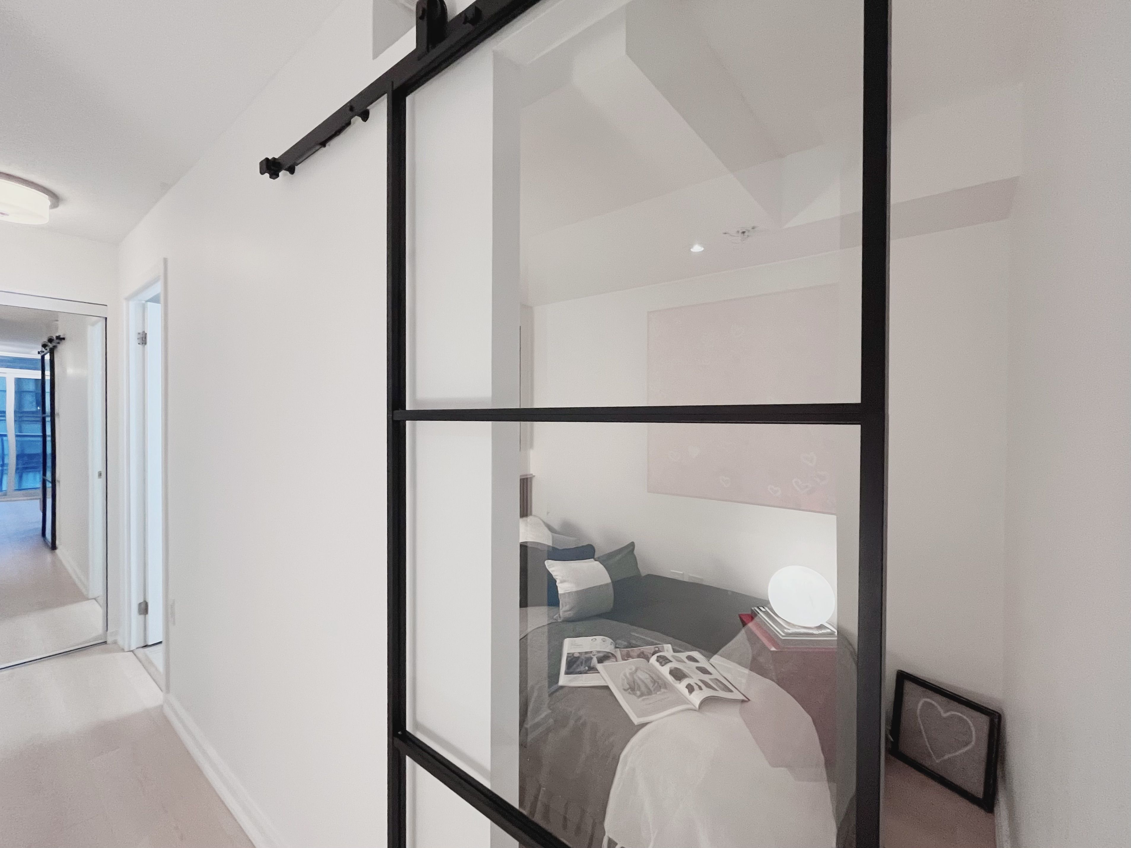 Prepare to be impressed by this meticulously upgraded two-storey studio that redefines urban living. From the moment you enter the elegant foyer, you ascend to a bright and spacious open-concept upper level that feels more like a luxury loft than a standard condo. The standout feature? A brilliant, custom-built private bedroom separated by a stylish glass barn door, offering the true separation and privacy of a one-bedroom layout-a rare and valuable find in a studio. This unit has undergone a comprehensive, no-expense-spared renovation, showcasing premium upgrades at every turn. The list includes brand-new modern luxury vinyl flooring, a fresh and neutral paint palette, new designer light fixtures, and new stainless steel fridge. The sleek kitchen features granite countertops and is perfectly positioned within the open living area, which opens directly onto your spacious private balcony. Here, you can enjoy your morning coffee with breathtaking, unobstructed views of the cn tower. The building offers full 24-hour concierge service for your security and convenience. Nestled on a quiet, in the heart of the fashion district, this home provides a peaceful retreat while being moments from an array of trendy cafes, gourmet restaurants, boutique shops, parks, and major transit options, placing the very best of the city at your doorstep. This is not just a listing; it's an experience. The unique two-storey layout, the custom bedroom addition, and the high-end finishes must be seen in person to be fully appreciated. This move-in ready home is a true model of modern urban design and won't last long.