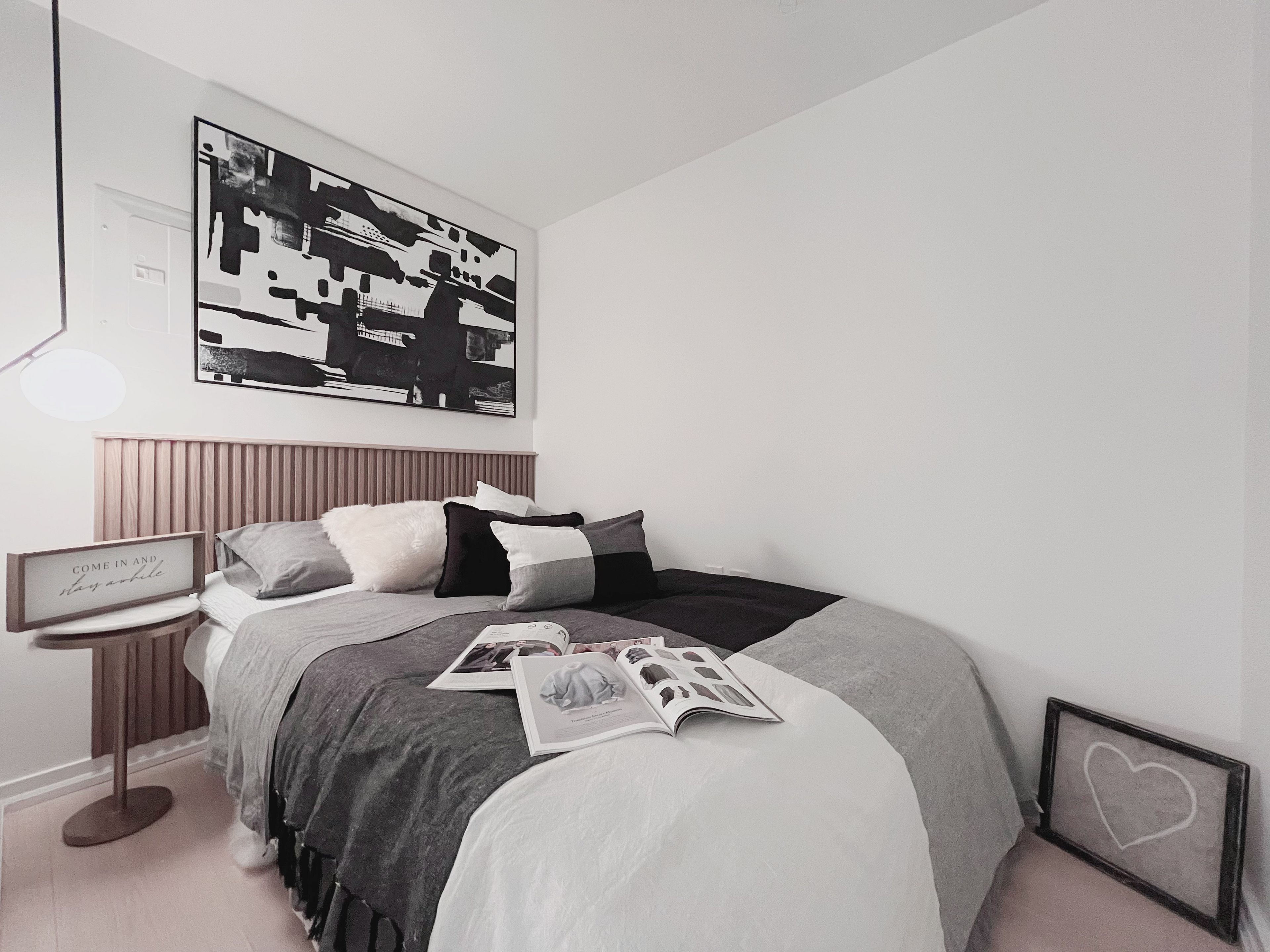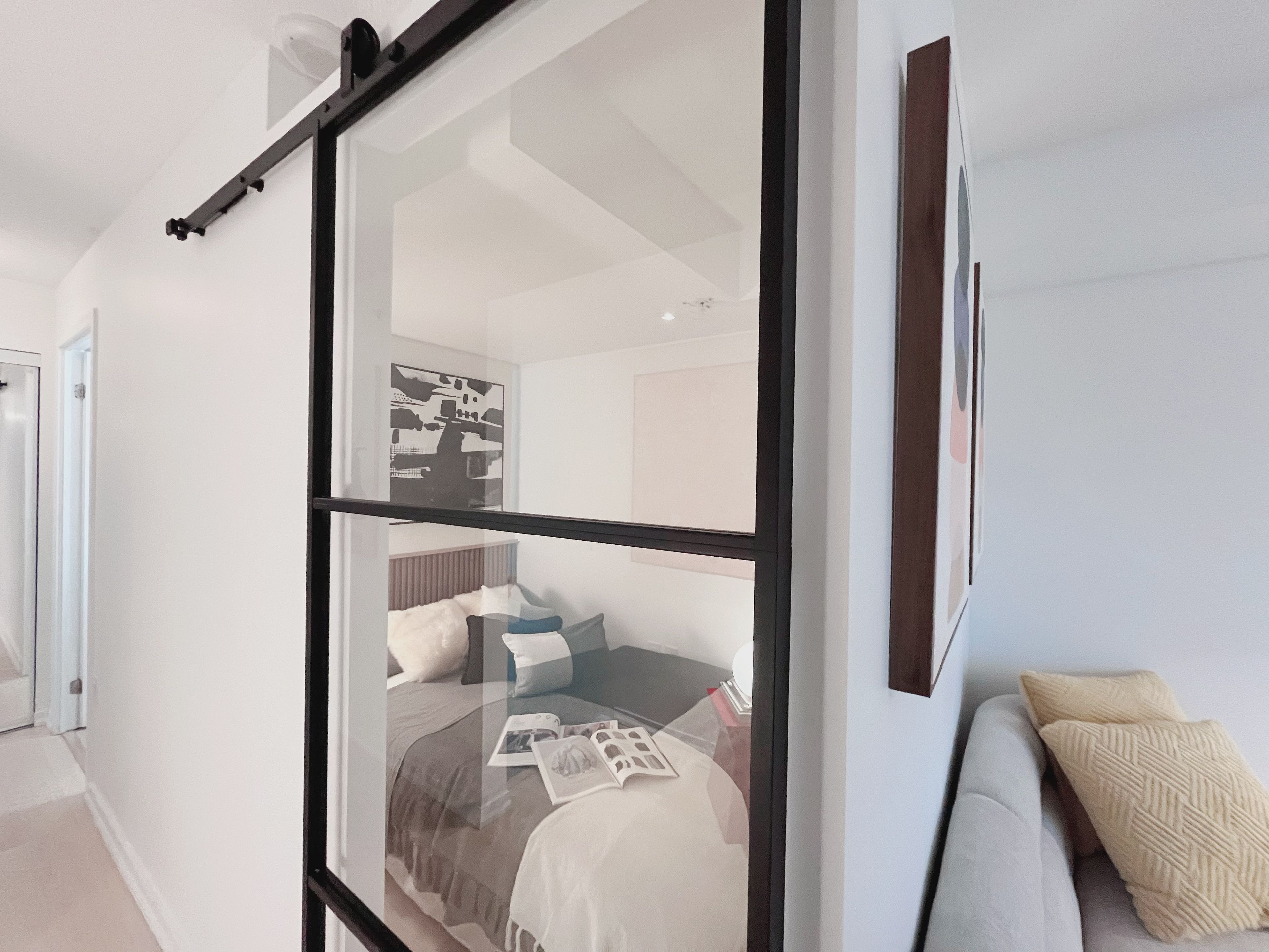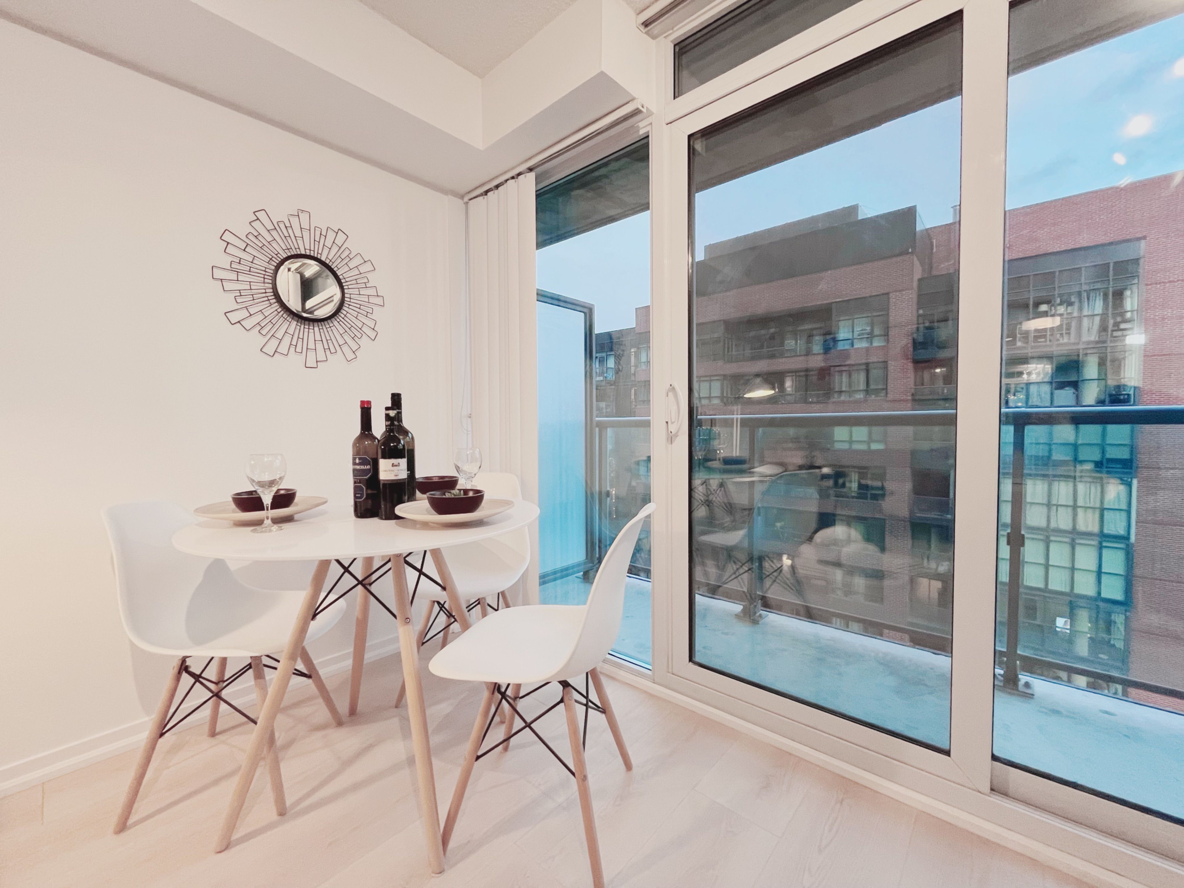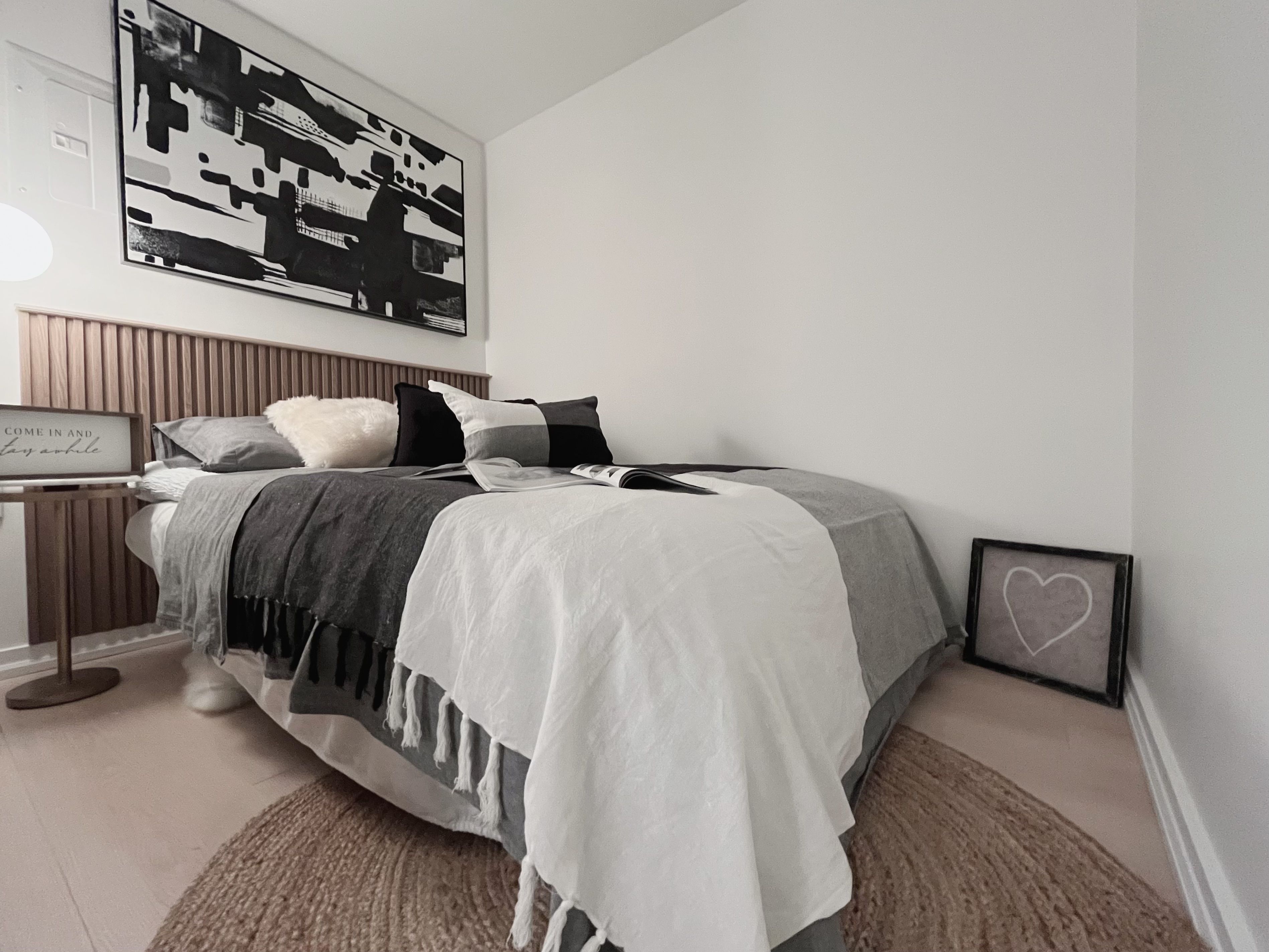 Prepare to be impressed by this meticulously upgraded two-storey studio that redefines urban living. From the moment you enter the elegant foyer, you ascend to a bright and spacious open-concept upper level that feels more like a luxury loft than a standard condo. The standout feature? A brilliant, custom-built private bedroom separated by a stylish glass barn door, offering the true separation and privacy of a one-bedroom layout-a rare and valuable find in a studio. This unit has undergone a comprehensive, no-expense-spared renovation, showcasing premium upgrades at every turn. The list includes brand-new modern luxury vinyl flooring, a fresh and neutral paint palette, new designer light fixtures, and new stainless steel fridge. The sleek kitchen features granite countertops and is perfectly positioned within the open living area, which opens directly onto your spacious private balcony. Here, you can enjoy your morning coffee with breathtaking, unobstructed views of the cn tower. The building offers full 24-hour concierge service for your security and convenience. Nestled on a quiet, in the heart of the fashion district, this home provides a peaceful retreat while being moments from an array of trendy cafes, gourmet restaurants, boutique shops, parks, and major transit options, placing the very best of the city at your doorstep. This is not just a listing; it's an experience. The unique two-storey layout, the custom bedroom addition, and the high-end finishes must be seen in person to be fully appreciated. This move-in ready home is a true model of modern urban design and won't last long.