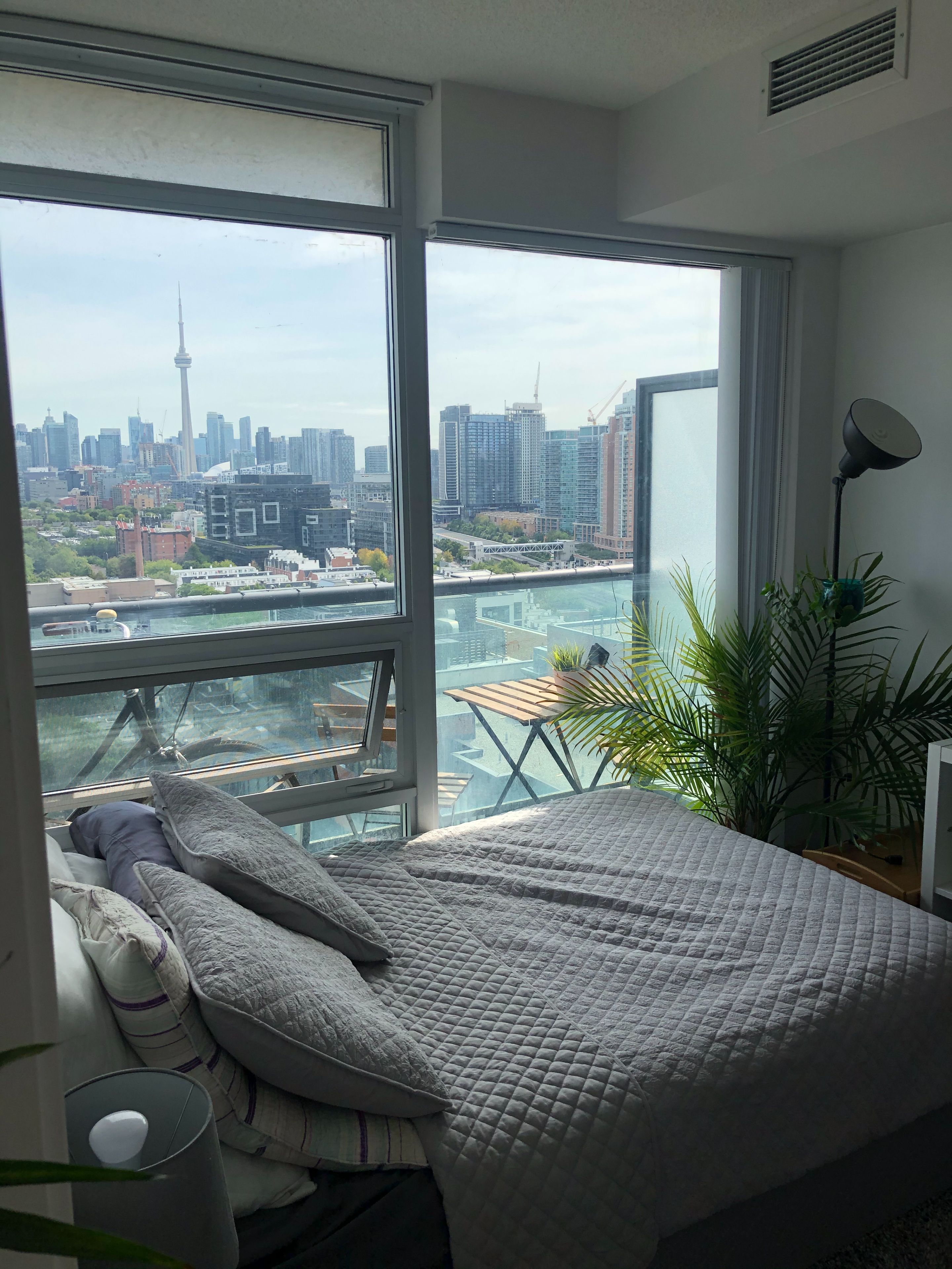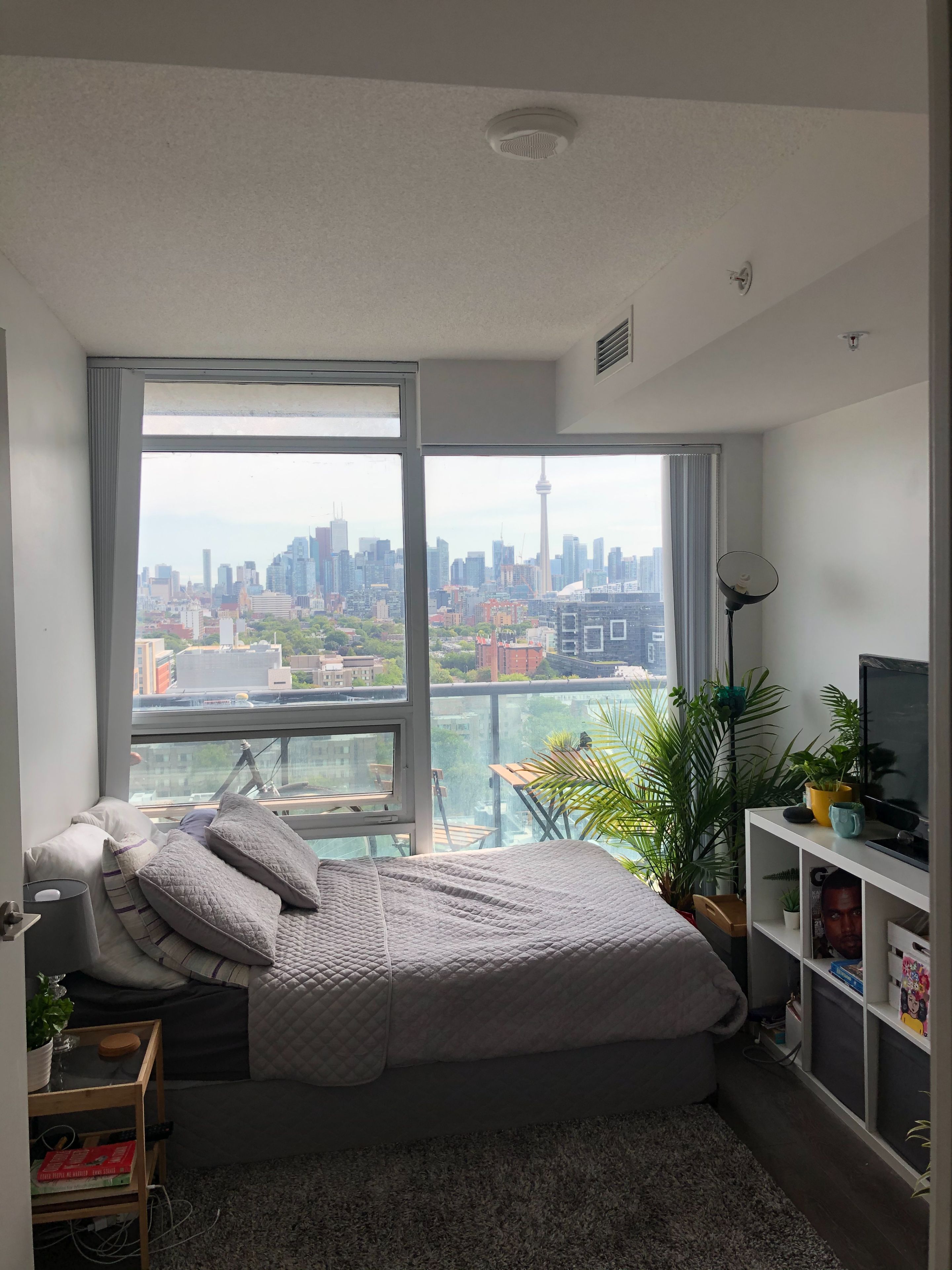 May 1 move in. Urban living in queen west at its best! Bright & spacious two bed two bath unit. Amazing unobstructed city view. Parking included. Great starter condo. Situated in the heart of queen st. W. Streetcar at your doorstep. Walk to starbucks, freshco, the drake hotel, restaurants, bars, boutique shops. 24 hour concierge. Gym, party room, brand new city park and much much more. Walk score is 93. Parking included!