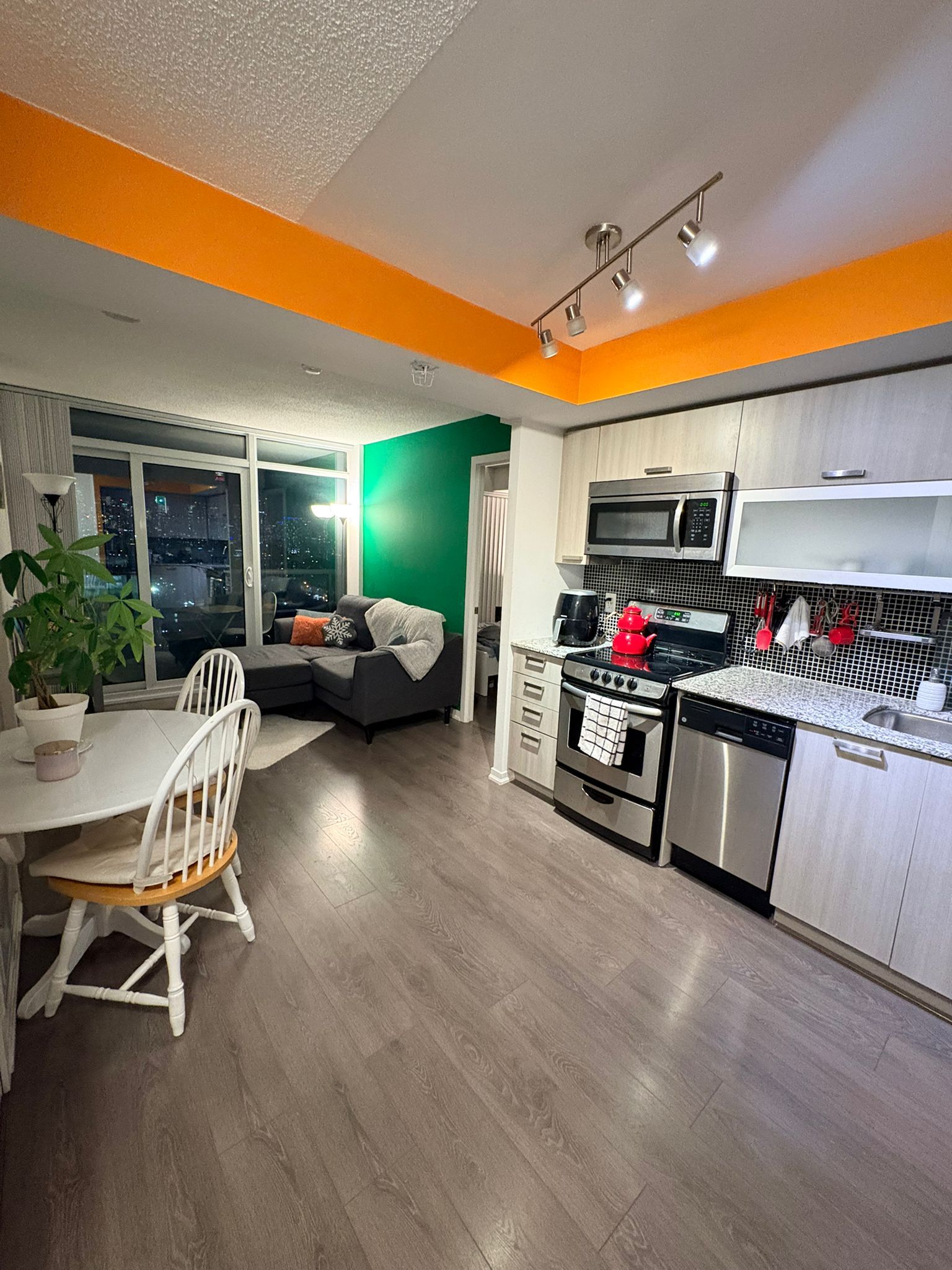 Stylish downtown living at edge on triangle park! Welcome to suite 2218e at 36 lisgar st - a bright and modern 1-bedroom + study condo in the heart of toronto's vibrant west queen west neighbourhood. This well-designed unit features an open-concept layout with floor-to-ceiling windows, laminate flooring, and a functional study area perfect for working from home. The contemporary kitchen includes stainless steel appliances, quartz countertops, and ample cabinetry. Enjoy stunning city views from the private balcony. Residents have access to great building amenities including a fitness centre, party room, rooftop terrace, concierge, and visitor parking. Steps to queen street west shops, cafes, restaurants, trinity bellwoods park, transit, and easy access to downtown core. Perfect for young professionals seeking convenience, style, and one of toronto's most exciting neighbourhoods.