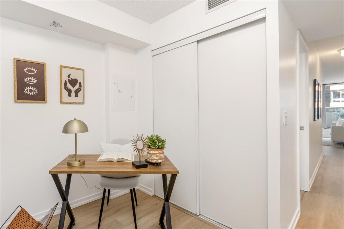 Welcome to 36 lisgar st, unit 906e, located in the heart of west queen west. This bright and modern 1+1 bedroom condo offers a well designed layout with floor to ceiling windows that fill the space with natural light. The open concept living and dining area walks out to a private terrace balcony, perfect for morning coffee or relaxing at the end of the day. The separate den provides an ideal work from home space, making the unit both practical and comfortable for modern city living. The bedroom offers great light and a functional layout that maximizes space and walk-in closet. Step outside and enjoy everything queen west has to offer. Known for its vibrant dining scene, boutique shopping, galleries, and cafes, this neighbourhood is one of toronto's most sought after urban communities. Trinity bellwoods park is just a short walk away and offers the perfect escape for a walk, picnic, or weekend afternoon outdoors. Transit is extremely convenient with the queen streetcar just outside your door and quick access to the gardiner expressway and lakeshore for commuters. Easy access to groceries, fitness studios, and everyday essentials makes daily living simple and convenient. A fantastic opportunity to live in one of toronto's most dynamic neighbourhoods with everything the city has to offer right at your doorstep.