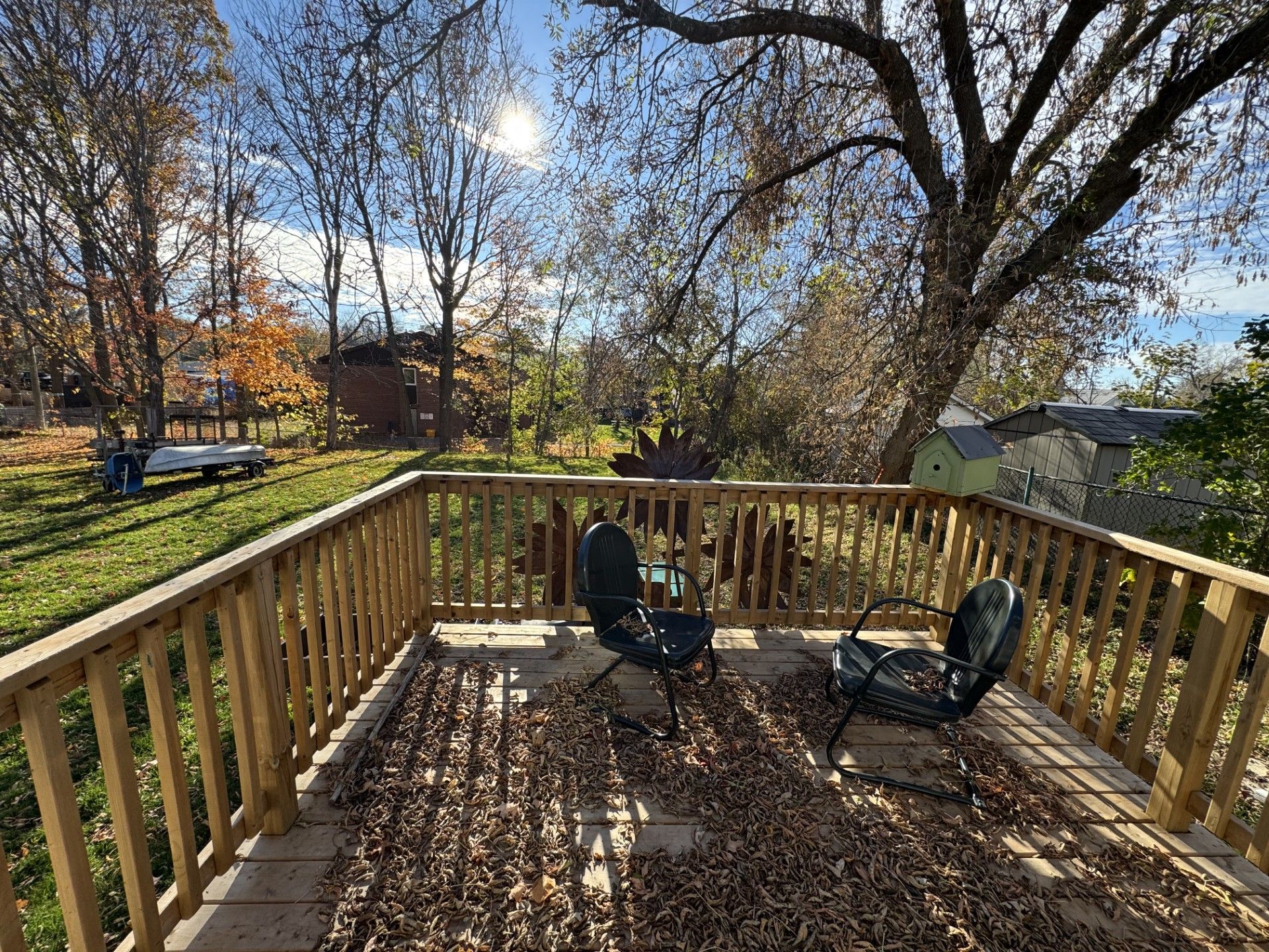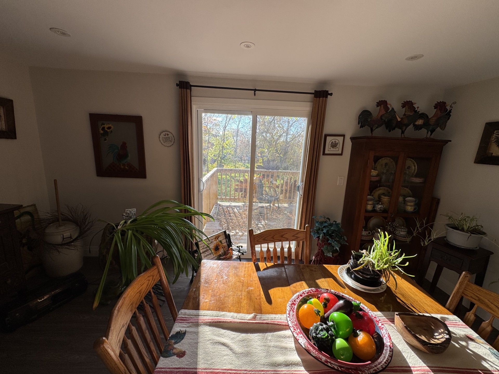 • Bright sunroom opens to a deck overlooking a large backyard.
