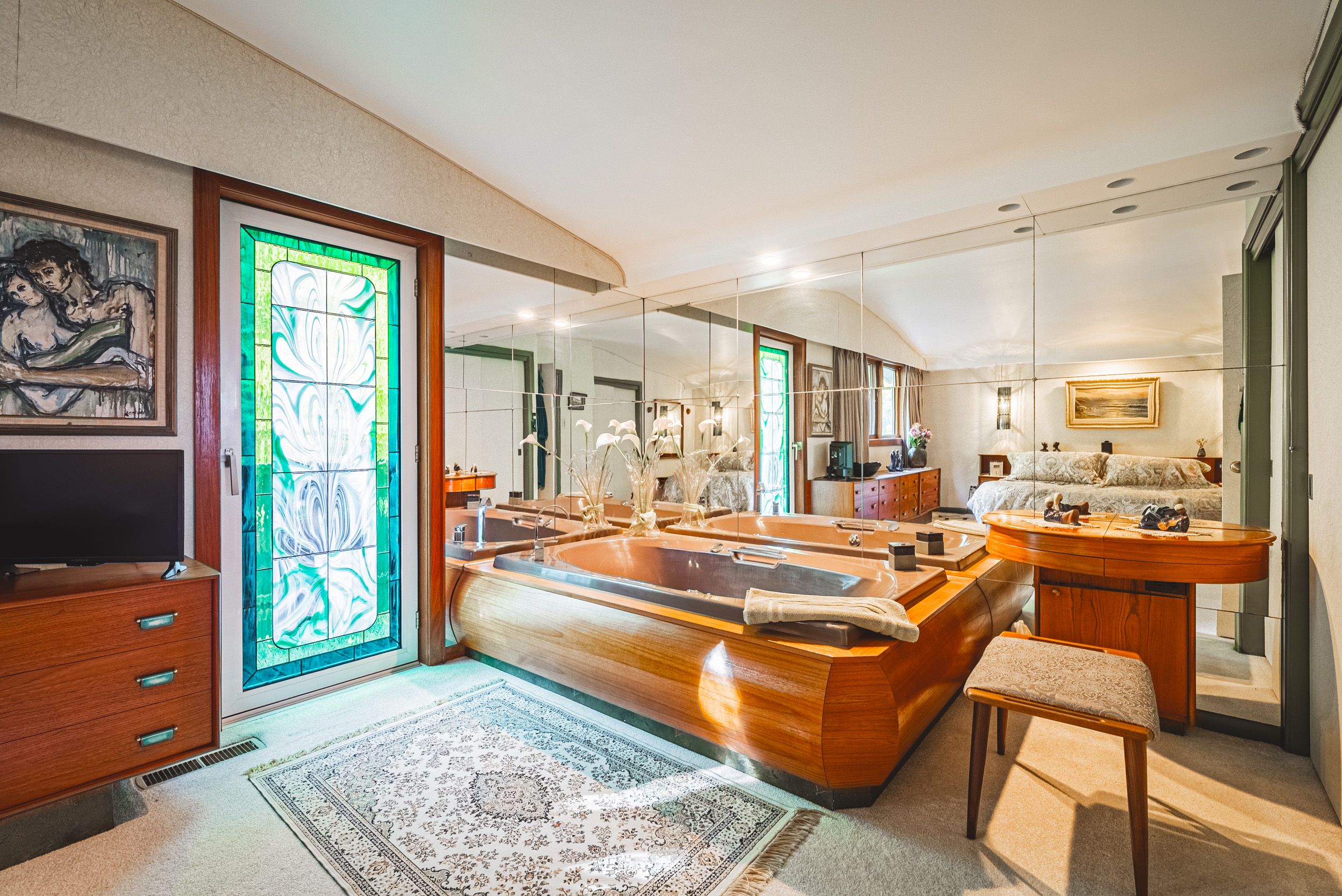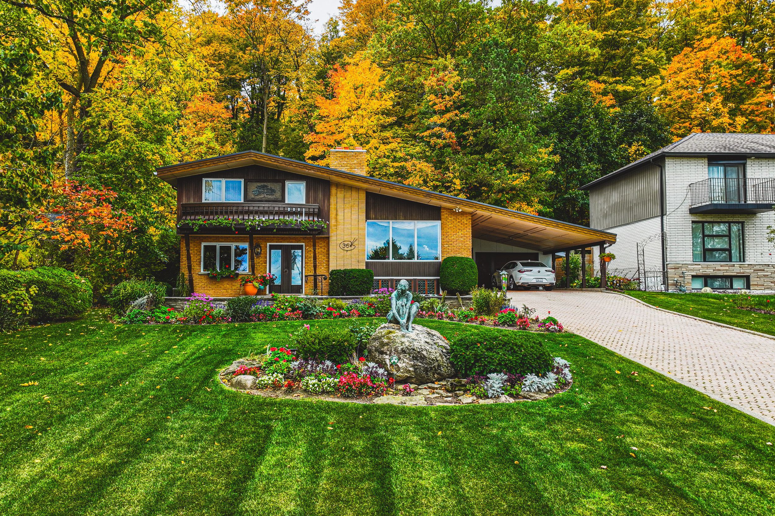 A true artists home rich in craftsmanship, history and heart. Perfectly positioned along the niagara escarpment with direct access to the bruce trail, this custom built home, one owner sprawling side split is a rare find. Set on a 70 ft x 244 lot, it has been celebrated with 24 trillium awards & 6 prestigious pink awards for its exceptional landscaping & design, a testament to the pride of ownership found throughout. Enjoy unobstructed views of lake ontario & the toronto skyline framed by mature trees & vibrant perennials, featuring a pond filled with golden orfes, goldfish, and blooming water lilies. Across the street a community park with playground & basketball court adds to the settings appeal, while go transit & qew access are just minutes away, offering easy connectivity to surrounding communities. Inside, artistry meets function with thoughtful touches & custom details. The gourmet teak kitchen boasts granite counters & built in miele & gaggenau appliances, perfect for those who value fine craftsmanship. Warm living spaces with a fireplace, intricate carved woodwork & timeless architectural detail, creating a home as comfortable as it is inspiring. Recent updates include a tarmac roof (2017), air conditioning (2023), furnace (2011), washer and dryer (2023). With parking for nine & a full workshop with hot & cold running water, this extraordinary home blends artistry, nature & convenience in perfect harmony.