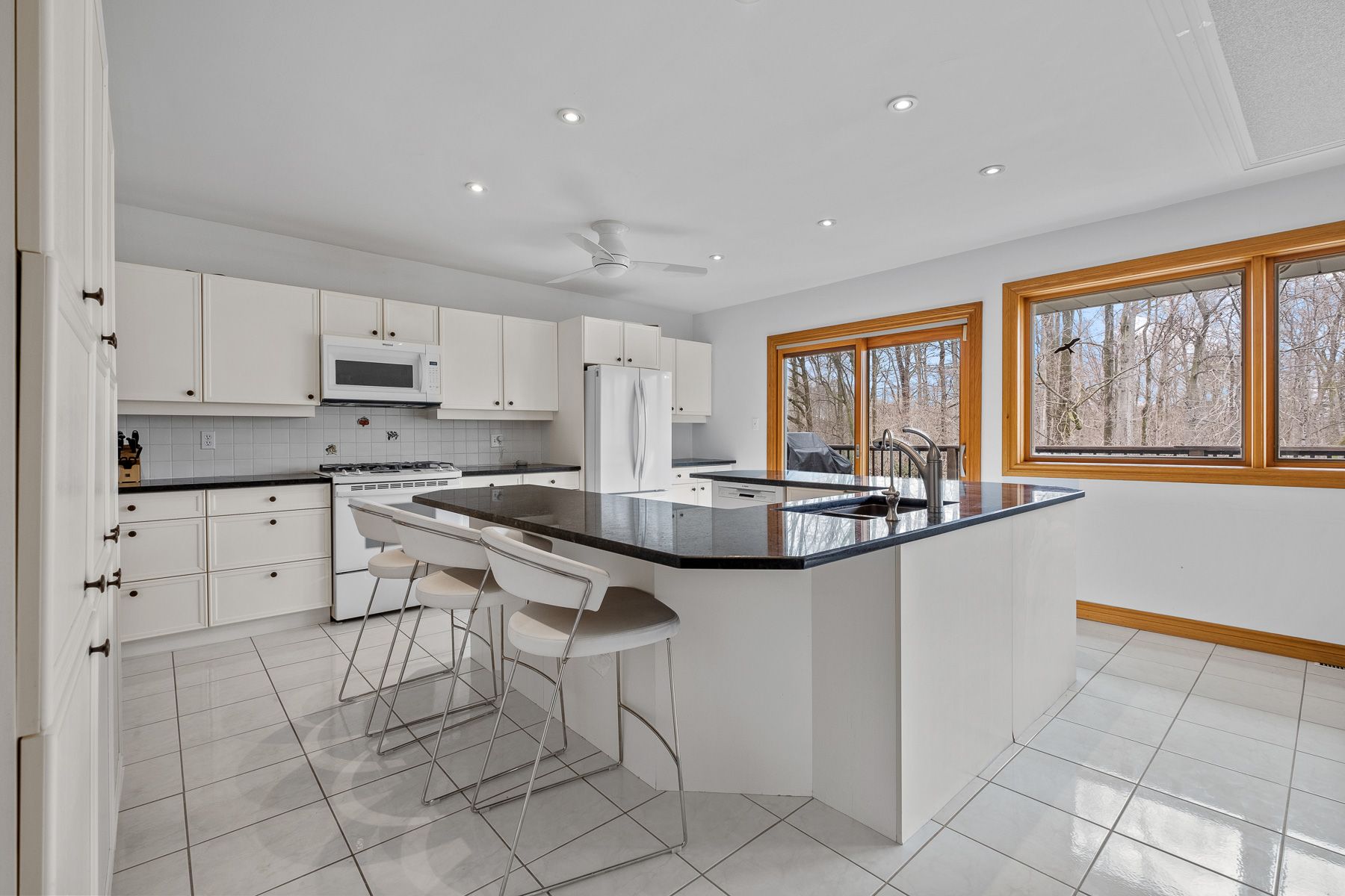 • Large kitchen and dining area with great views of the beautiful backyard.