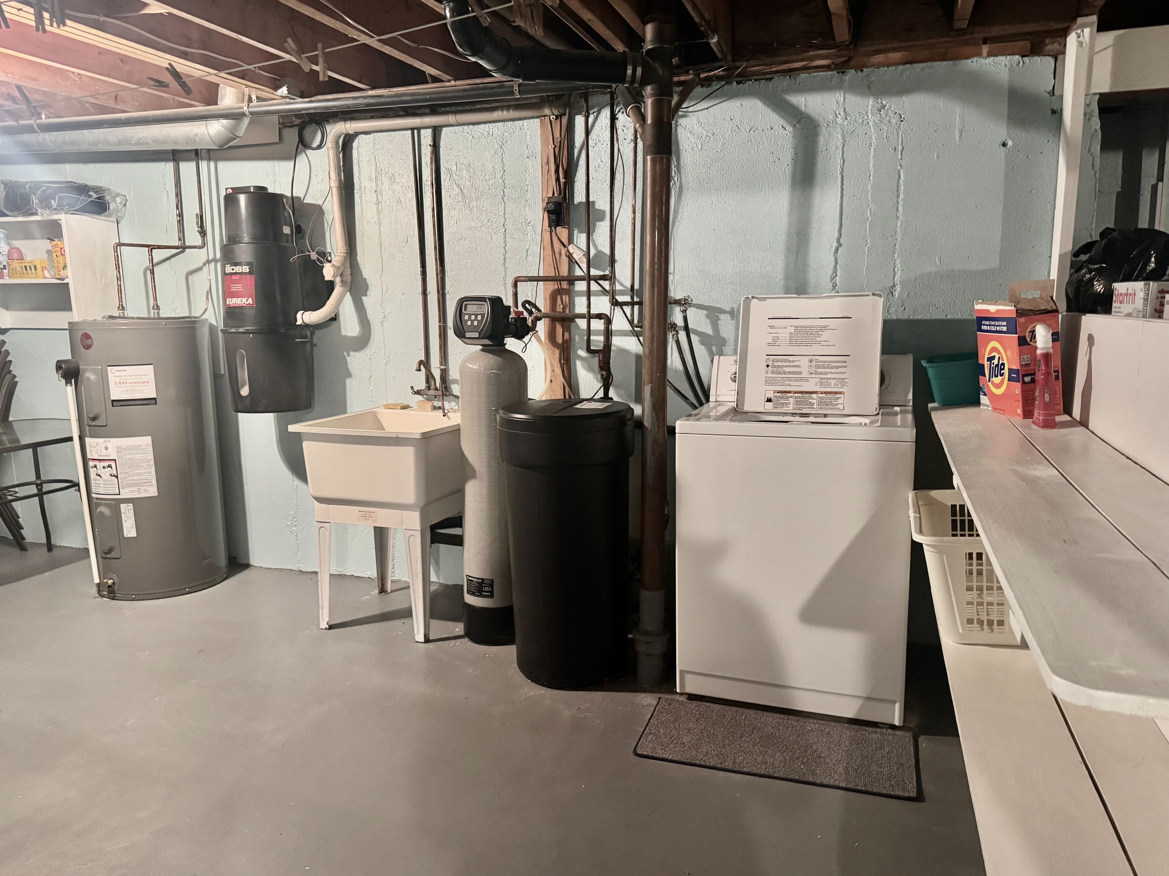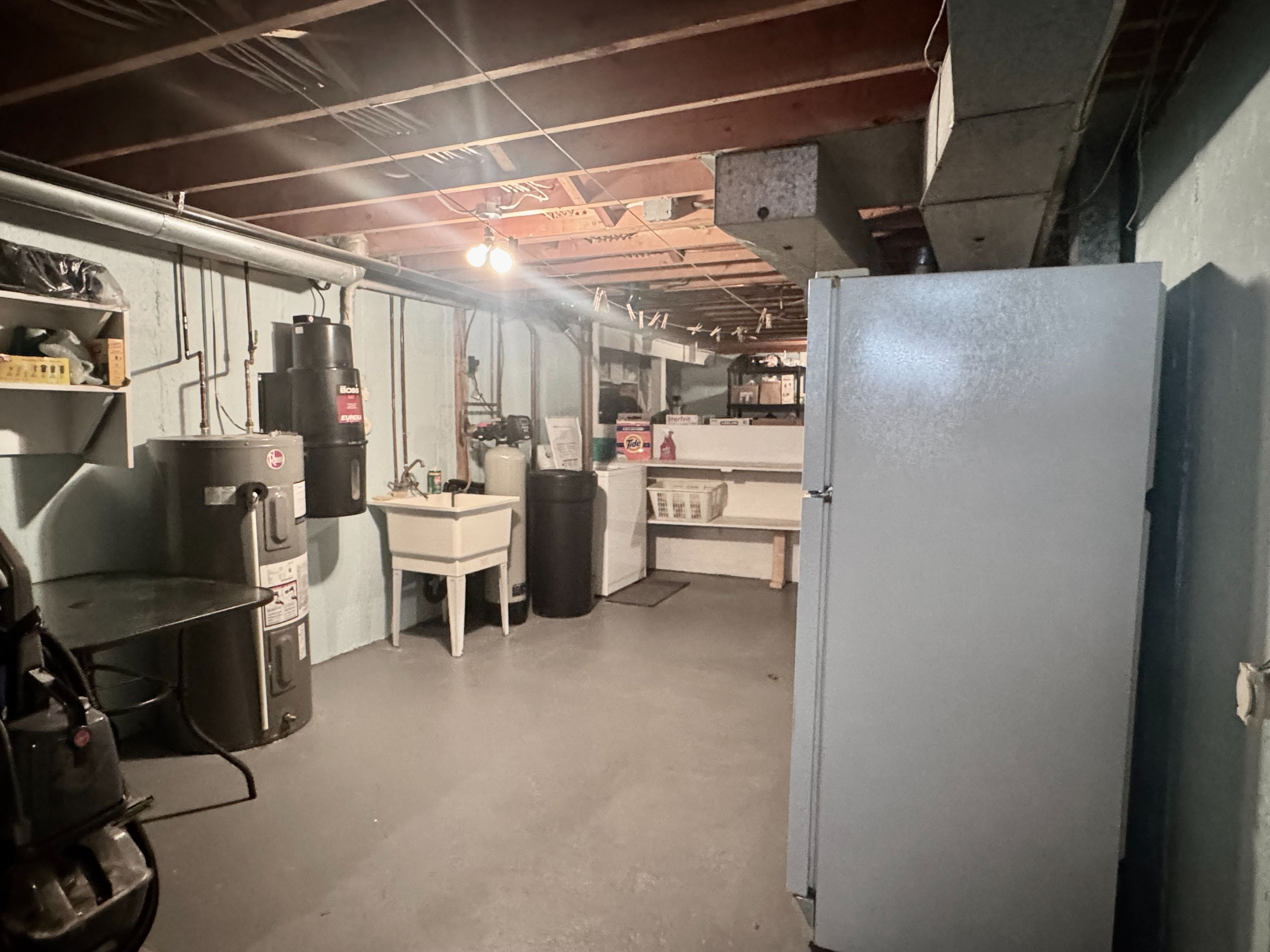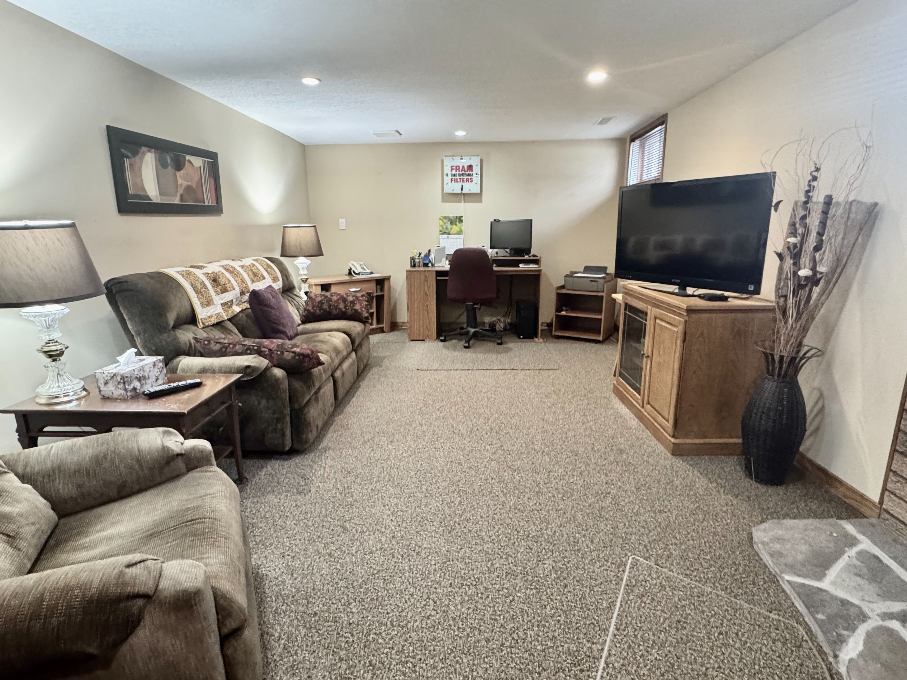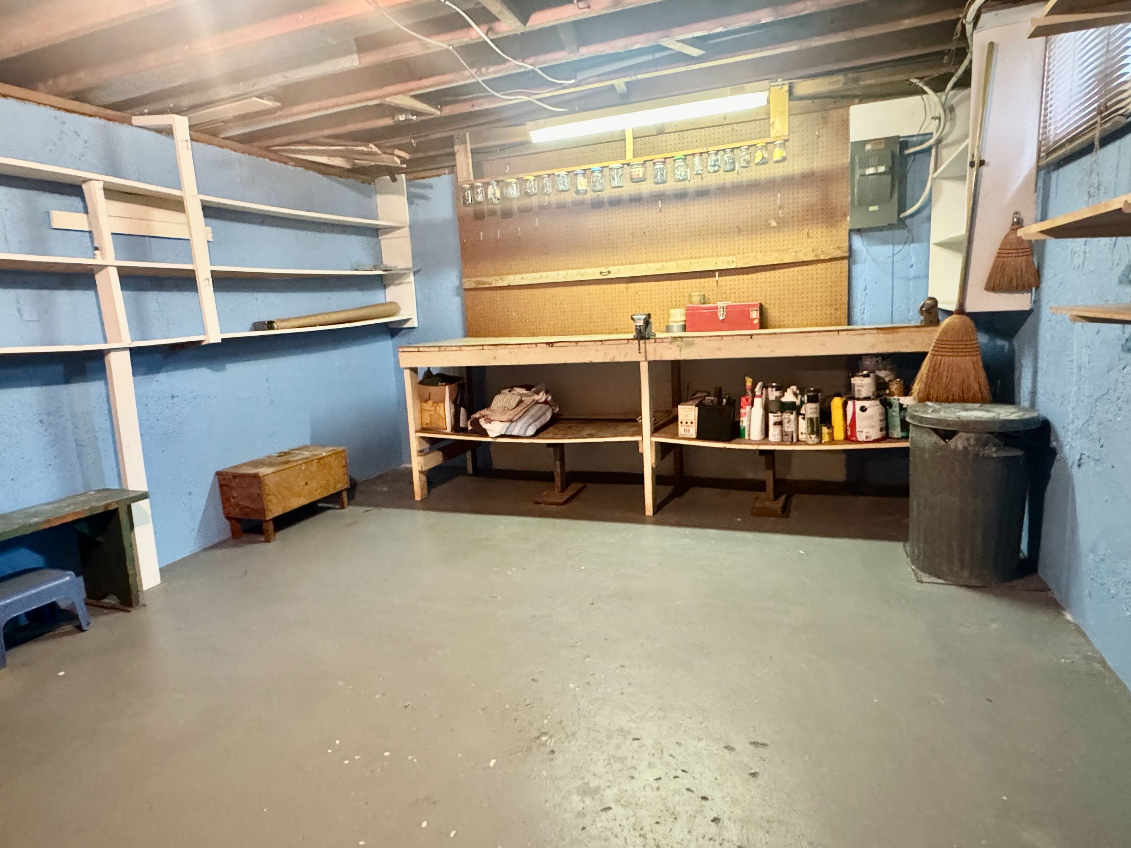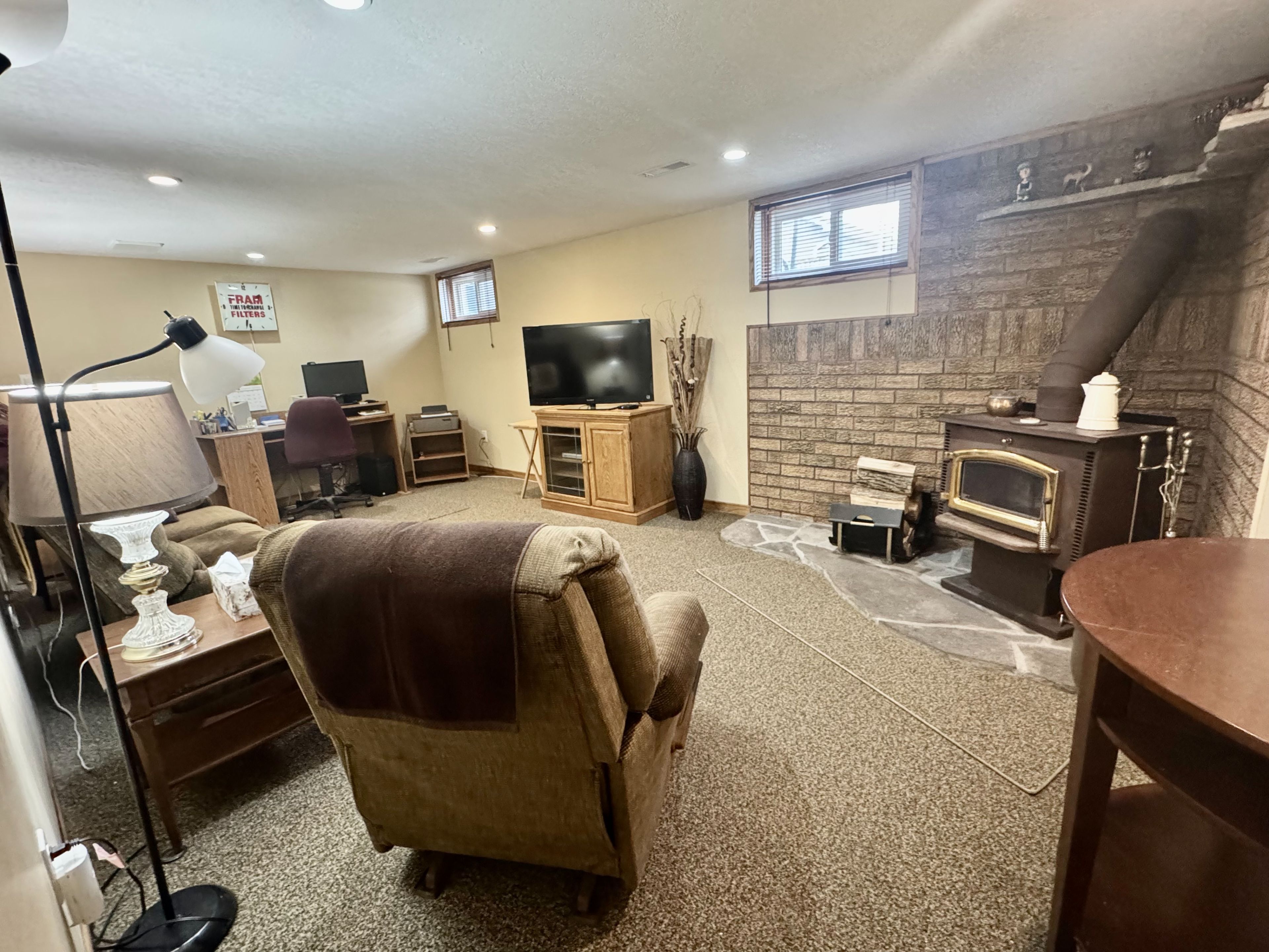 • Cozy finished basement with family room and workshop space.